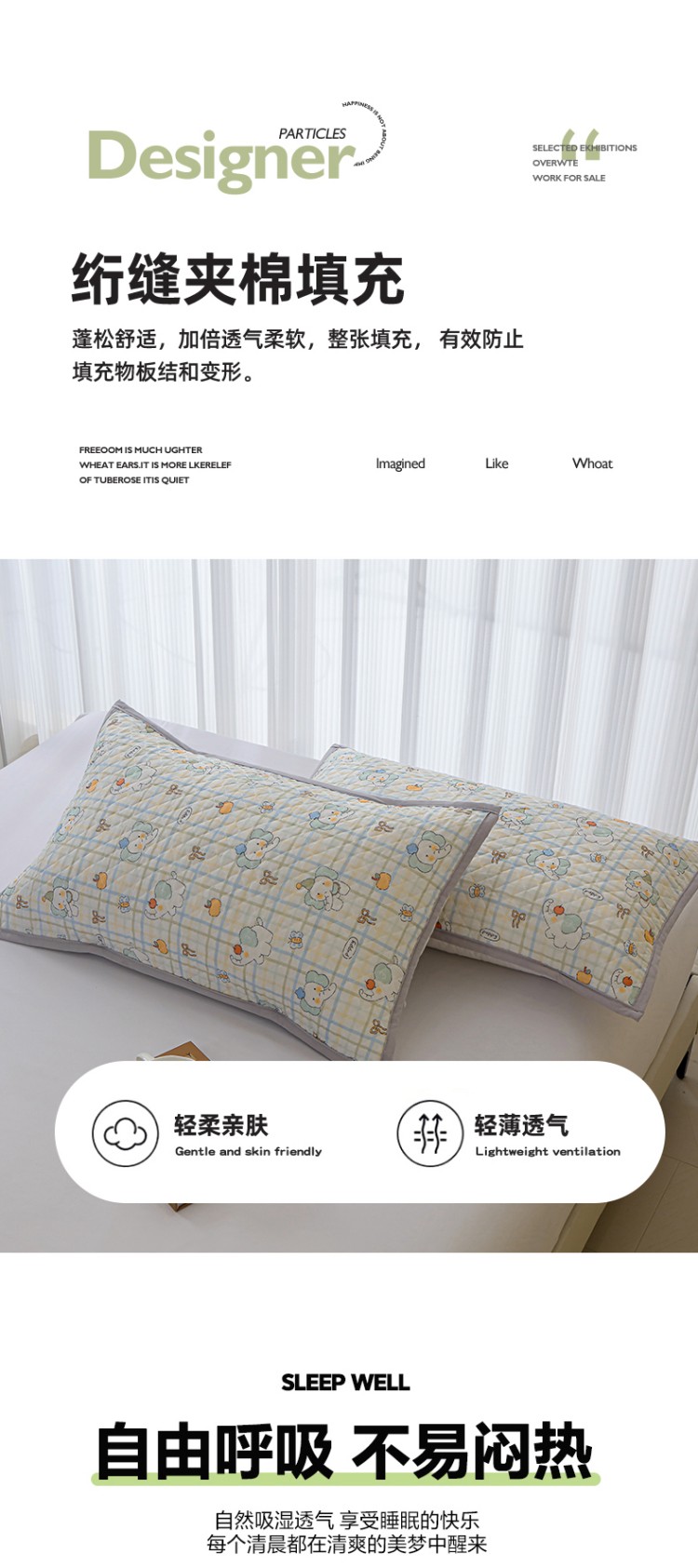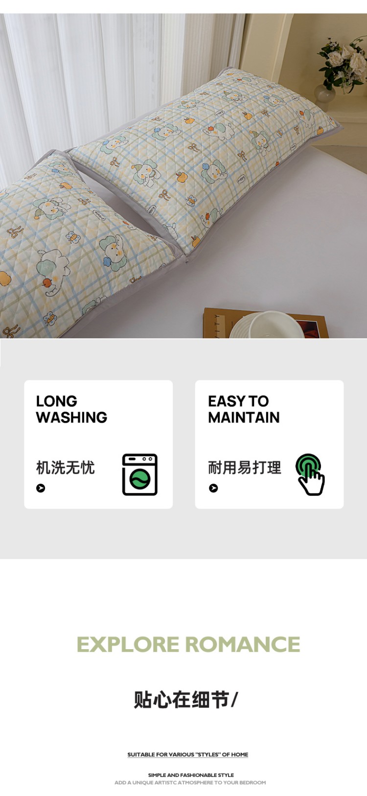 (总)美宜家 2026新款全棉枕头套高密色织水洗加棉绗缝高端纯色枕套,极简山灰,极简米其,极简兰灰,极简仔兰