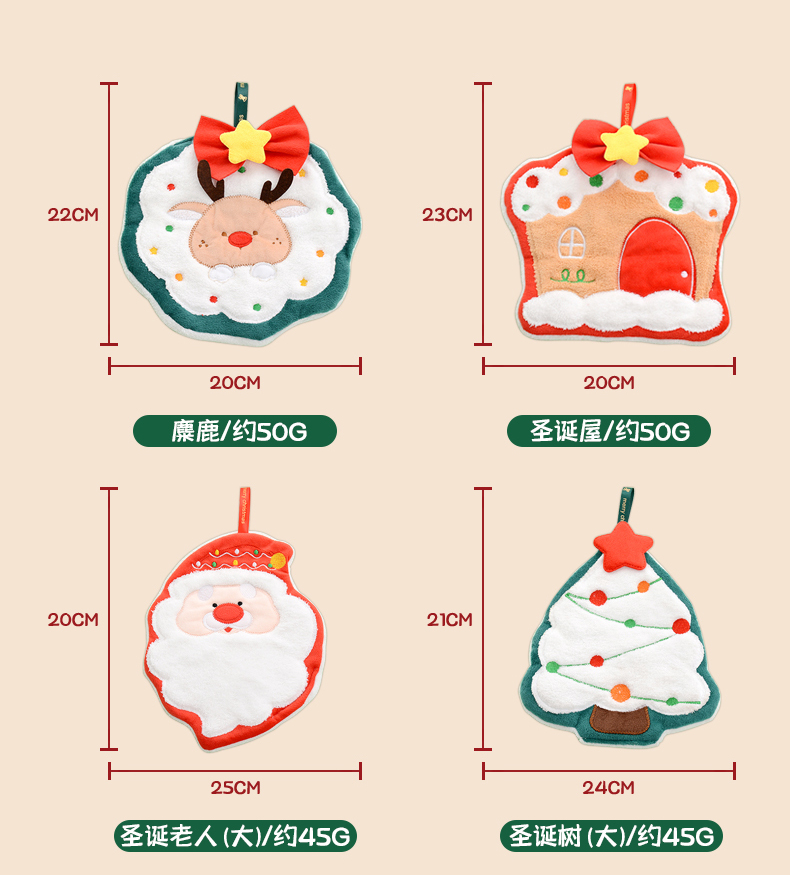 当前位置: 91家纺网 > 商品网购 > 居家日用 > 毛巾/浴巾/浴袍 > 手巾/手帕 > 彩虹毛巾 2025新款珊瑚绒卡通可挂式加厚吸水不掉毛可爱小毛巾厨房洗手间挂巾便携式懒人擦手布-圣诞系列 大圣诞树21*24cm 擦手巾/只