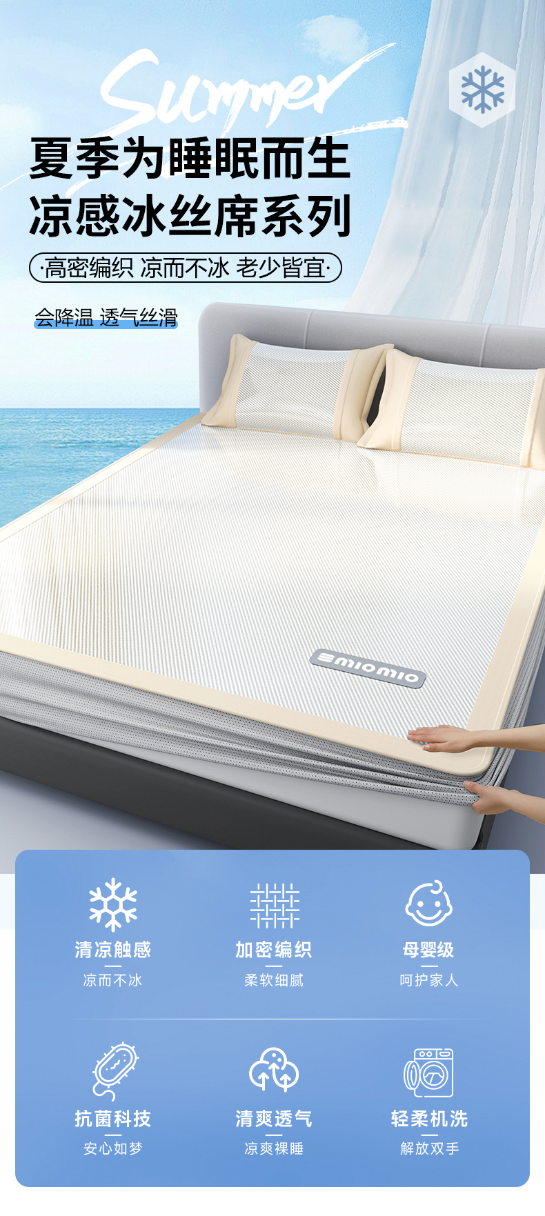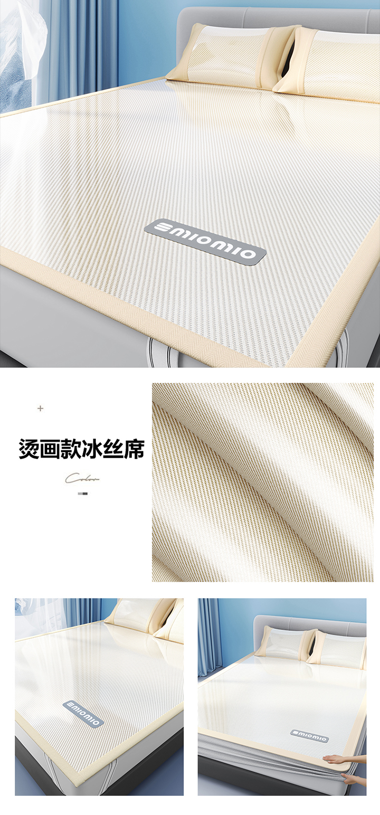 当前位置: 91家纺网 > 商品网购 > 床上用品 > 凉席 > 冰丝席 > 悠米悠家 2025春夏新款斜纹烫画凉感冰丝席凉席席子 床席款-米白