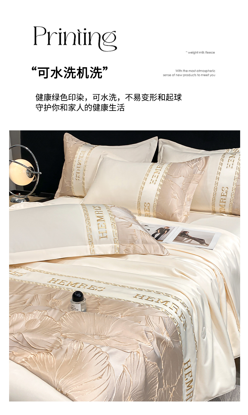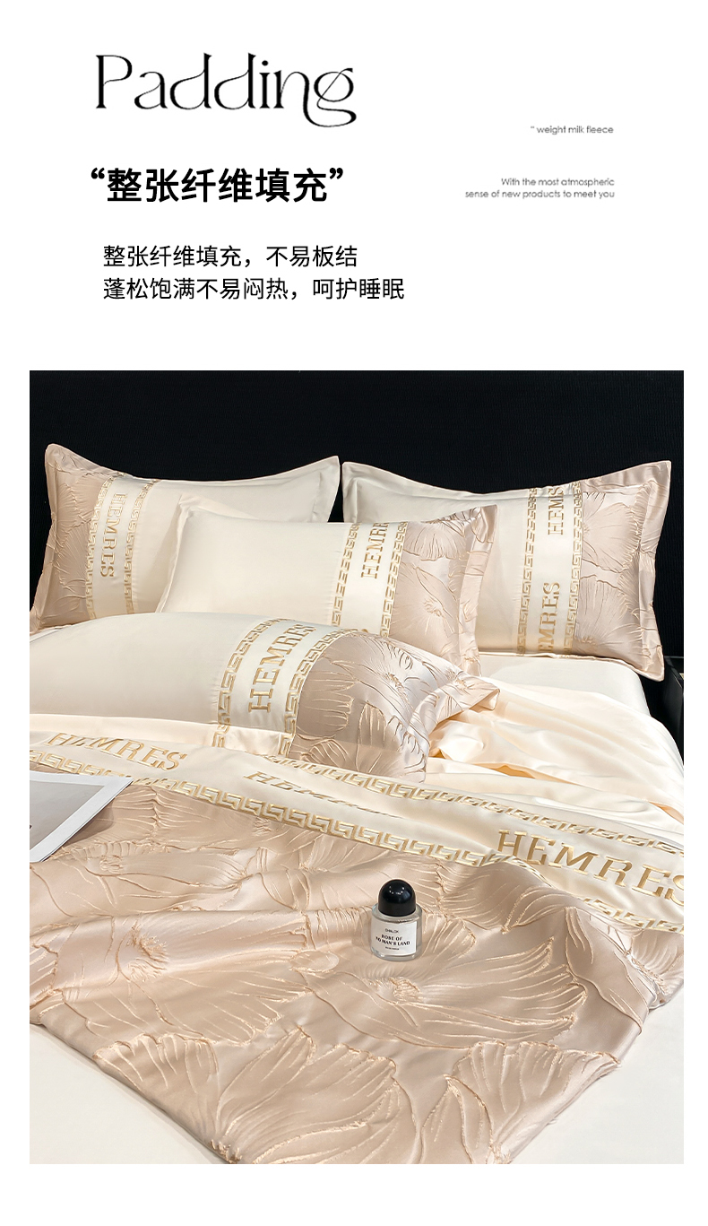 商品名称:(总)子曰 2025新款金丝提花浮雕刺绣水洗真丝夏被四件套夏凉被空调被