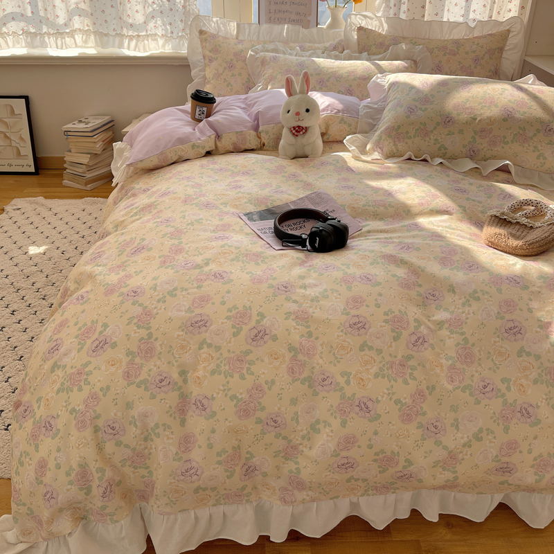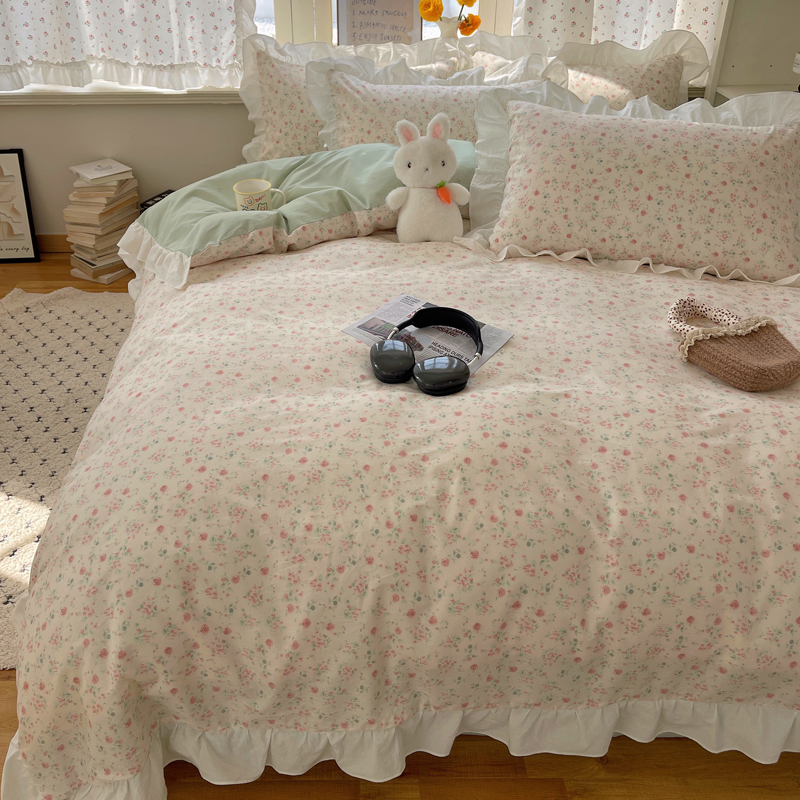 桃喜2025新款全棉纯棉碎花花边款13070四件套 系列一 散漫春色花边款