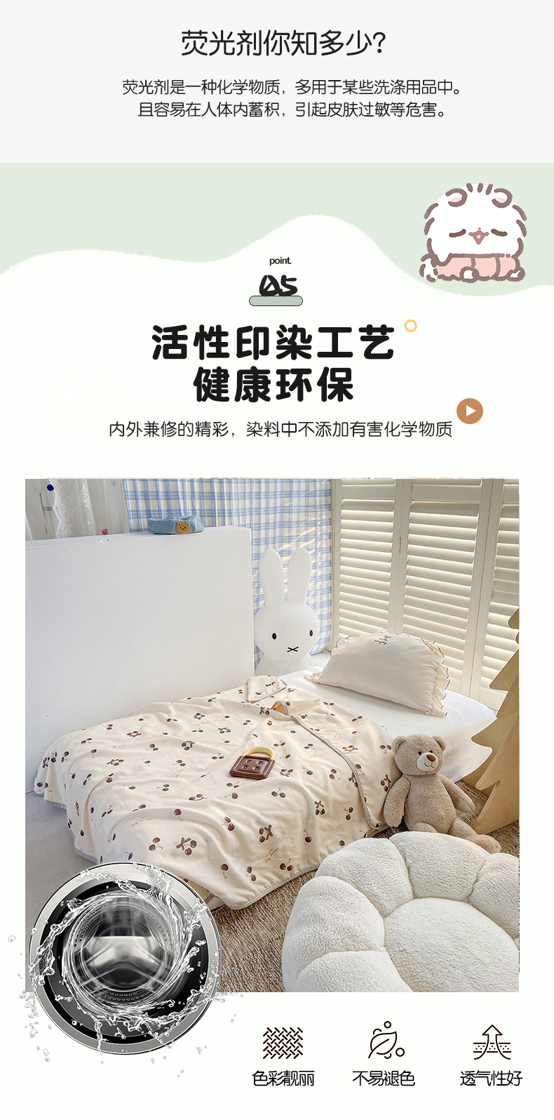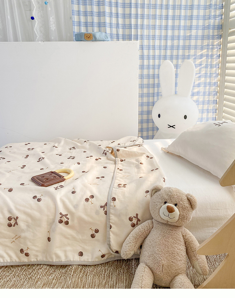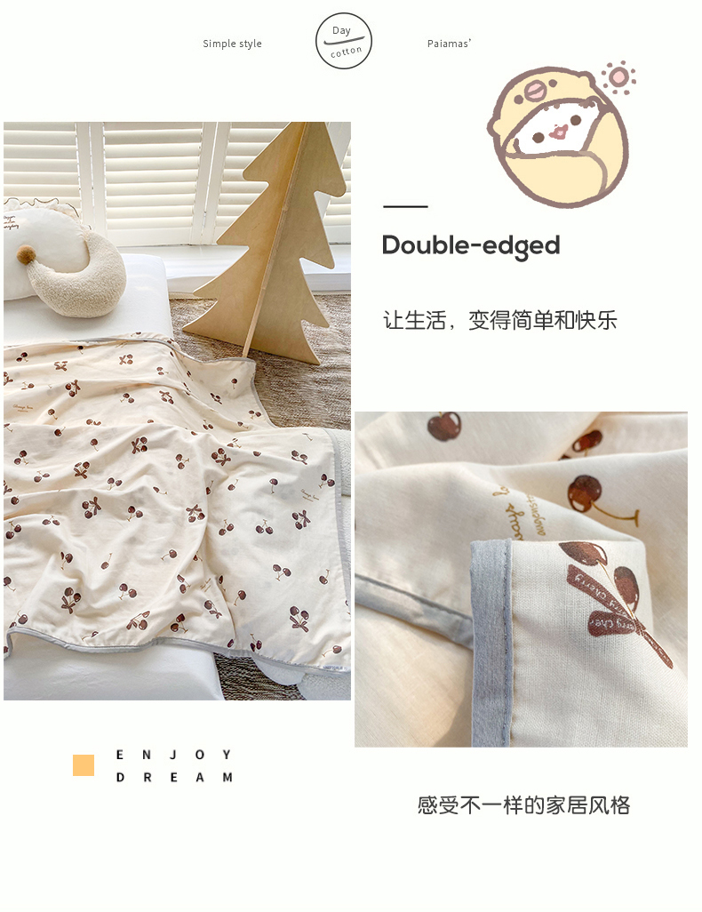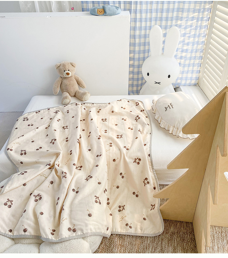 潮邦 2025新款全棉双层纱多功能盖毯 车厘子