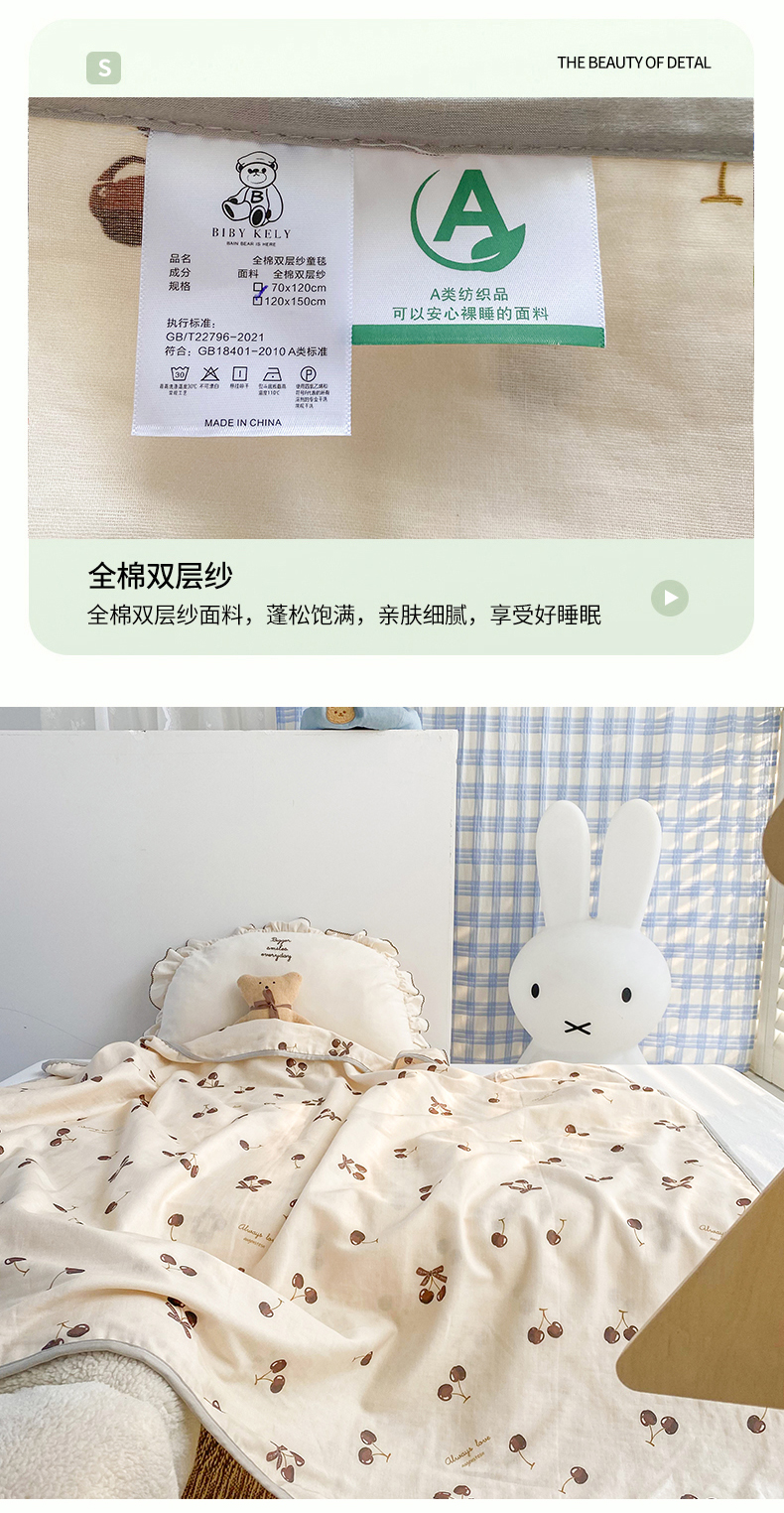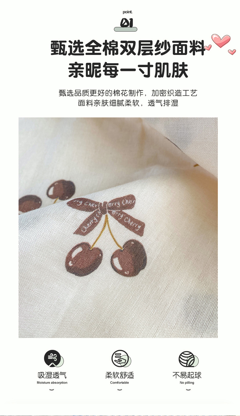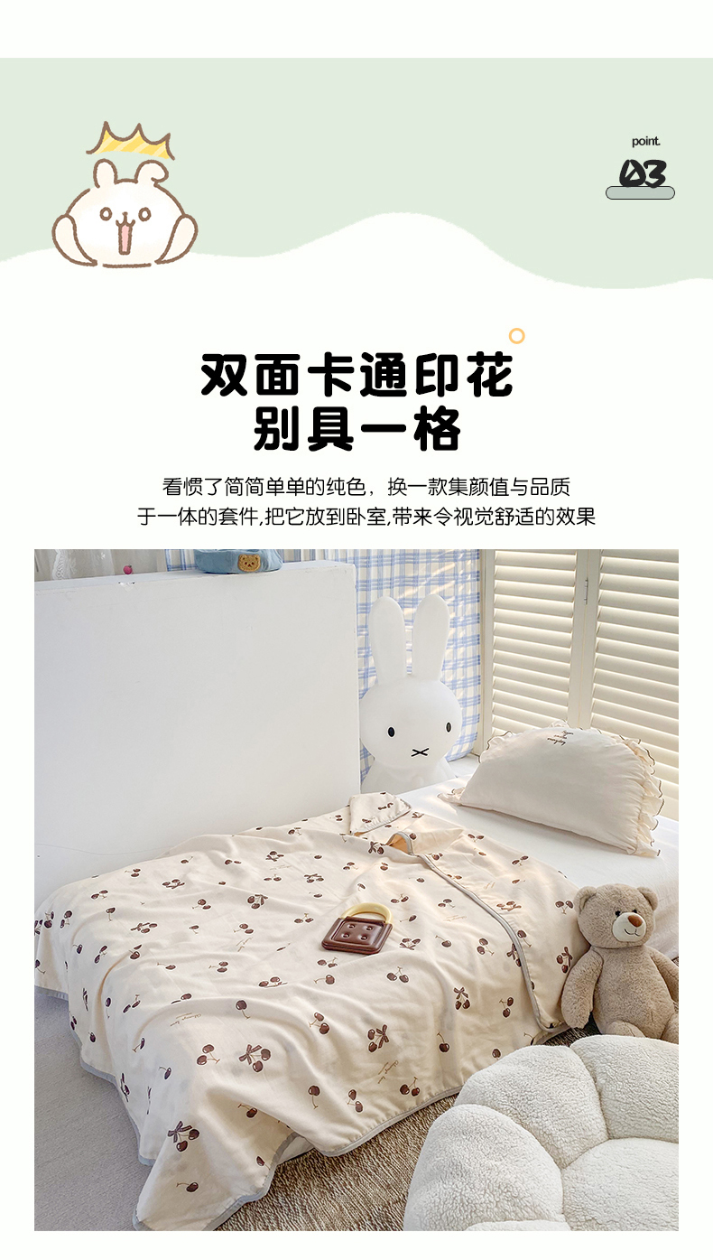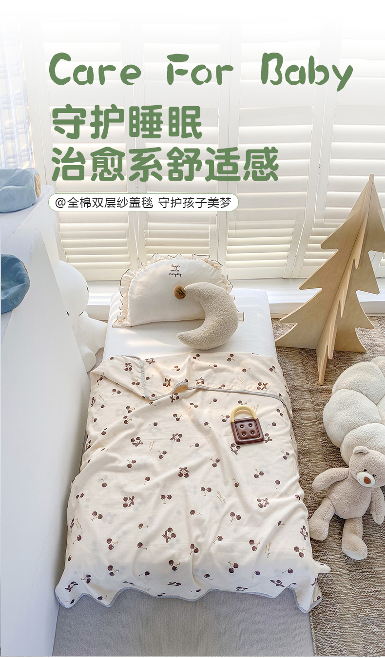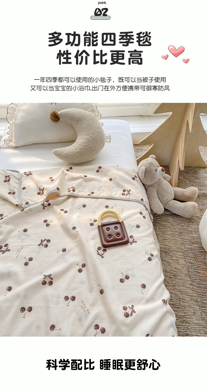 商品名称:潮邦 2025新款全棉双层纱多功能盖毯 车厘子