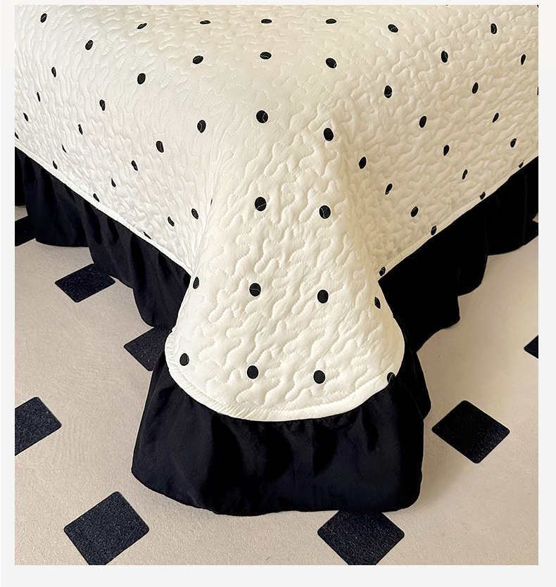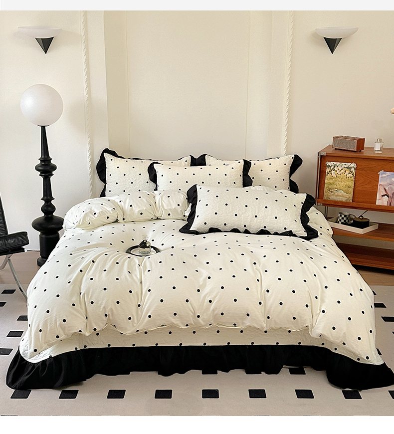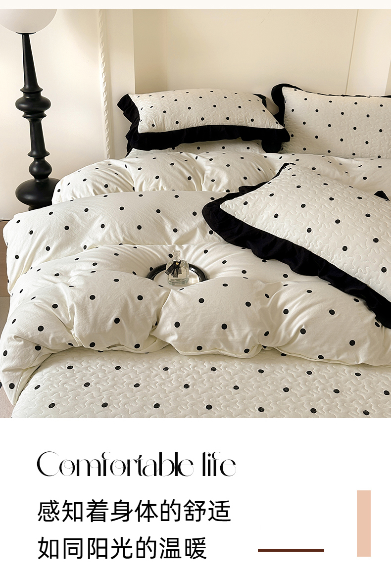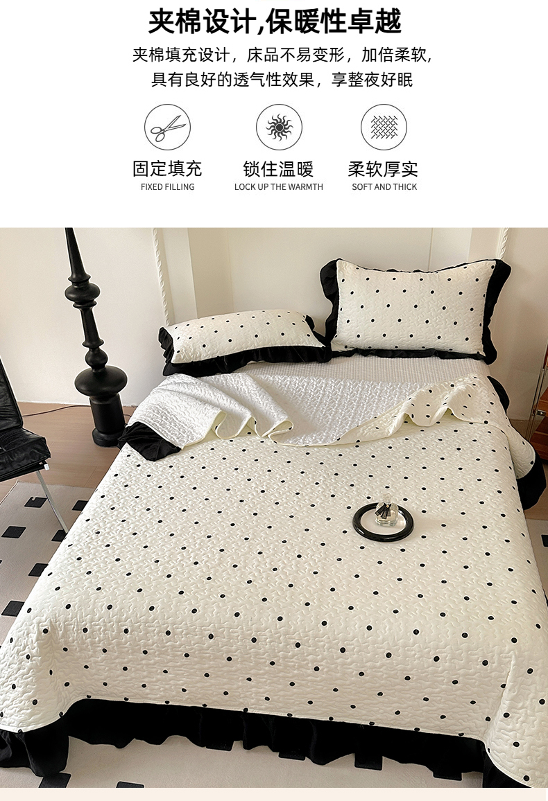 当前位置: 91家纺网 > 商品网购 > 床品套件 > 四件套 > 化纤普通四件套 > 韩秀家纺 2025新款 四季跑量款花边夹棉加厚水洗棉泡泡棉糯感印花韩版床盖四件套 波点生活