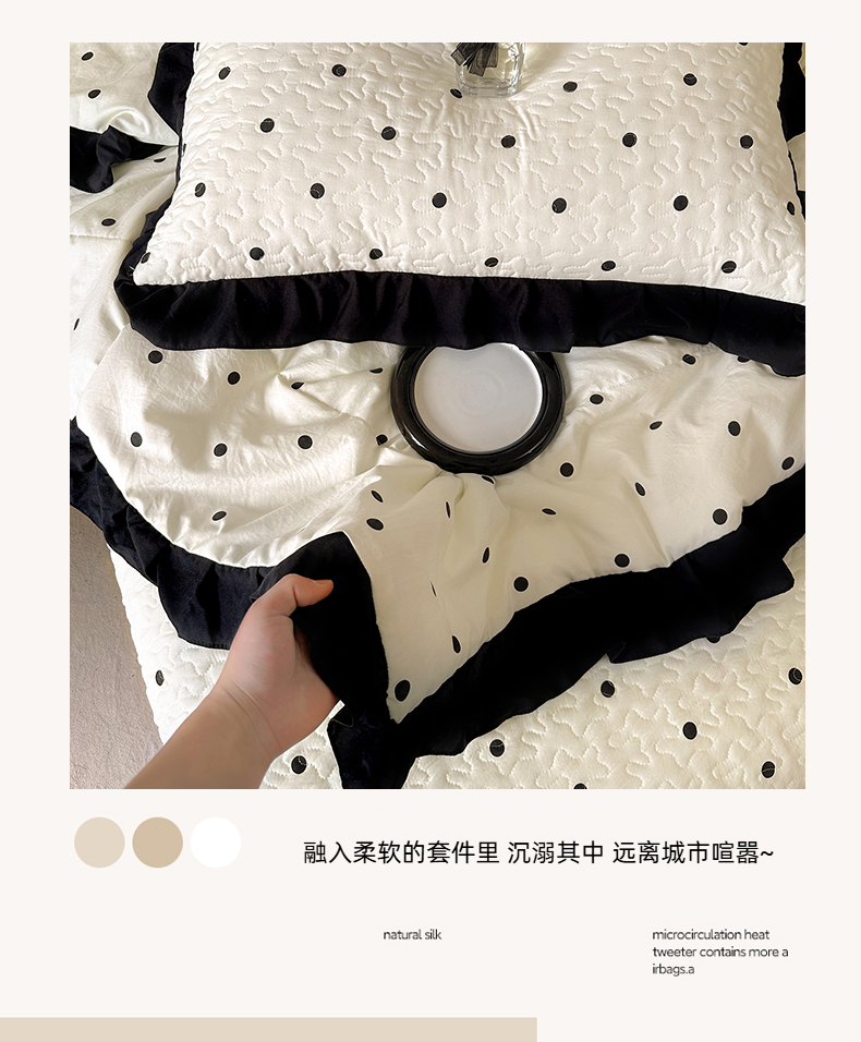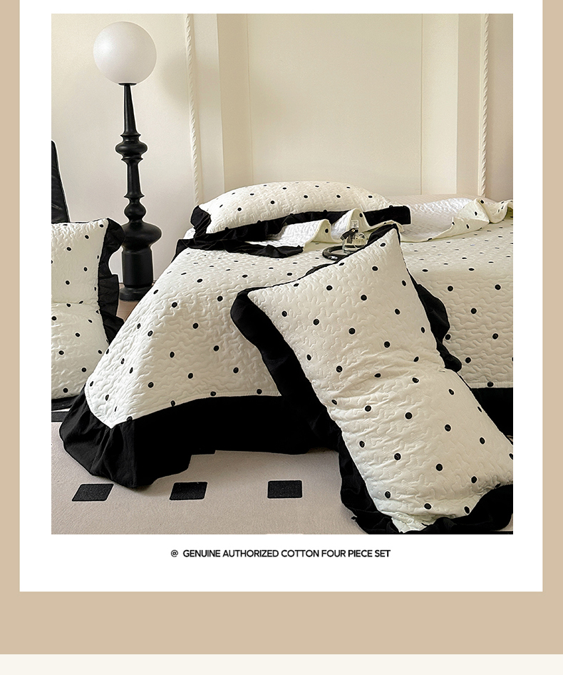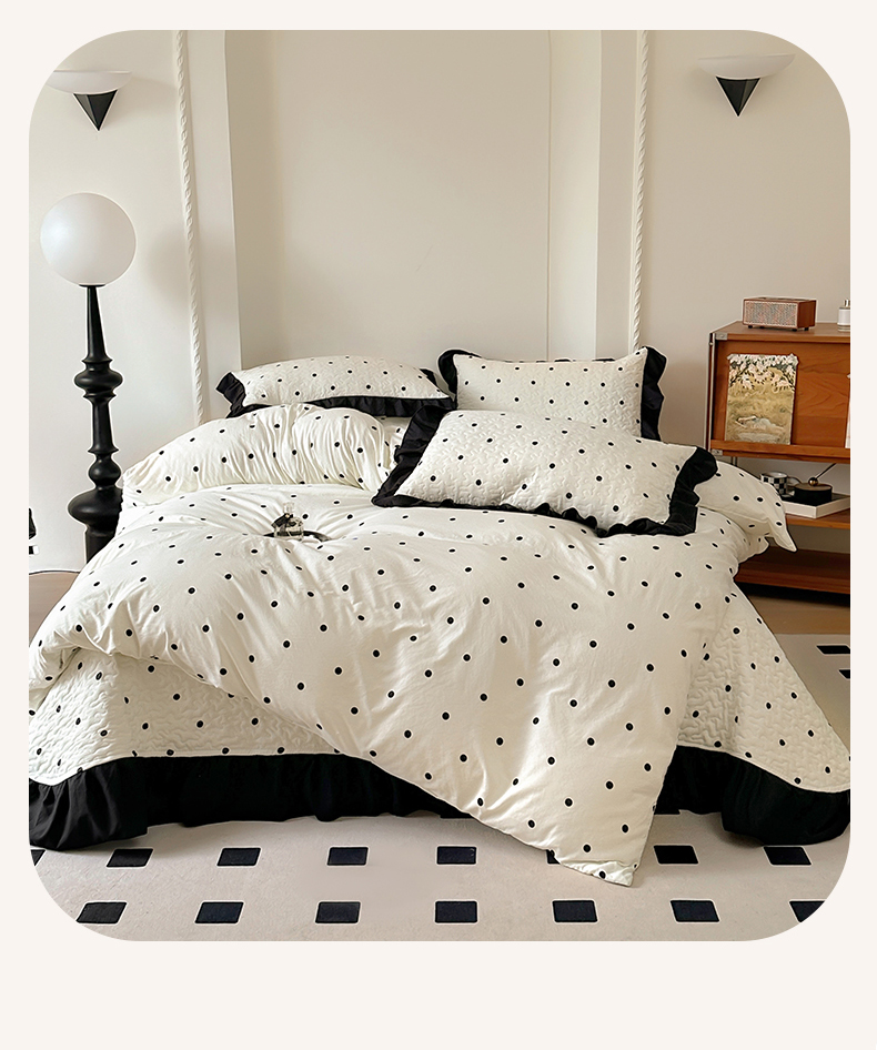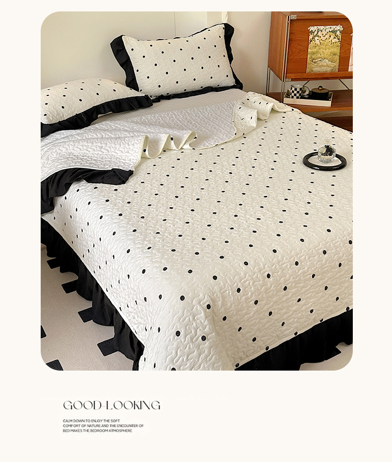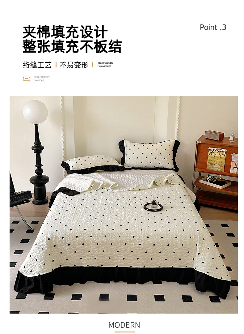 当前位置: 91家纺网 > 商品网购 > 床品套件 > 四件套 > 化纤普通四件套 > 韩秀家纺 2025新款 四季跑量款花边夹棉加厚水洗棉泡泡棉糯感印花韩版床盖四件套 波点生活