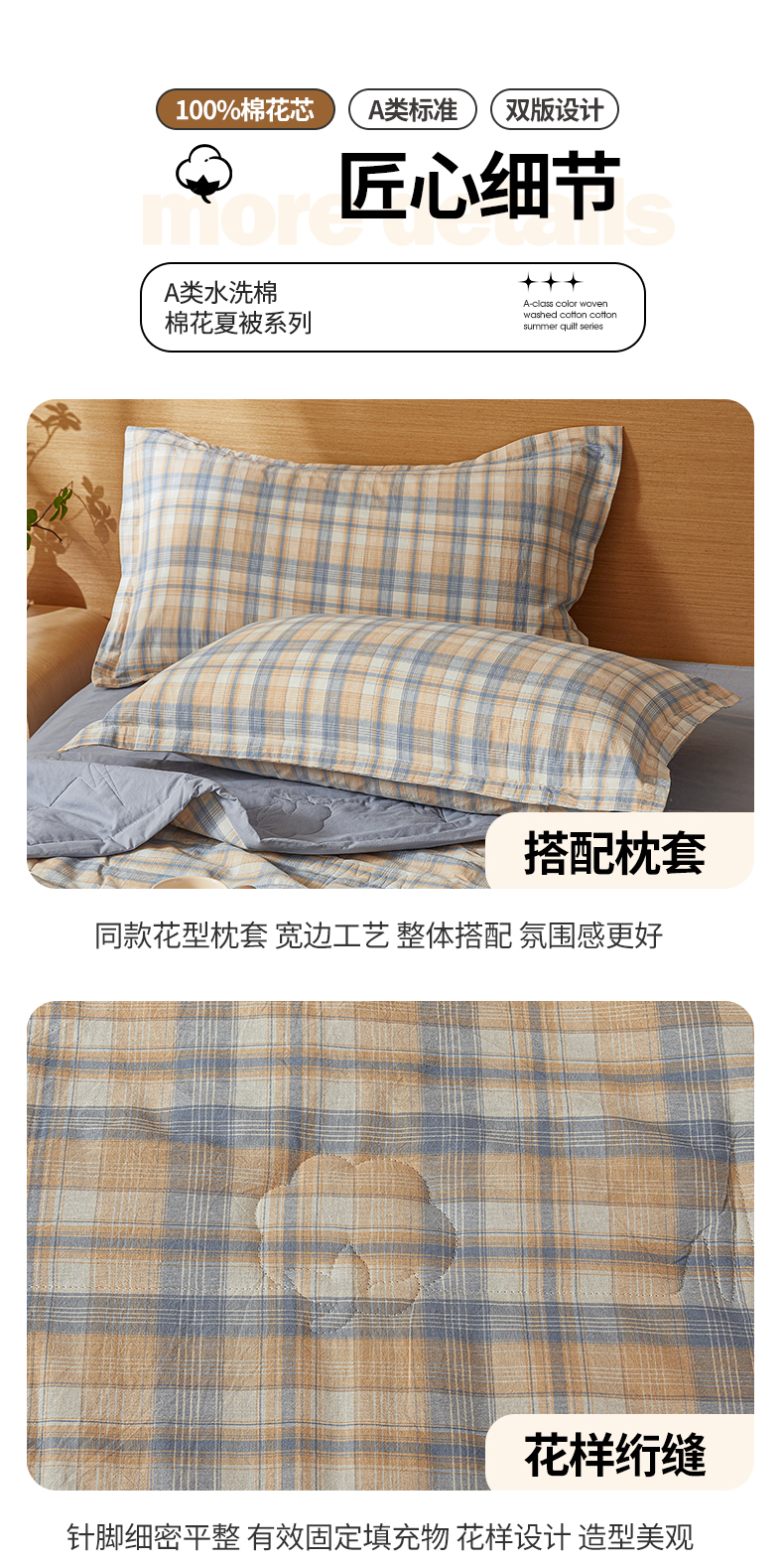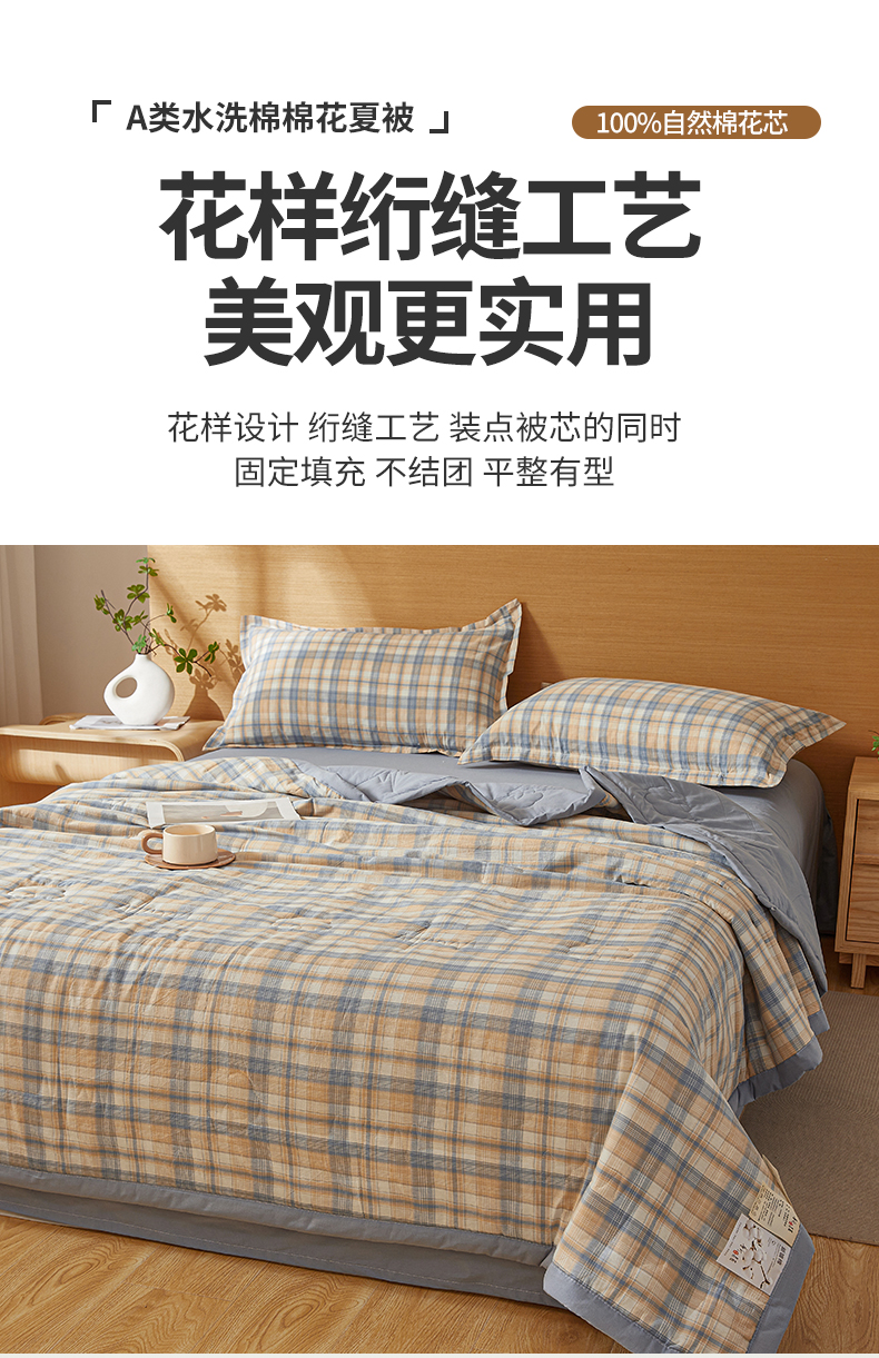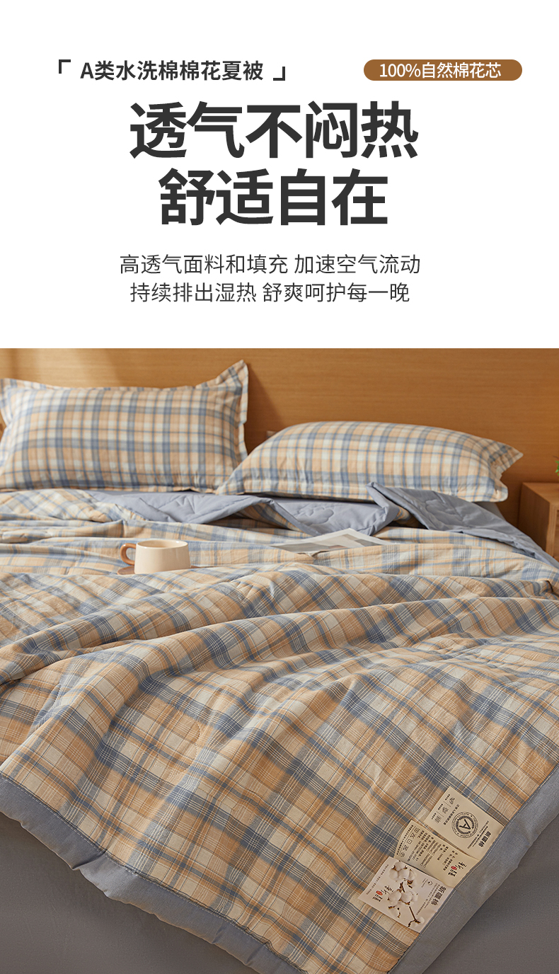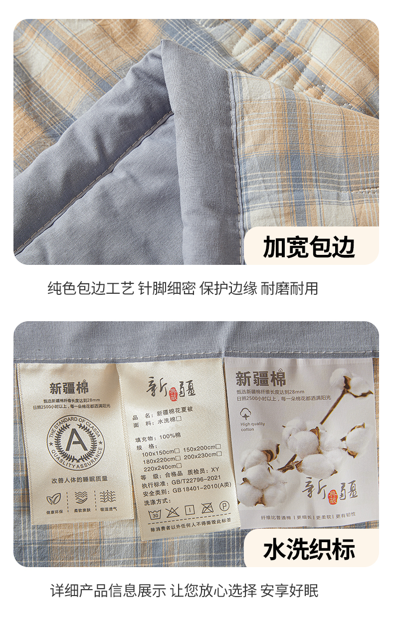 商品名称:西域种棉人·千百笠 2025新款A类100%新疆棉花夏凉被纯棉全棉填充原棉空调被手工宽边水洗棉夏被 清新格