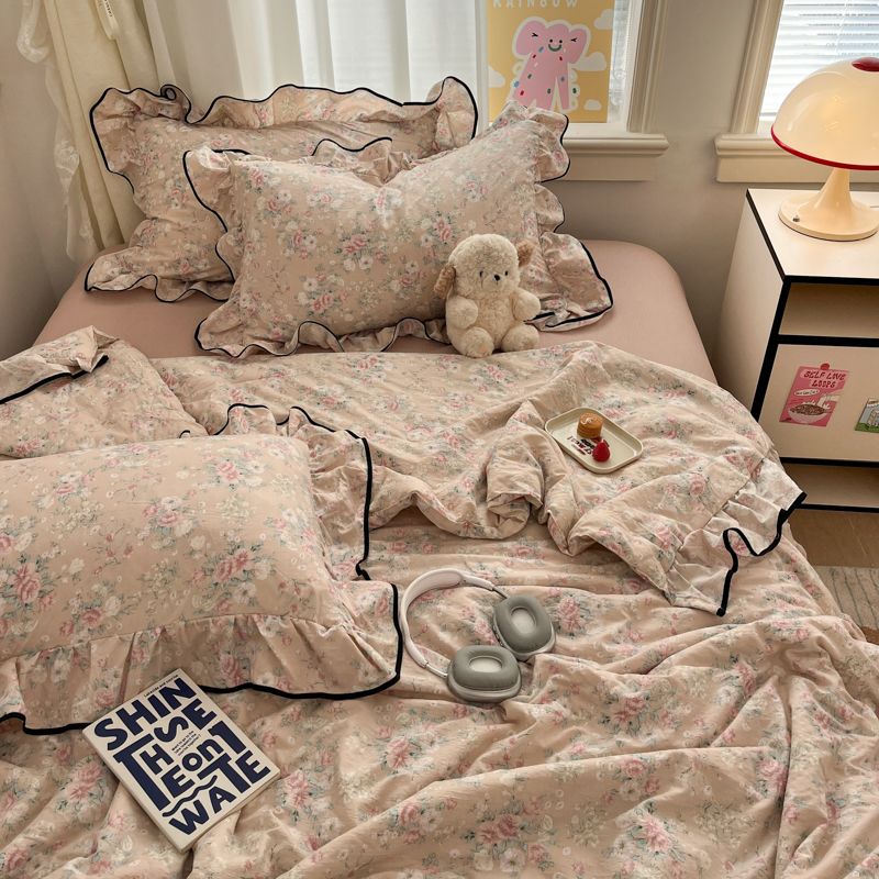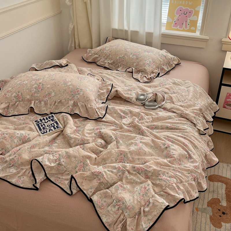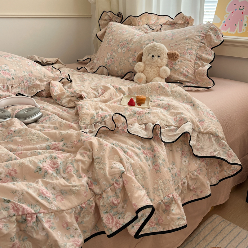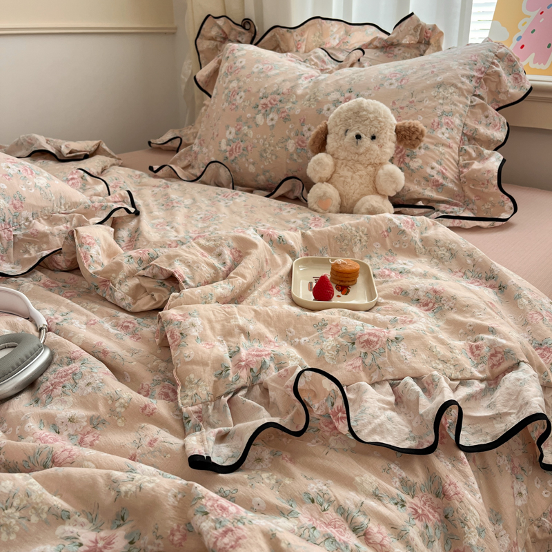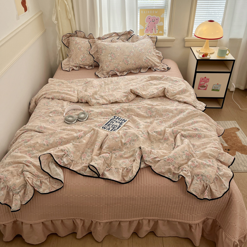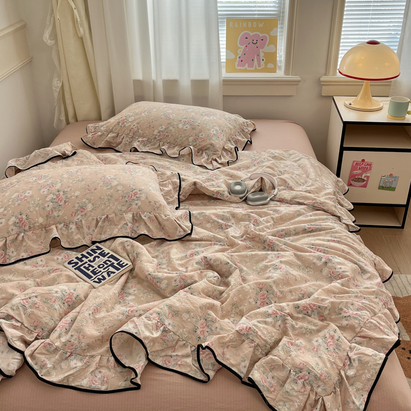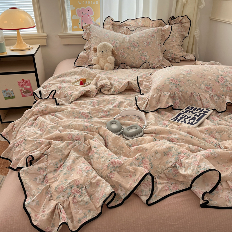 (总)欧尚 2026新款花边床盖四件套,春和,花束,花野,灰樱桃,咖爱心,咖豹纹,咖啡小猫,梨花落,绿爱心,梦境,木马,奶油波点,暖橘枝,暖心,人间草木,田园兔,小女孩,星愿,摇摇马,紫爱心,紫豹纹,紫苏