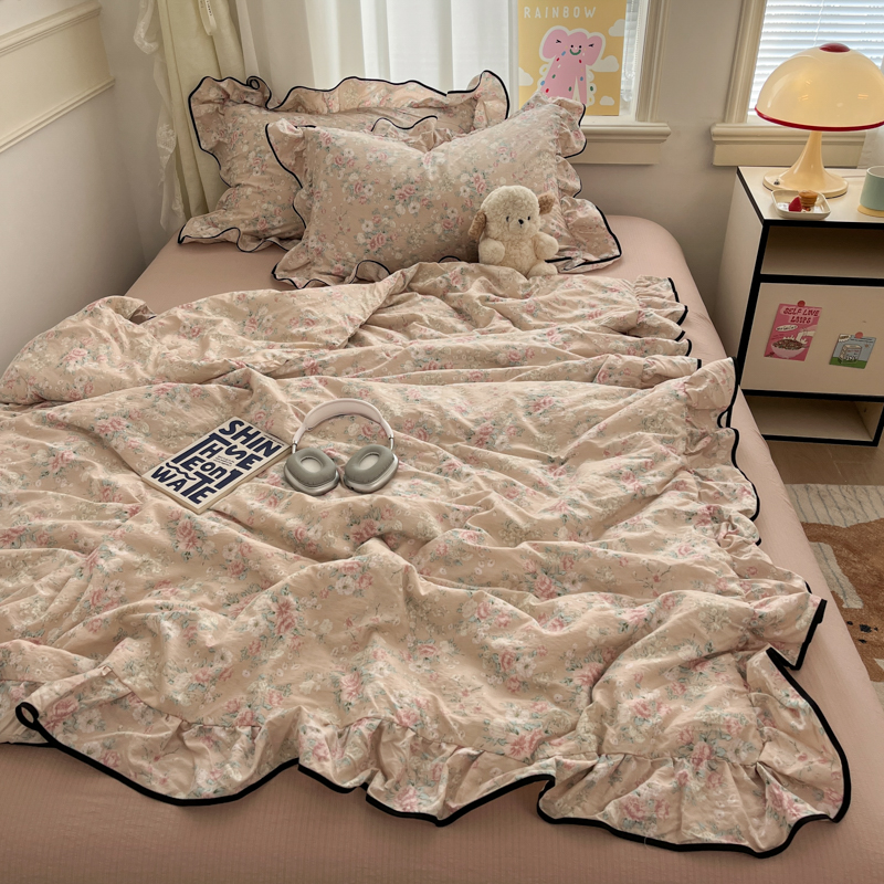 商品名称:欧尚 2025新款细黑边夏被床单床盖三件套 莫奈