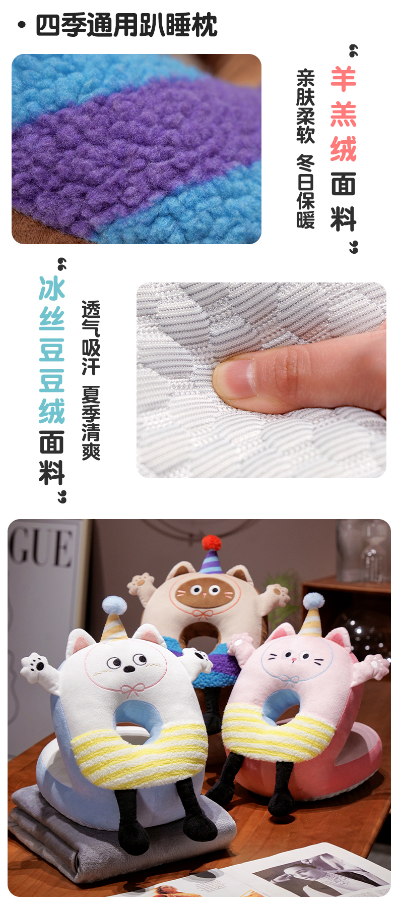 (总)仟亿莱 2025新款小手大开冰豆豆双面午睡枕枕头枕芯