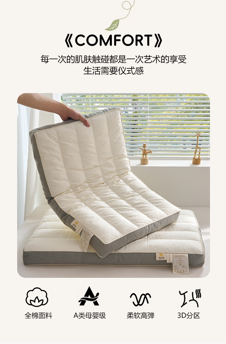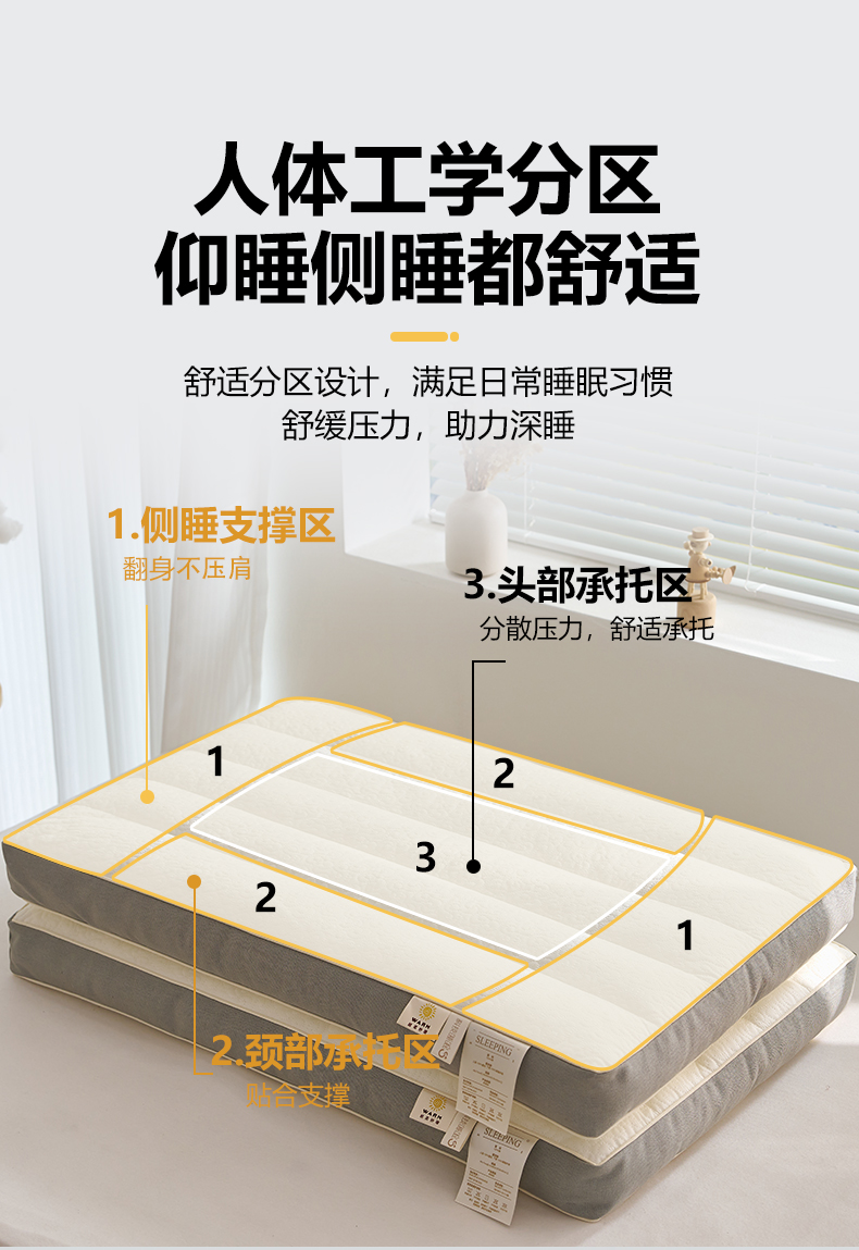 (总)乐可 2025新款分区两用牵引枕全棉双向枕 枕头枕芯,分区两用牵引枕