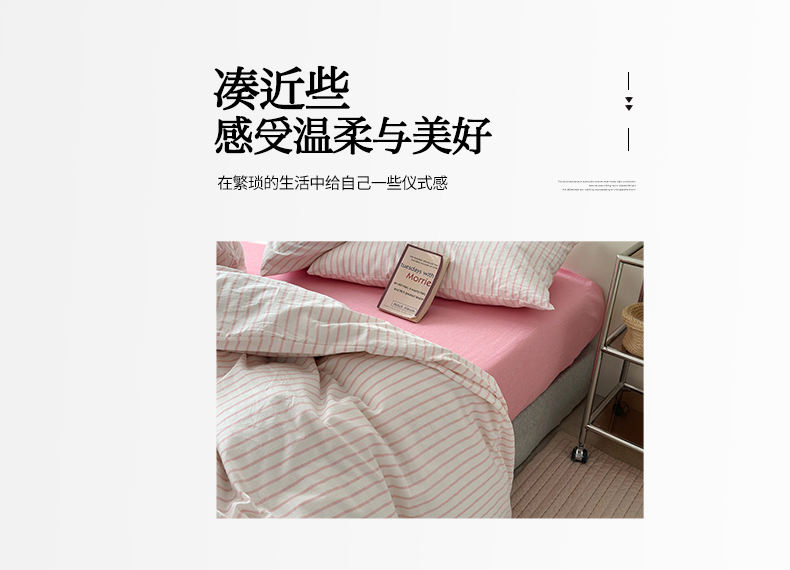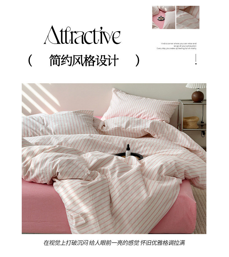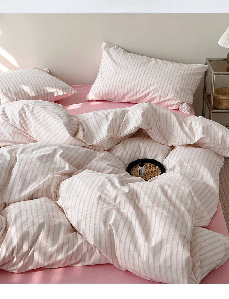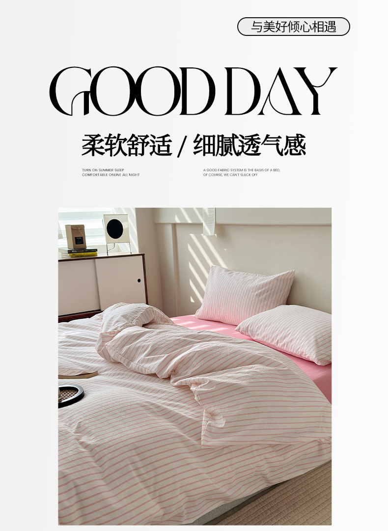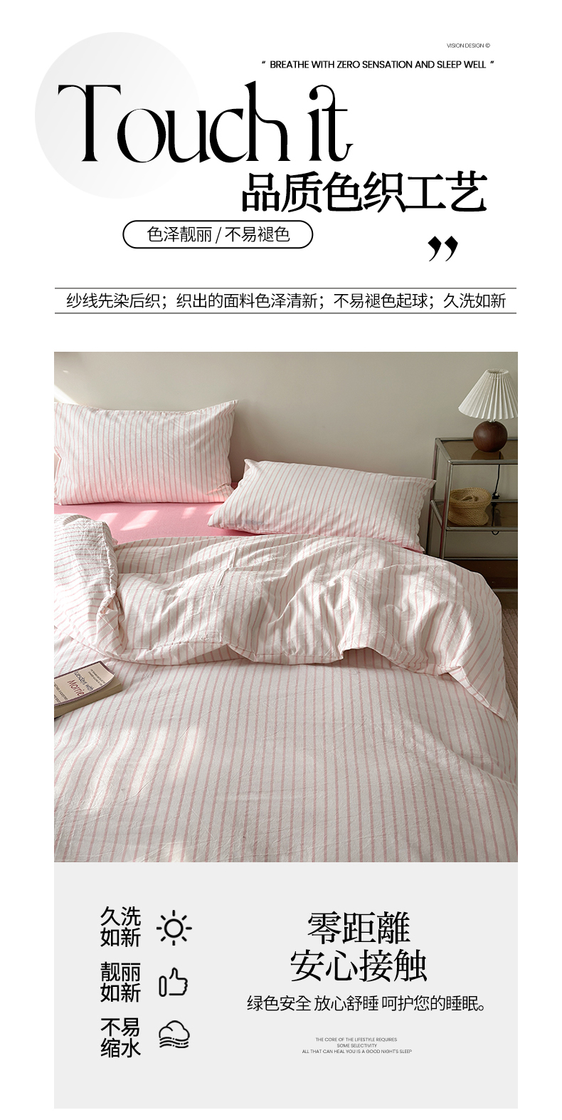 商品名称:水洗的故事 2025新款全棉色织水洗棉四件套 简序-粉