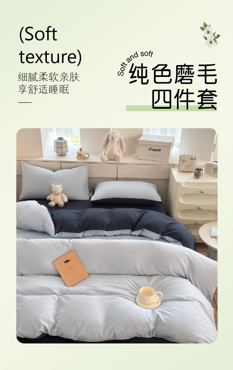 当前位置: 91家纺网 > 商品网购 > 床品套件 > 四件套 > 磨毛活性四件套 > 可可家纺 2025新款ins风纯色磨毛简约水洗棉四件套亲肤床单被套三件套 雾蓝洛克兰