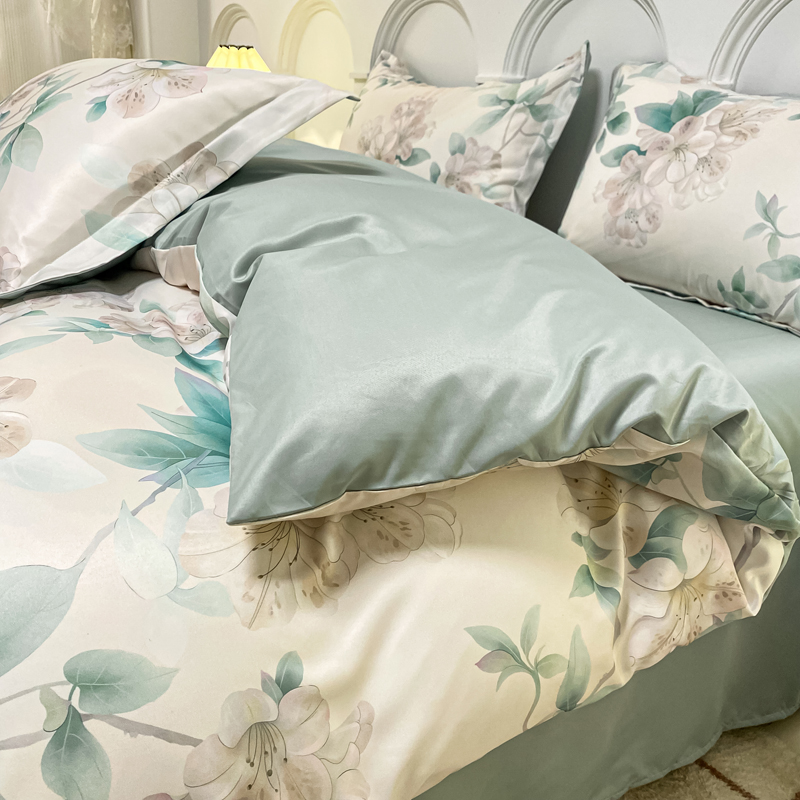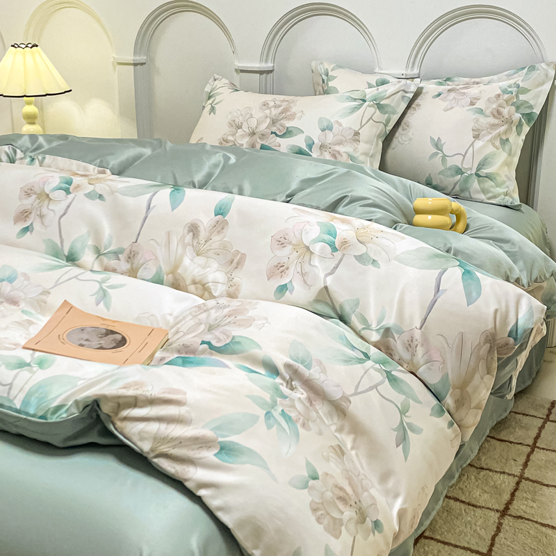 商品名称:2025新款水洗冰丝美式数码印花四件套轻奢时尚北欧风床上用品学生宿舍三四件套 漫步轻云
