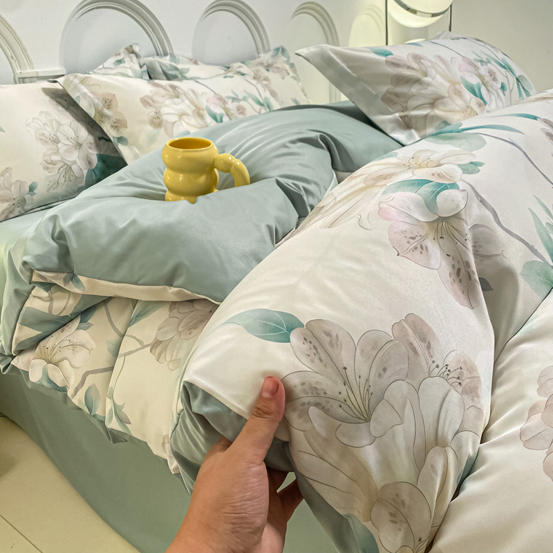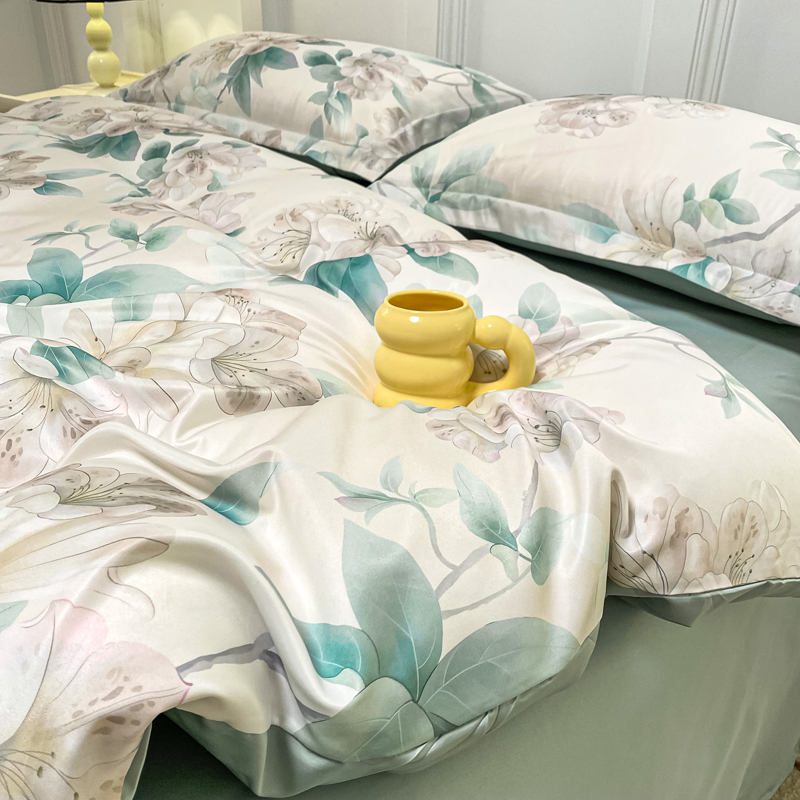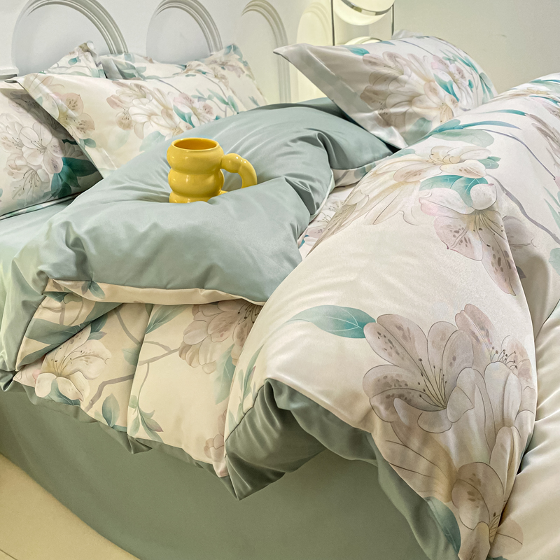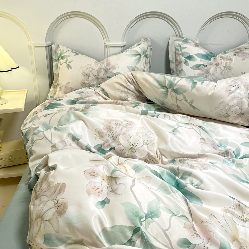 2025新款水洗冰丝美式数码印花四件套轻奢时尚北欧风床上用品学生宿舍三四件套 漫步轻云