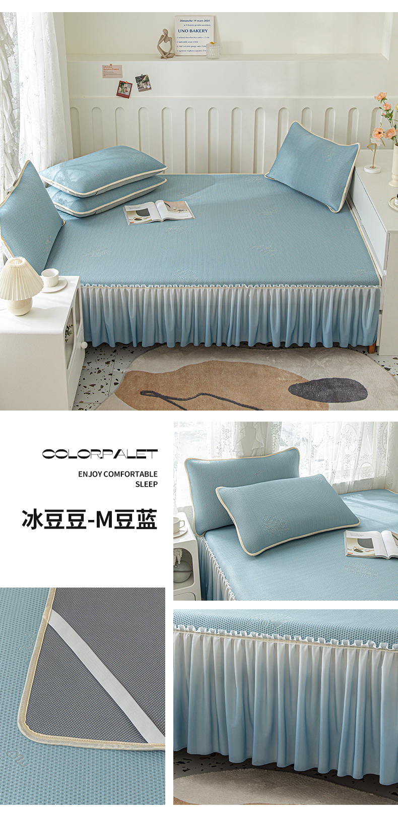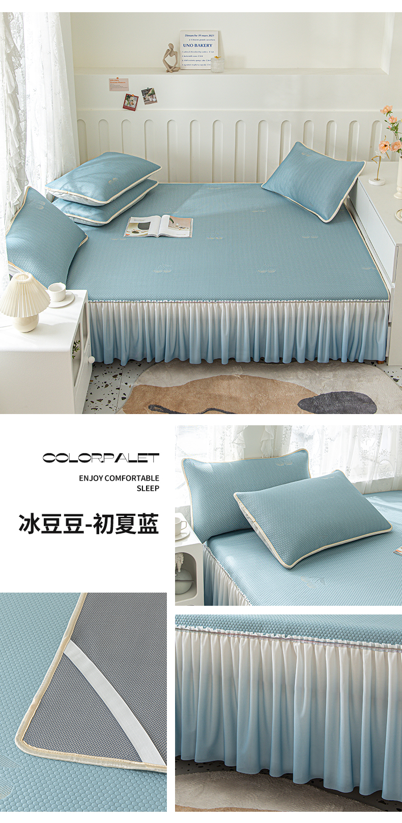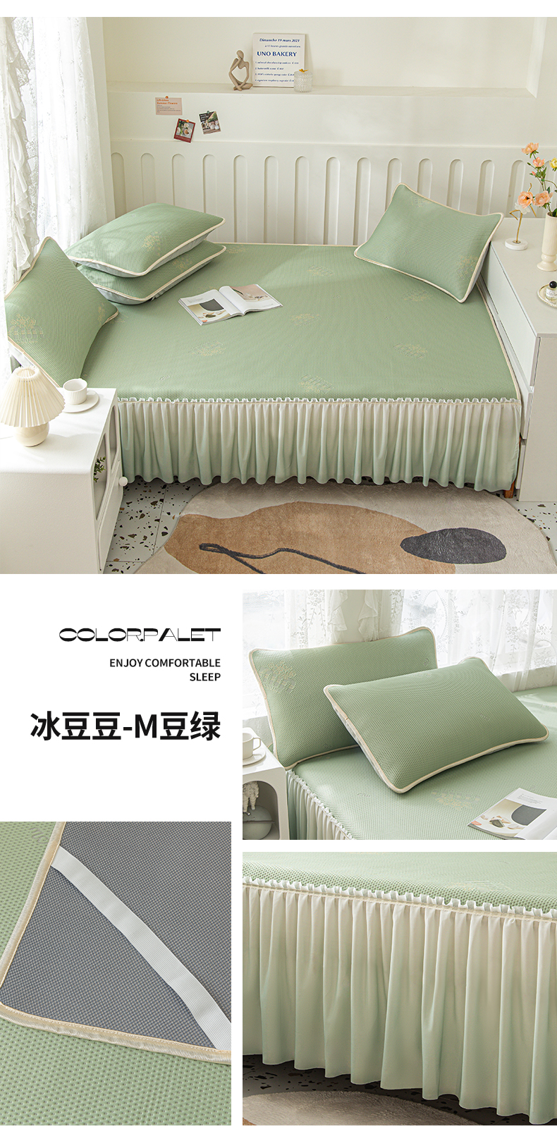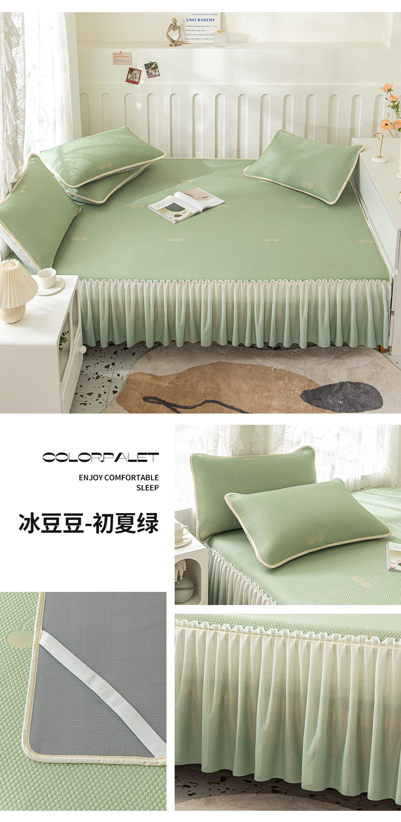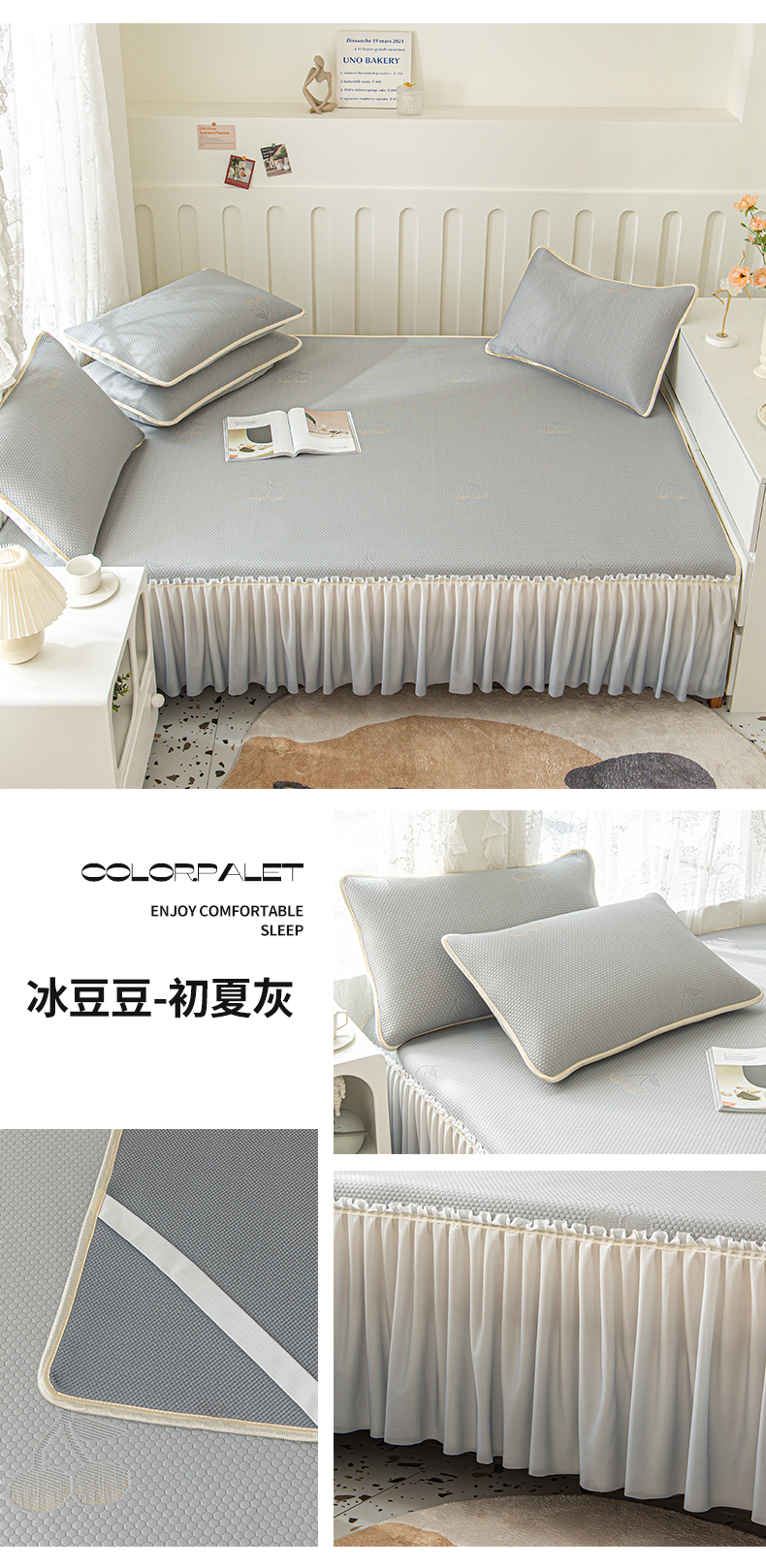 (总)美优兰2025新款PE提花凉感冰豆豆床裙,M豆蓝,M豆绿,初夏粉,初夏灰,初夏蓝,初夏绿,组合(仅供参考)