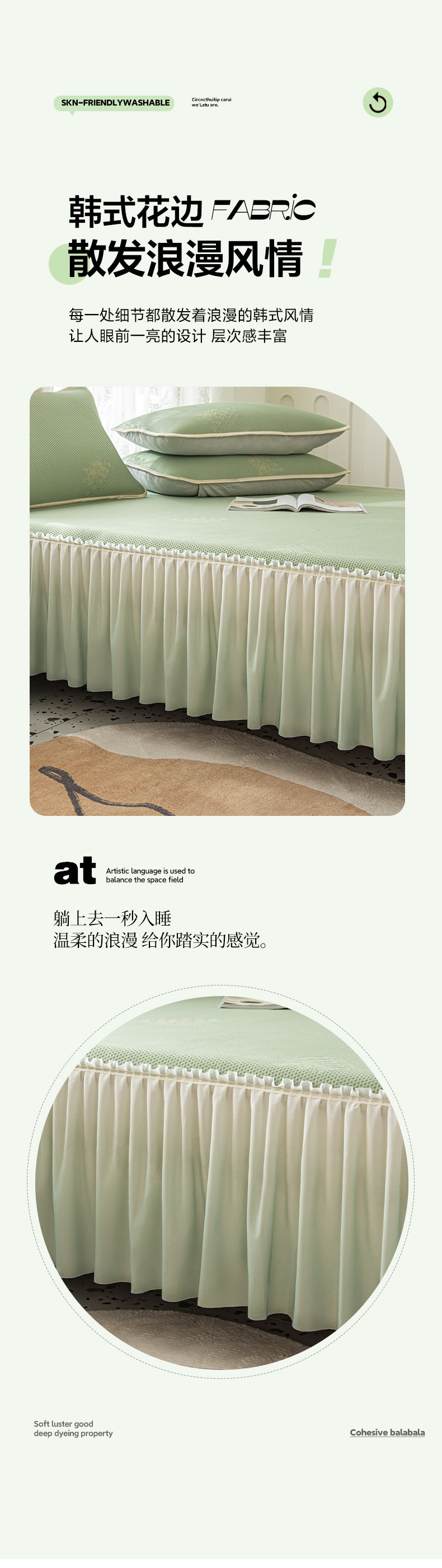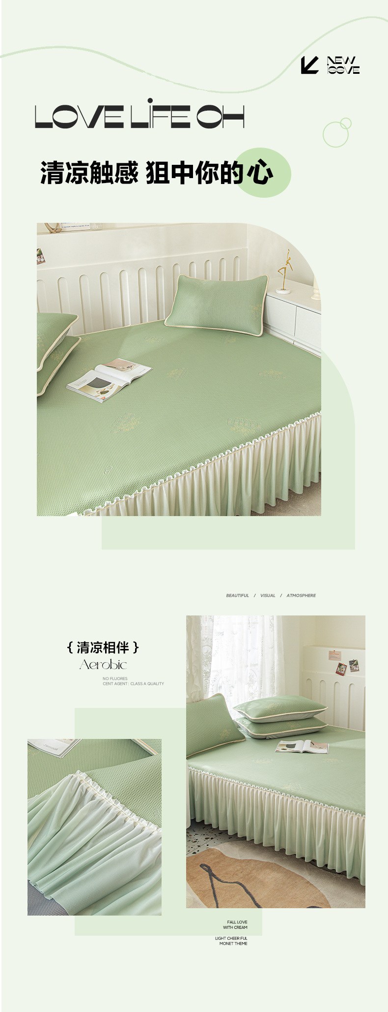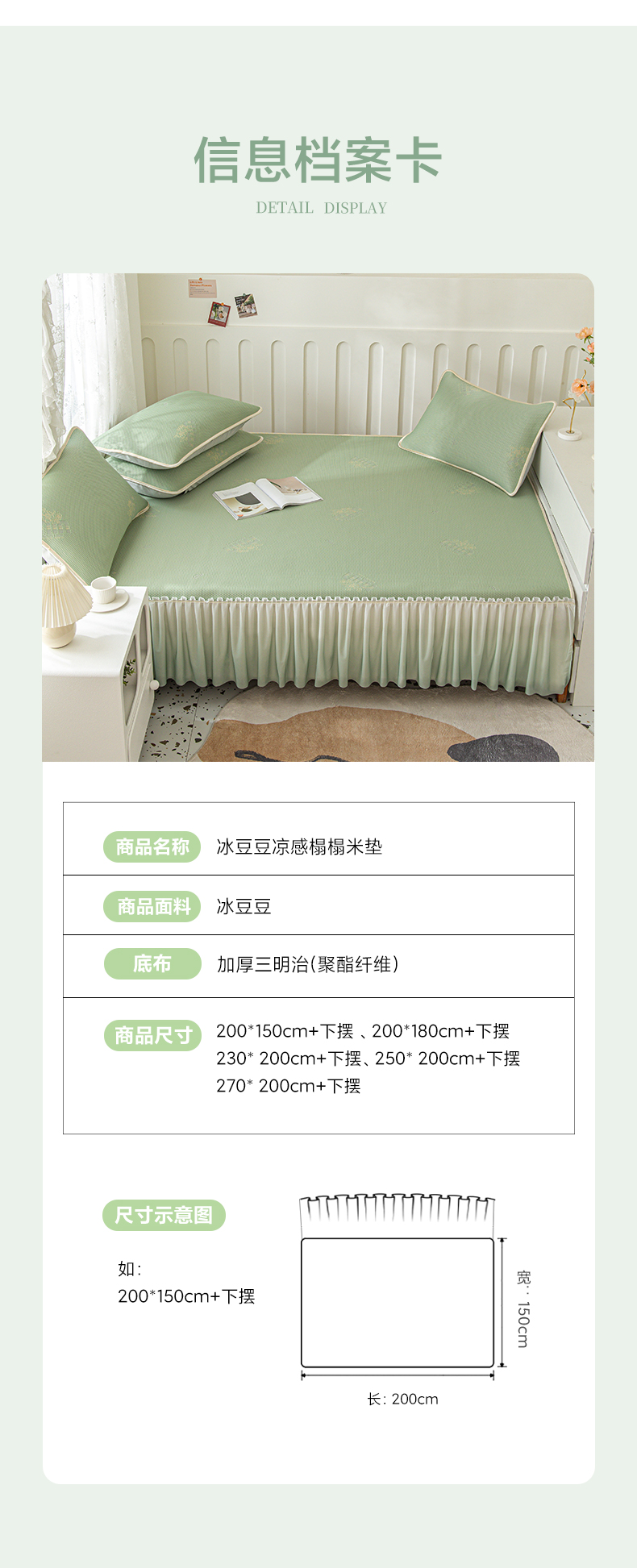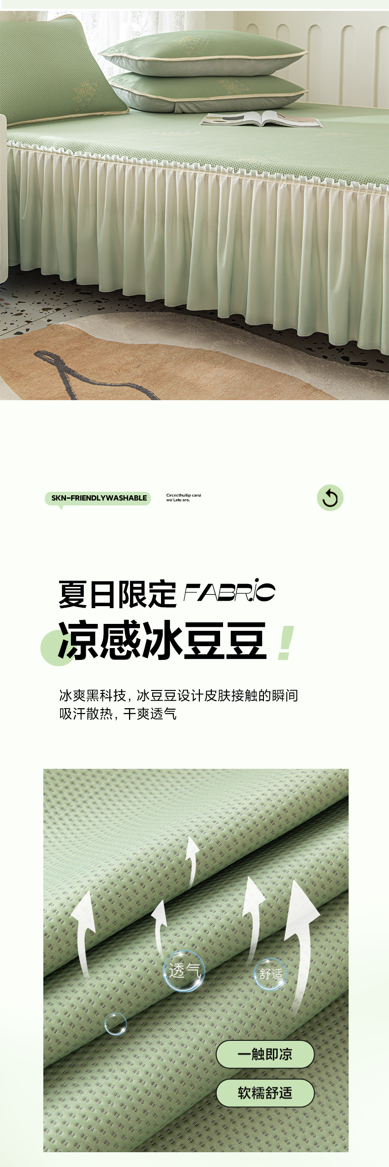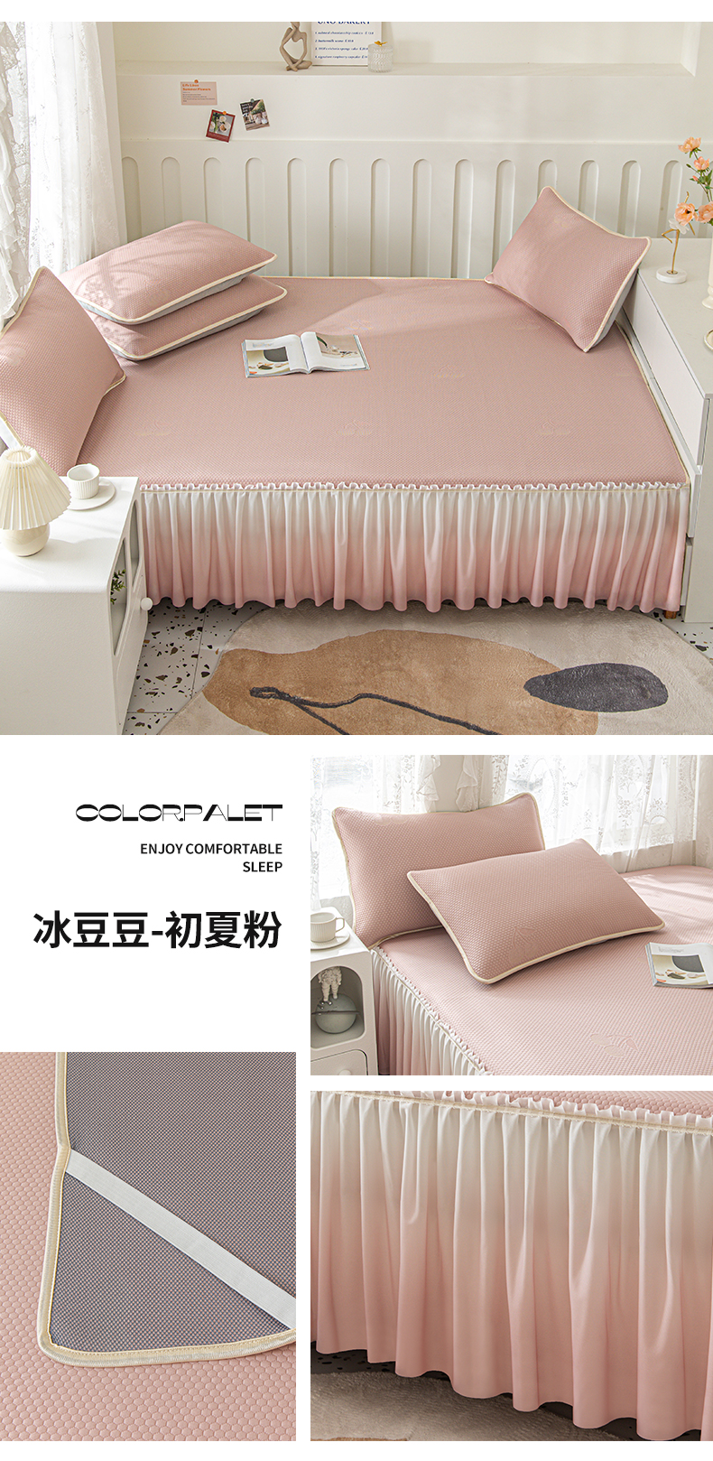 (总)美优兰2025新款PE提花凉感冰豆豆床裙,M豆蓝,M豆绿,初夏粉,初夏灰,初夏蓝,初夏绿,组合(仅供参考)