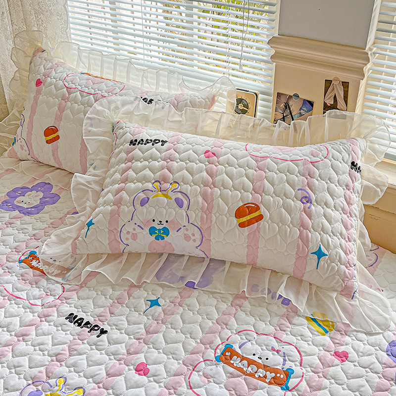 (总)艾橙家纺 2025新款雪纺花边加棉床笠款单品四件套-单枕套