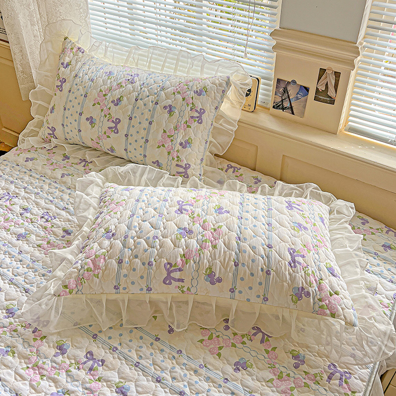 艾橙家纺 2025新款雪纺花边加棉床笠款单品四件套-单枕套 微风许甜