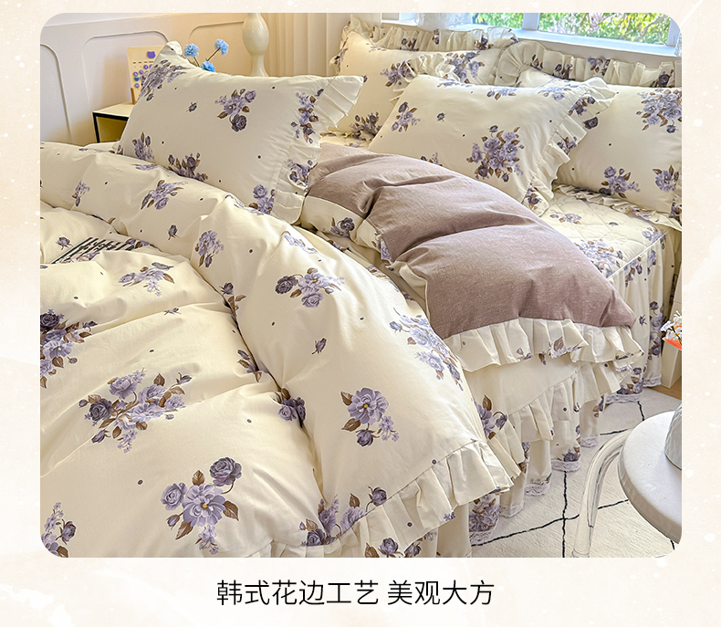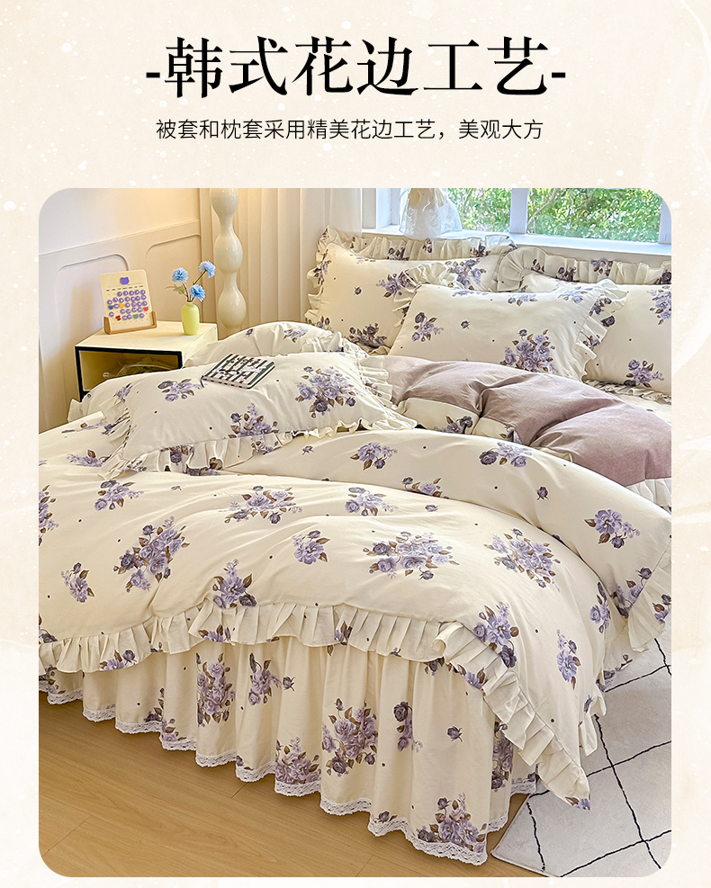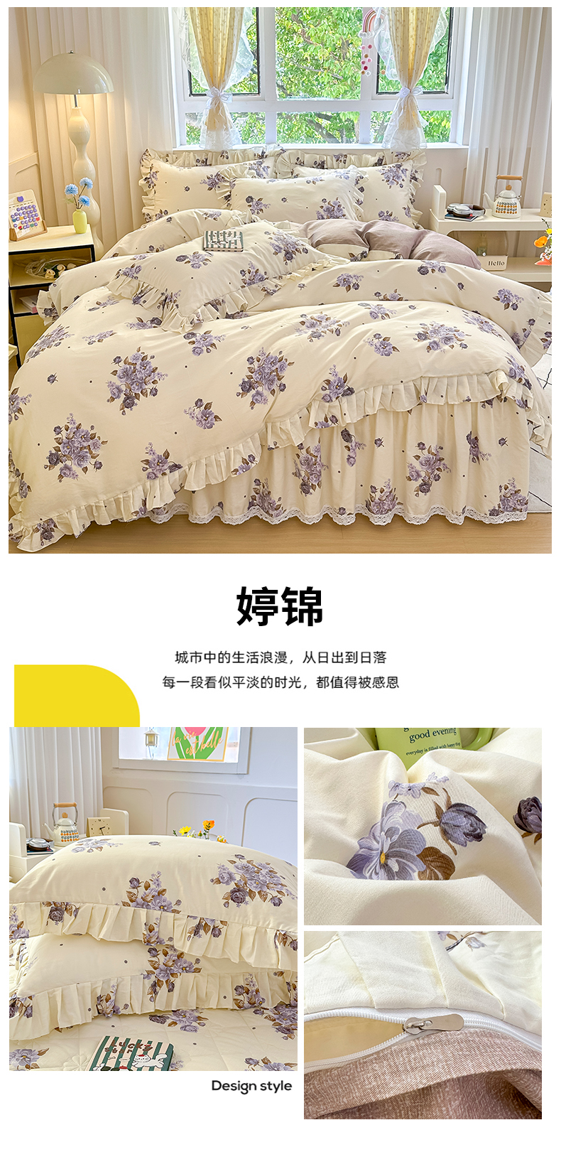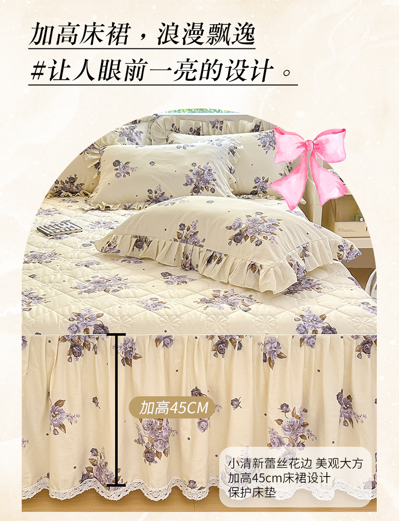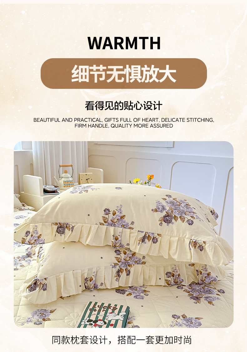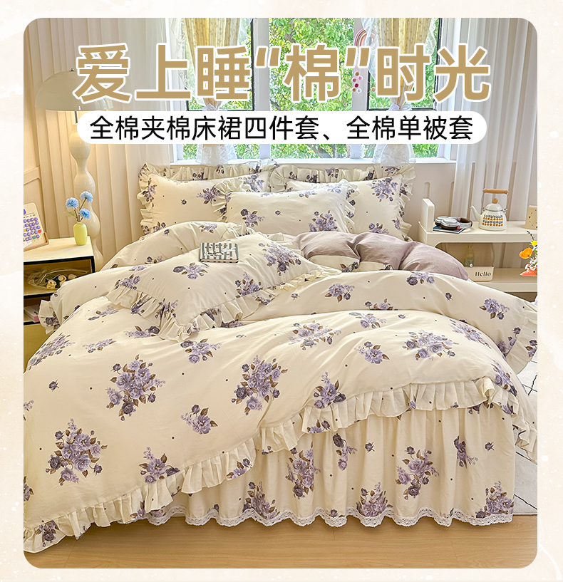忘忧草 2025新款全棉夹棉印花床裙四件套纯棉 婷锦