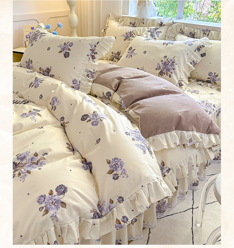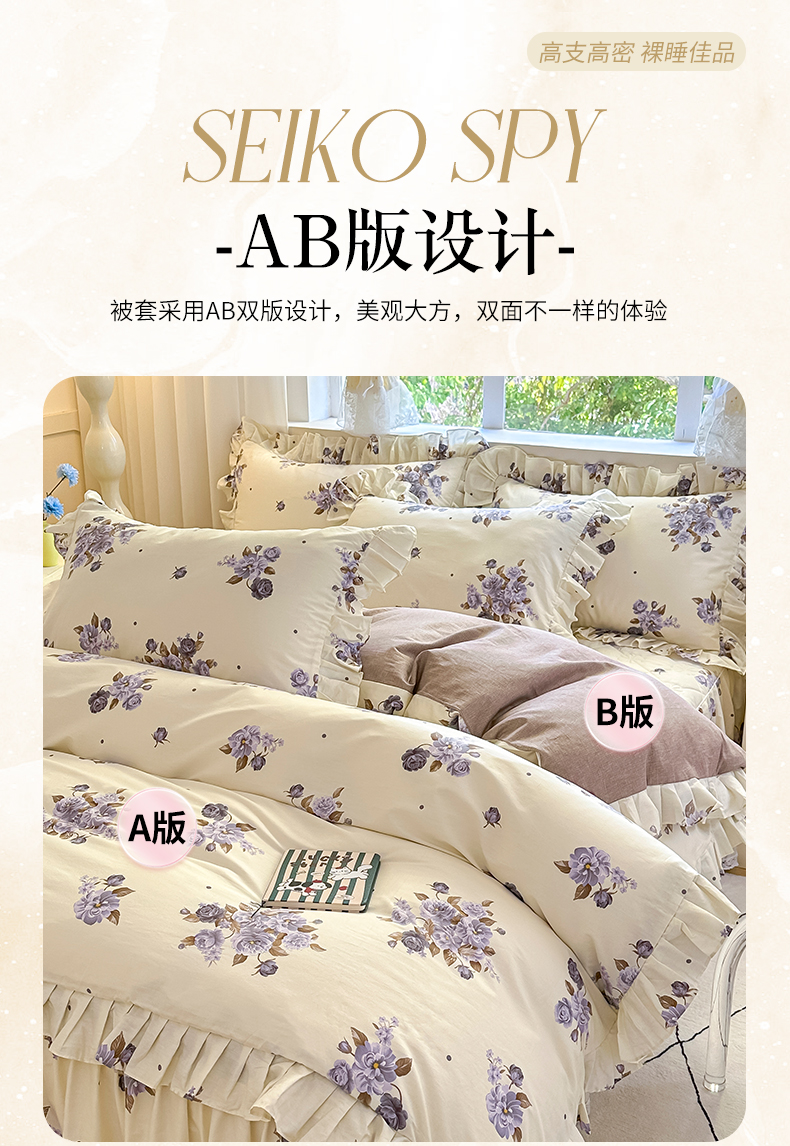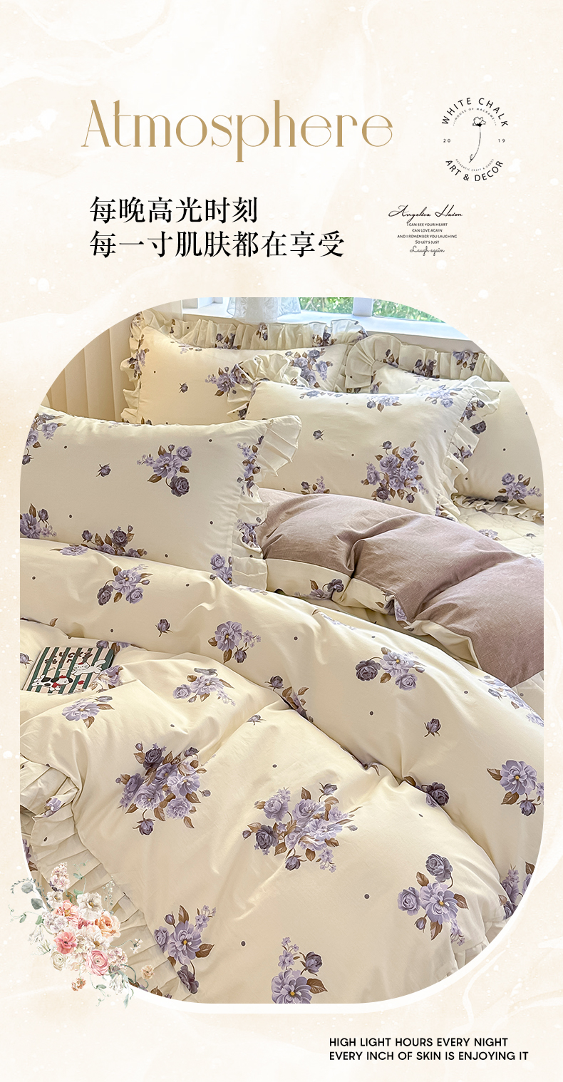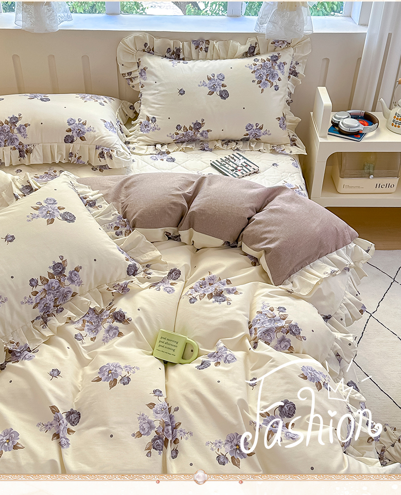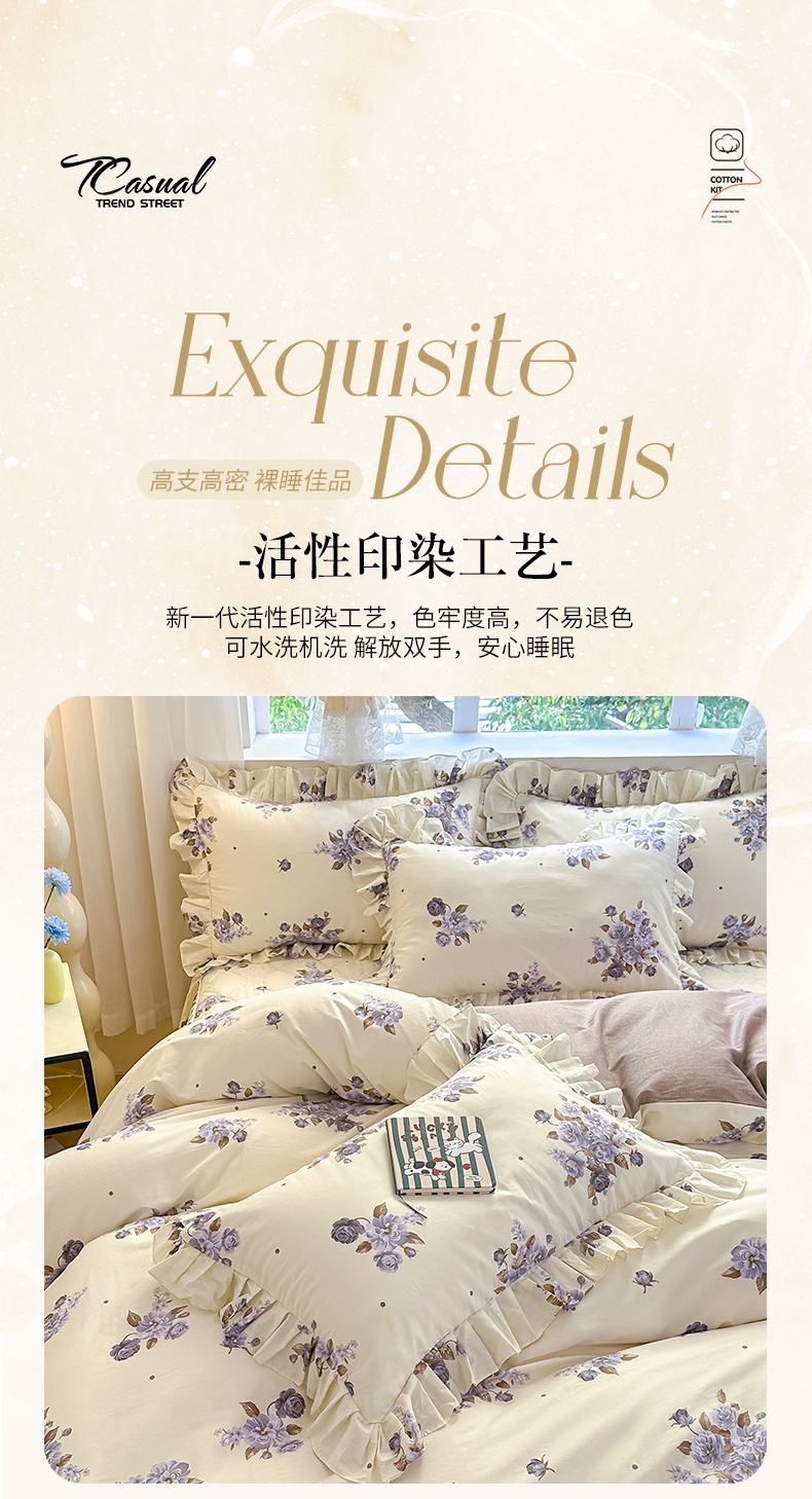 忘忧草 2025新款全棉夹棉印花床裙四件套纯棉 婷锦