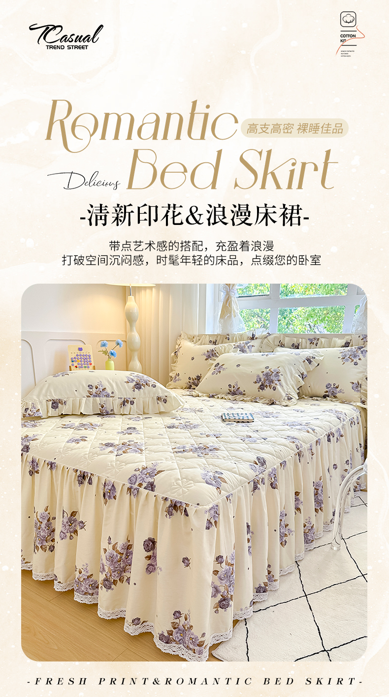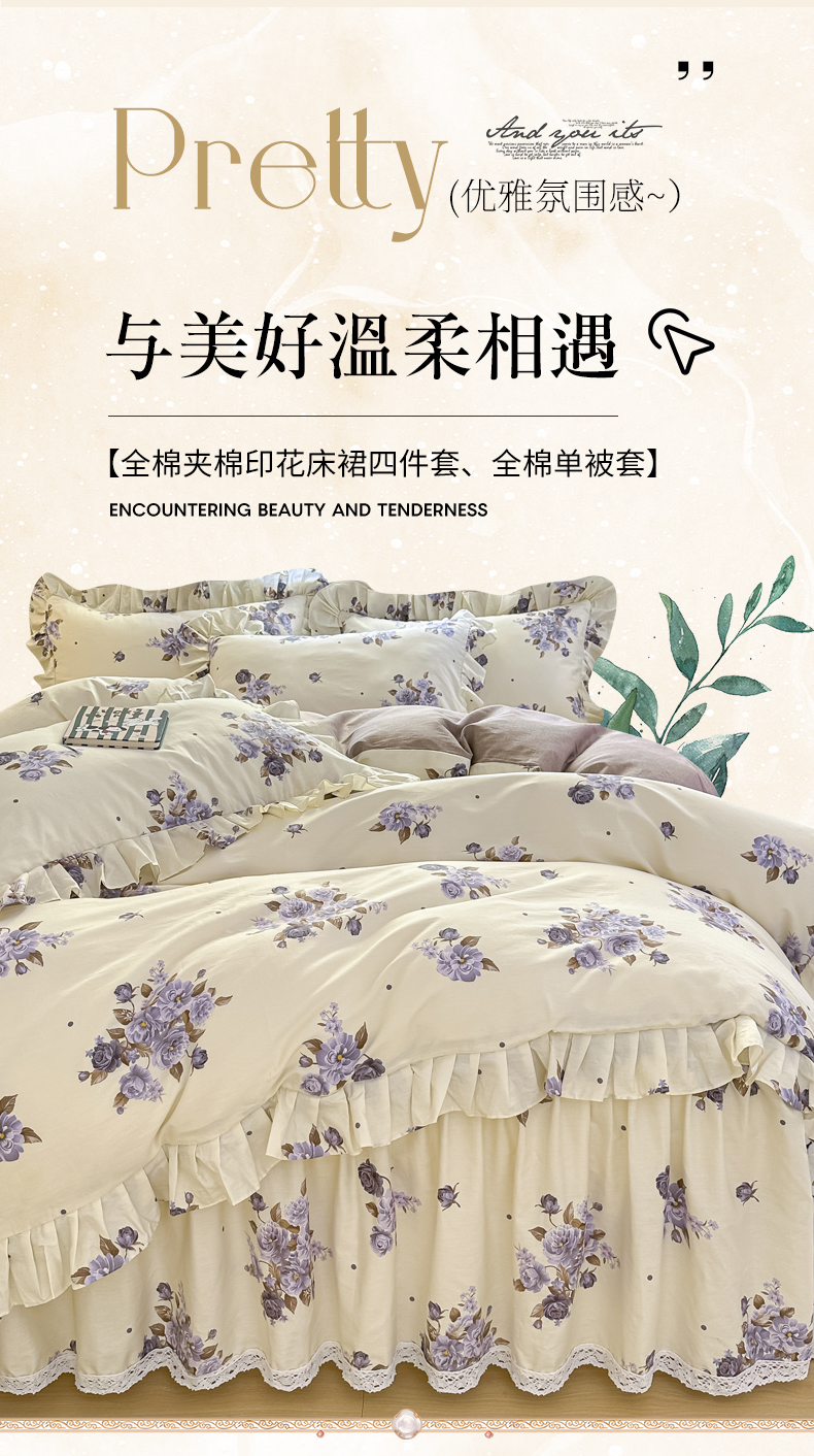• 91家纺网 家纺一手货源 找家纺 忘忧草 2025新款全棉夹棉印花床裙四件套纯棉 婷锦