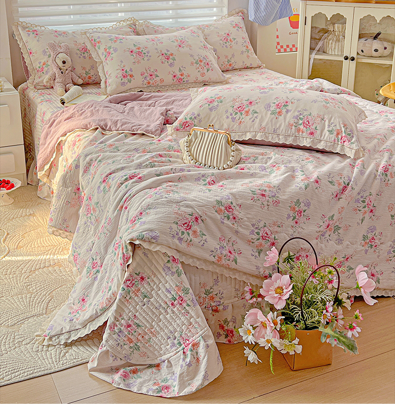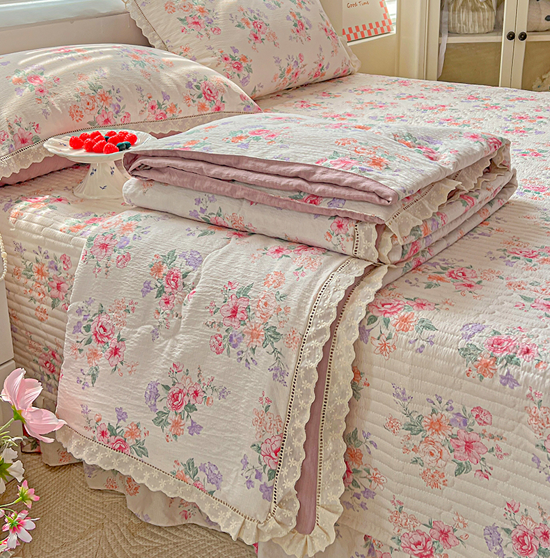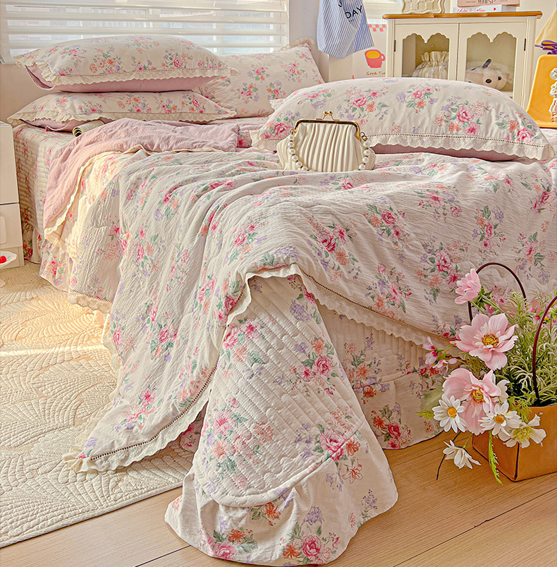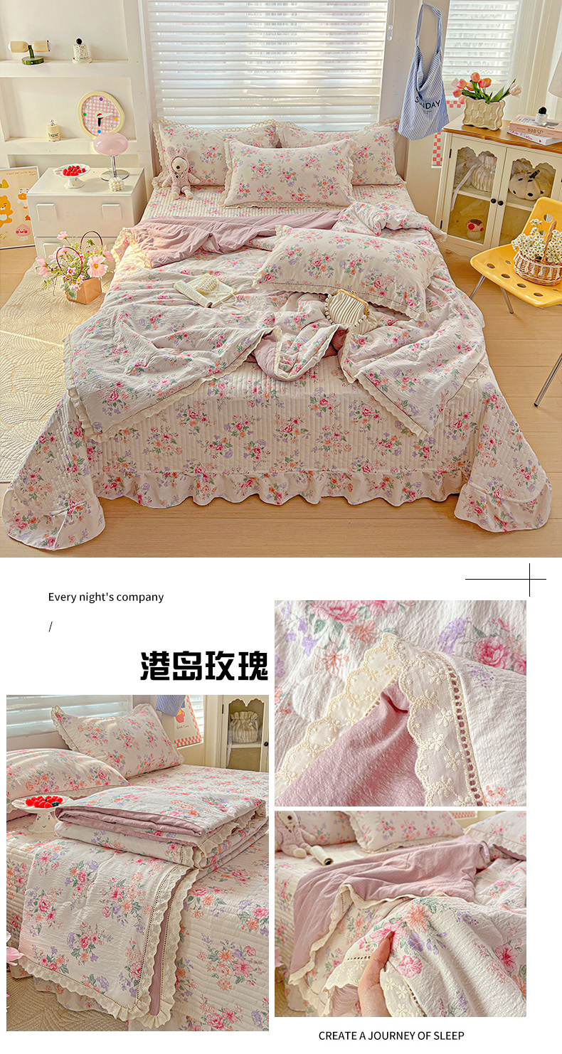 当前位置: 91家纺网 > 商品网购 > 床品套件 > 四件套 > 夏被四件套 > 富米莱(原臻工厂) 2025新款云感亲肤棉床盖床裙夏凉被四件套-全棉镂空花边 港岛玫瑰