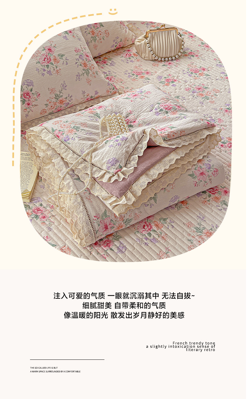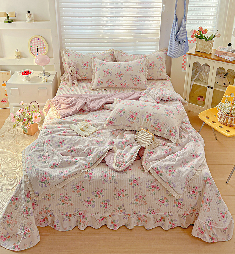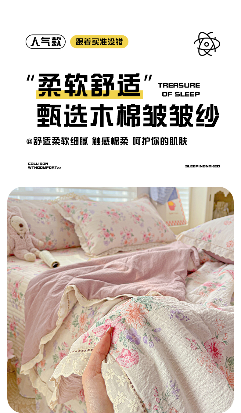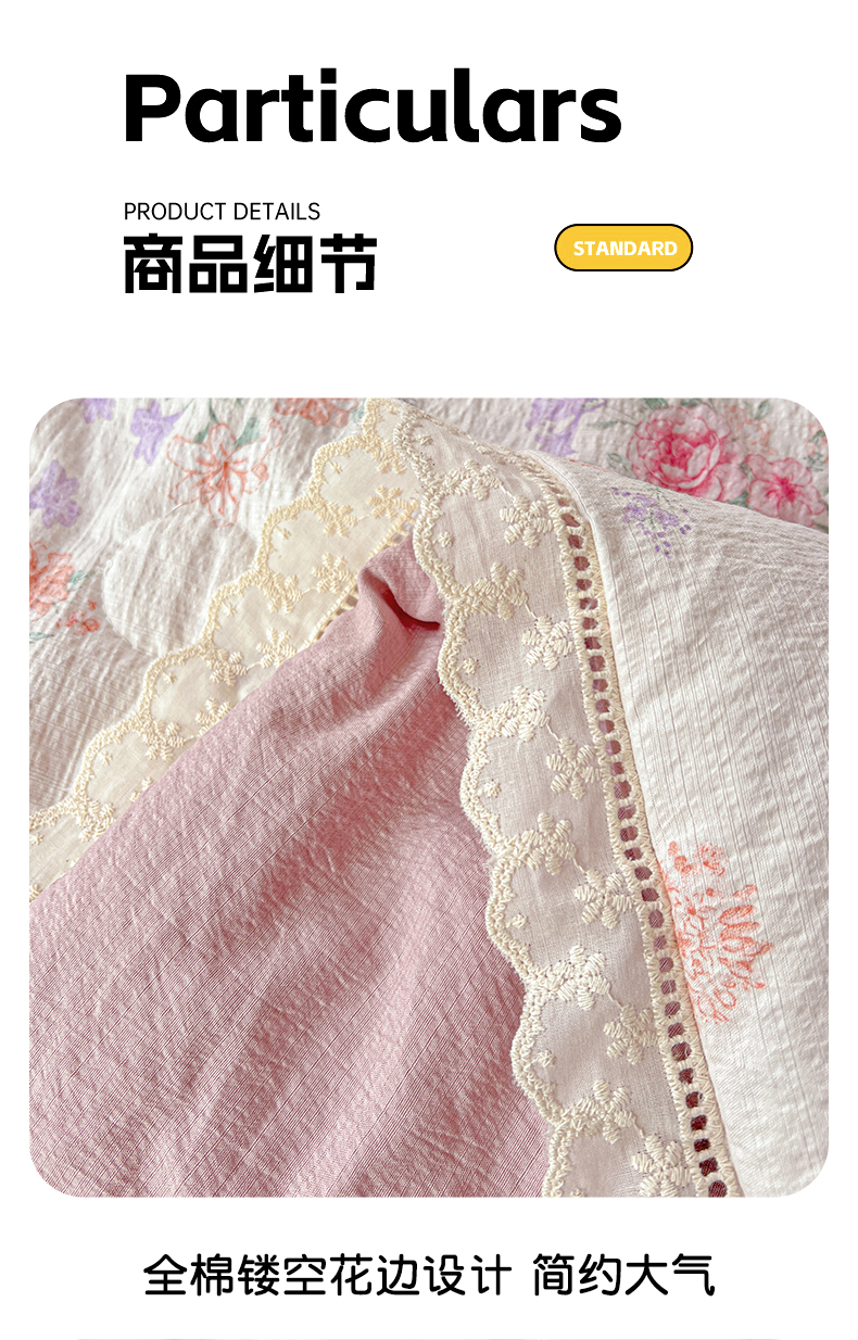 当前位置: 91家纺网 > 商品网购 > 床品套件 > 四件套 > 夏被四件套 > 富米莱(原臻工厂) 2025新款云感亲肤棉床盖床裙夏凉被四件套-全棉镂空花边 港岛玫瑰