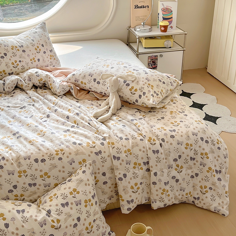 (总)漫仙阁家纺 2025新品云朵棉可爱风卡通烫画单床笠枕套三件套,小浣熊,邻家女孩,小青蛙,兔小姐,花仙子,狗狗家族