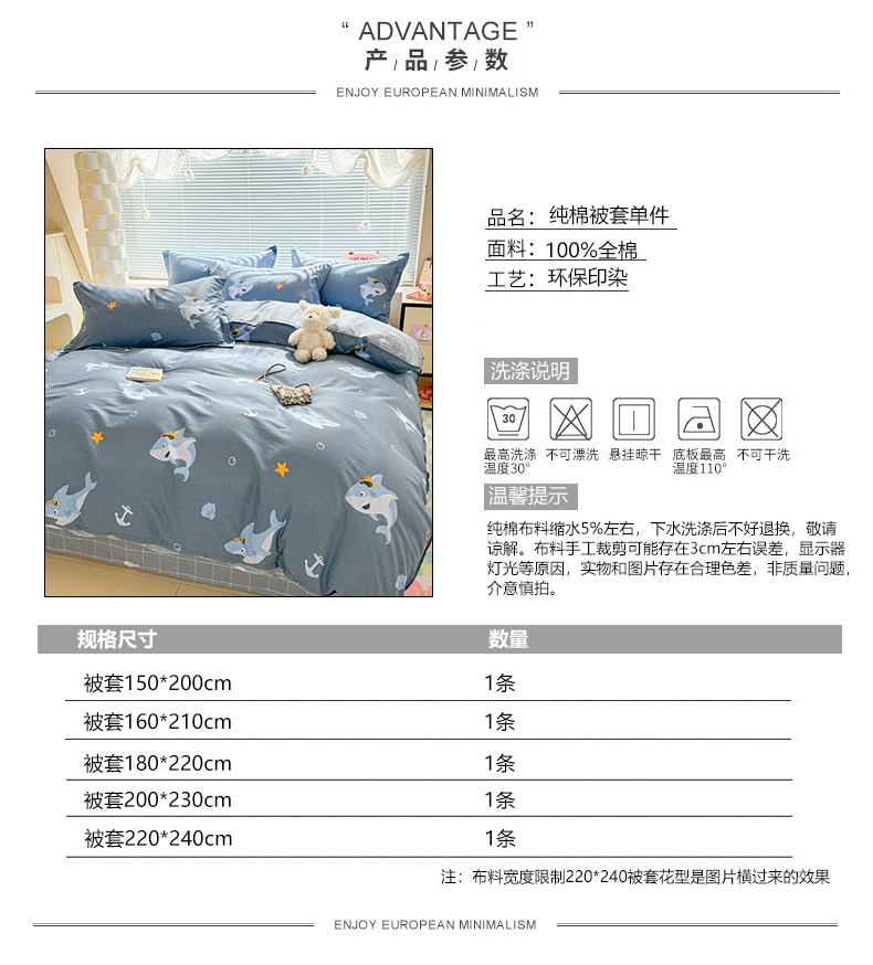 商品名称: (提供买家秀 爆款花型 不断货)2025新款单被套全棉印花单被套小清新简约系列单被套 海洋之星