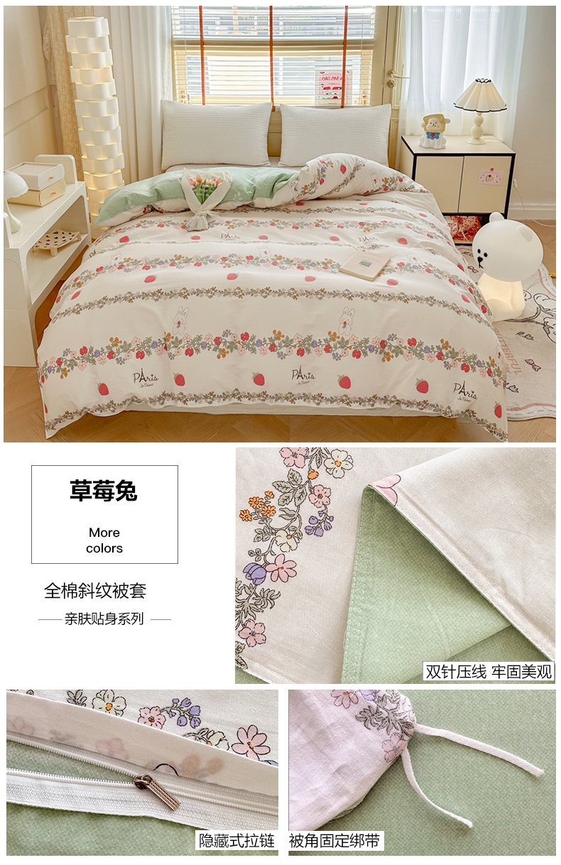 (总)(买家秀爆款不断货)儿童卡通花卉高克重亲肤棉13372全棉纯棉四件套全棉纯棉全棉四件套全棉纯棉三件套,采薇兔,巴尼,茶话会,春意萌,椿野,莱茵小兔,木槿,南枝,青蕊,青棠,森之境,晚风,忘忧草,绽蔓