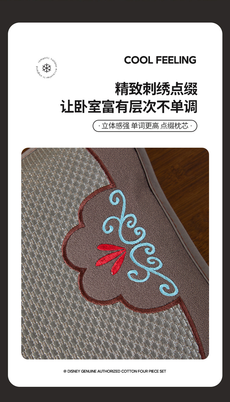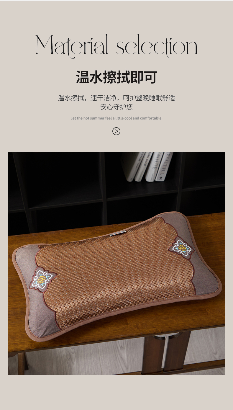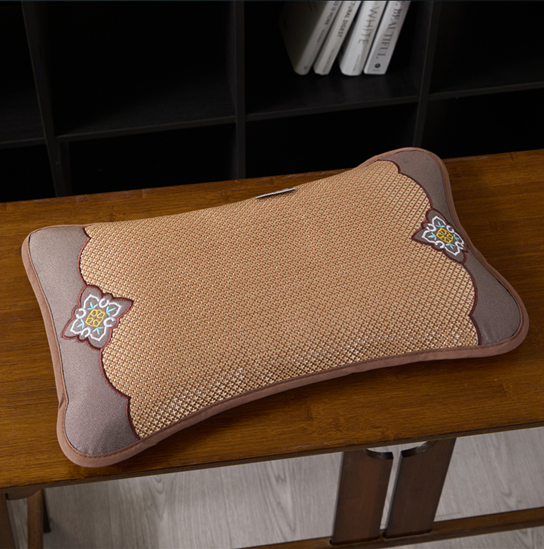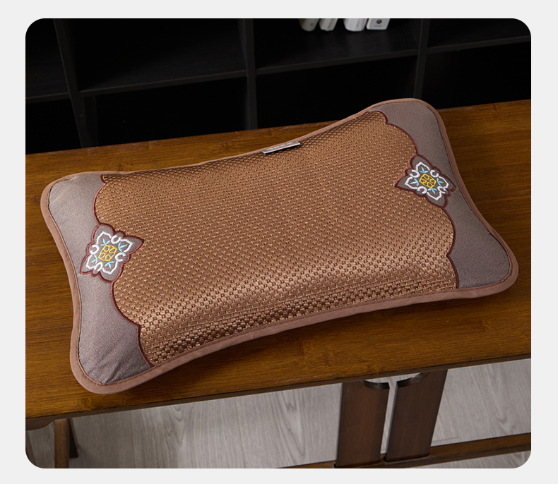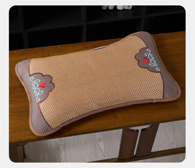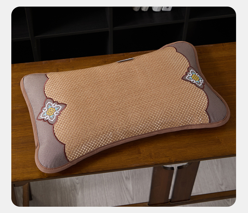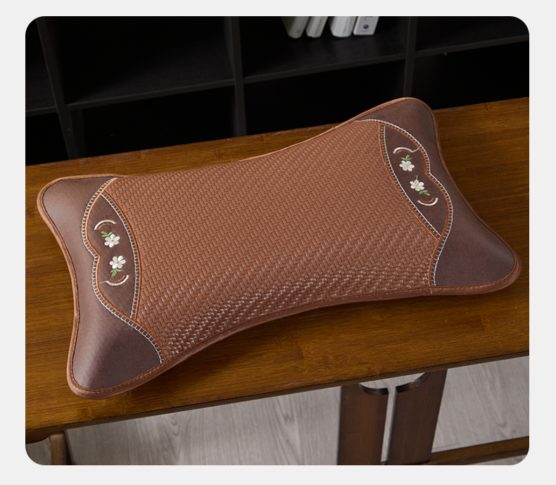 夏季藤席凉枕民族风系列--花儿朵朵咖色35x55±3cm/只 填充荞麦