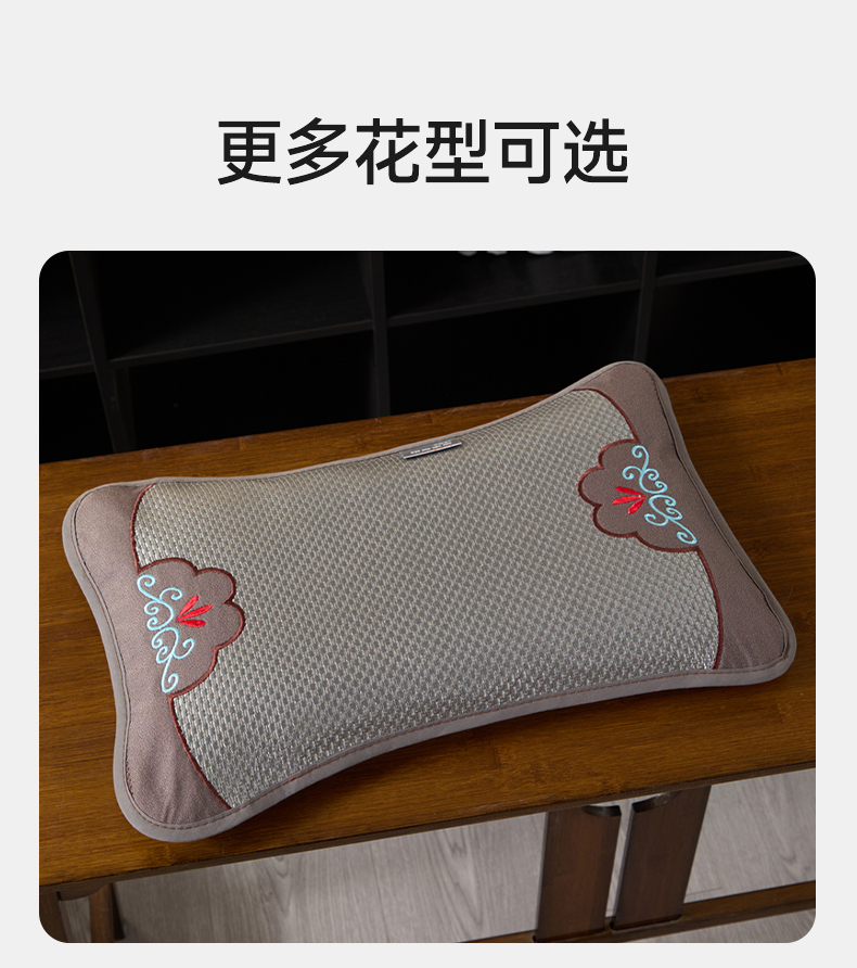 夏季藤席凉枕民族风系列--花儿朵朵灰色35x55±3cm/只 填充荞麦