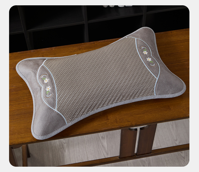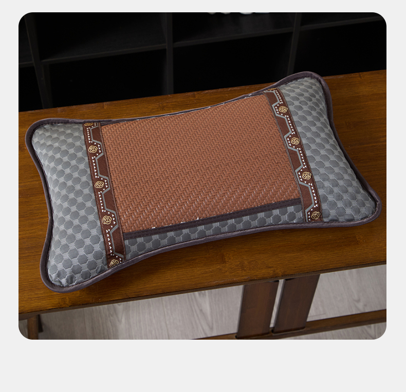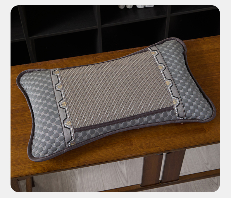 夏季藤席凉枕民族风系列-素面豆豆灰色35x55±3cm/只 填充荞麦