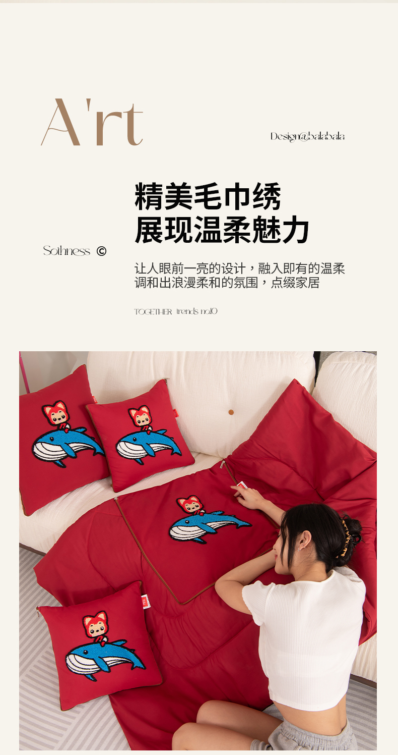 商品名称:(总)宝马家纺(原梦童画)2025新款毛巾绣阿狸四季款抱枕被