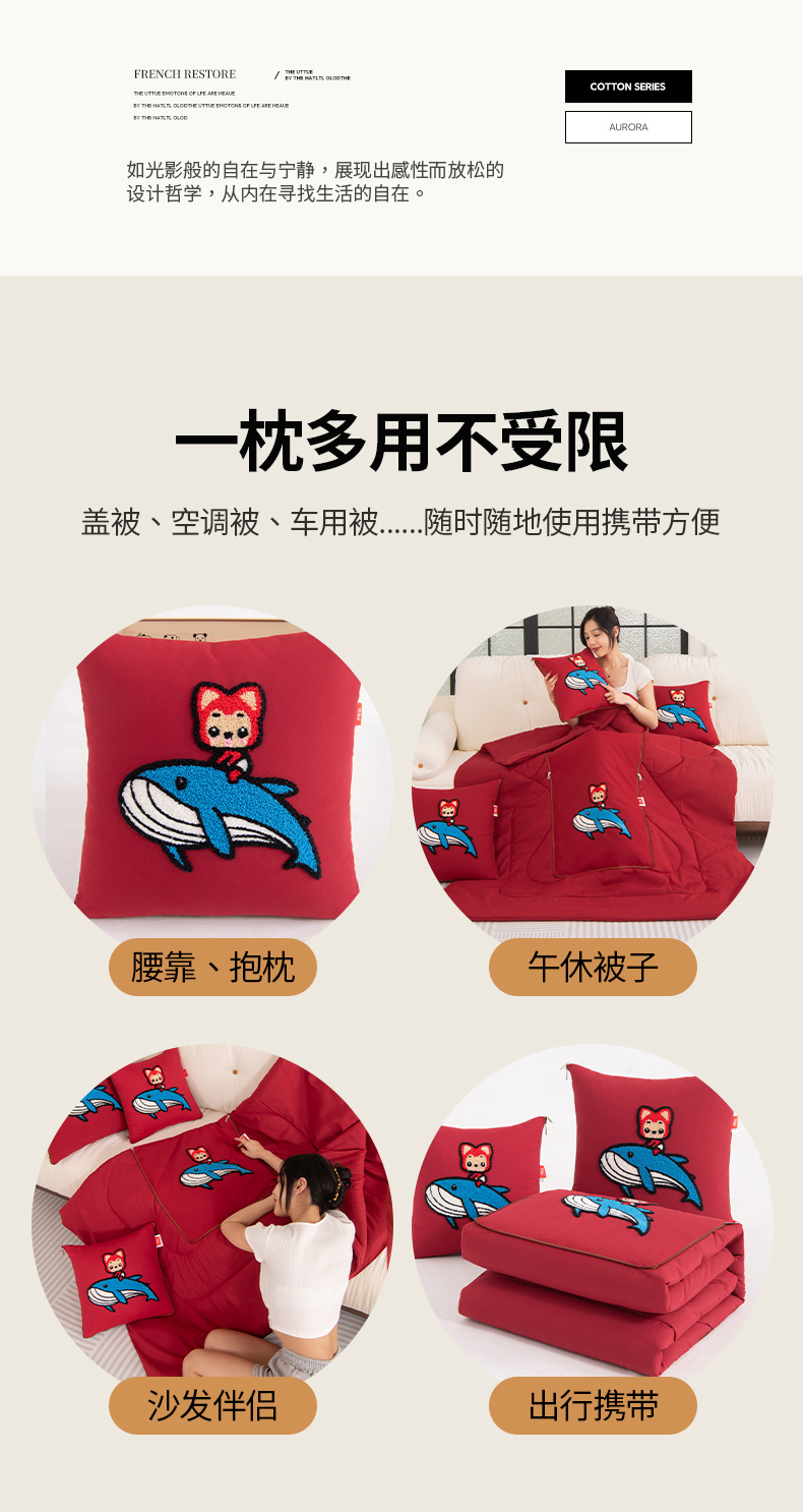 (总)宝马家纺 2024新款全棉多功能抱枕被,暴富虎,橙子花花,动物派对,蜂之恋,格调,格韵时光,格致时光,简约生活,蓝鲸,满天星,圣诞树,时光格,条纹风采,小蜜蜂,星空,叶之风