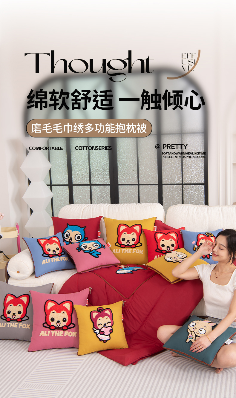 (总)宝马家纺(原梦童画)2025新款毛巾绣阿狸四季款抱枕被