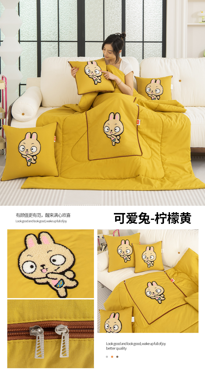 (总)宝马家纺(原梦童画) 2025新款加厚巴黎兔抱枕被,巴黎兔-蓝,巴黎兔-粉,巴黎兔-灰,巴黎兔-咖,组合图