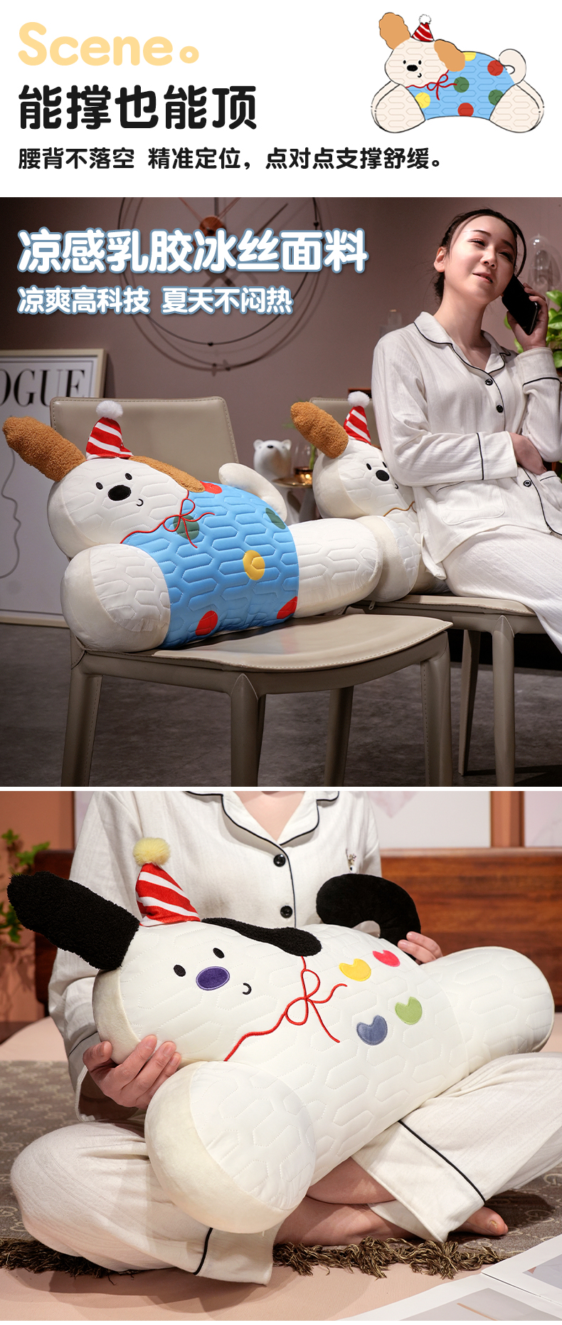 (总)仟亿莱 2025新款翘耳快乐小狗乳胶拥抱式腰靠