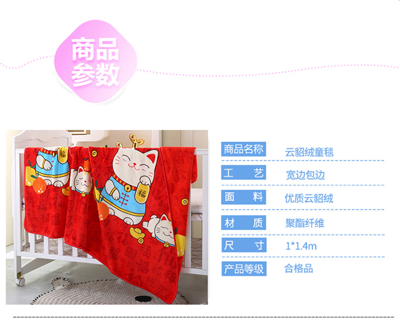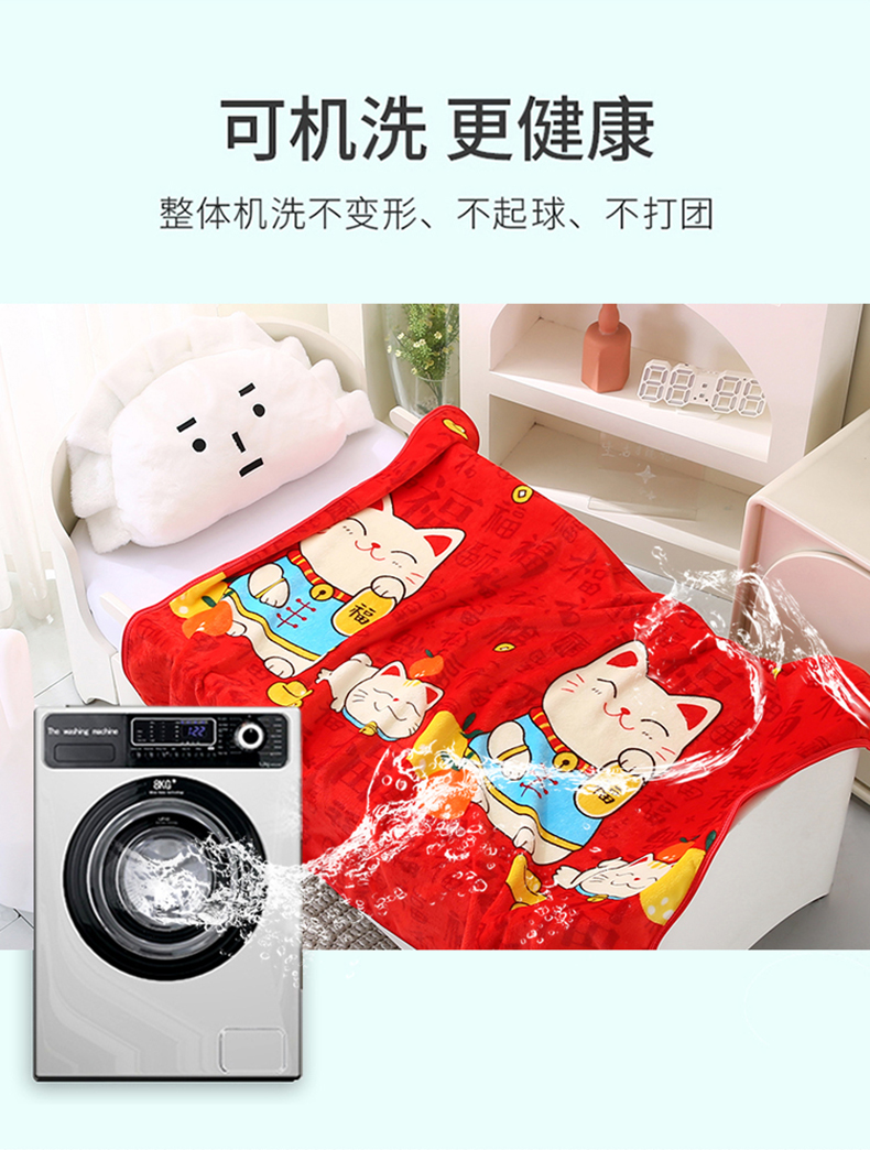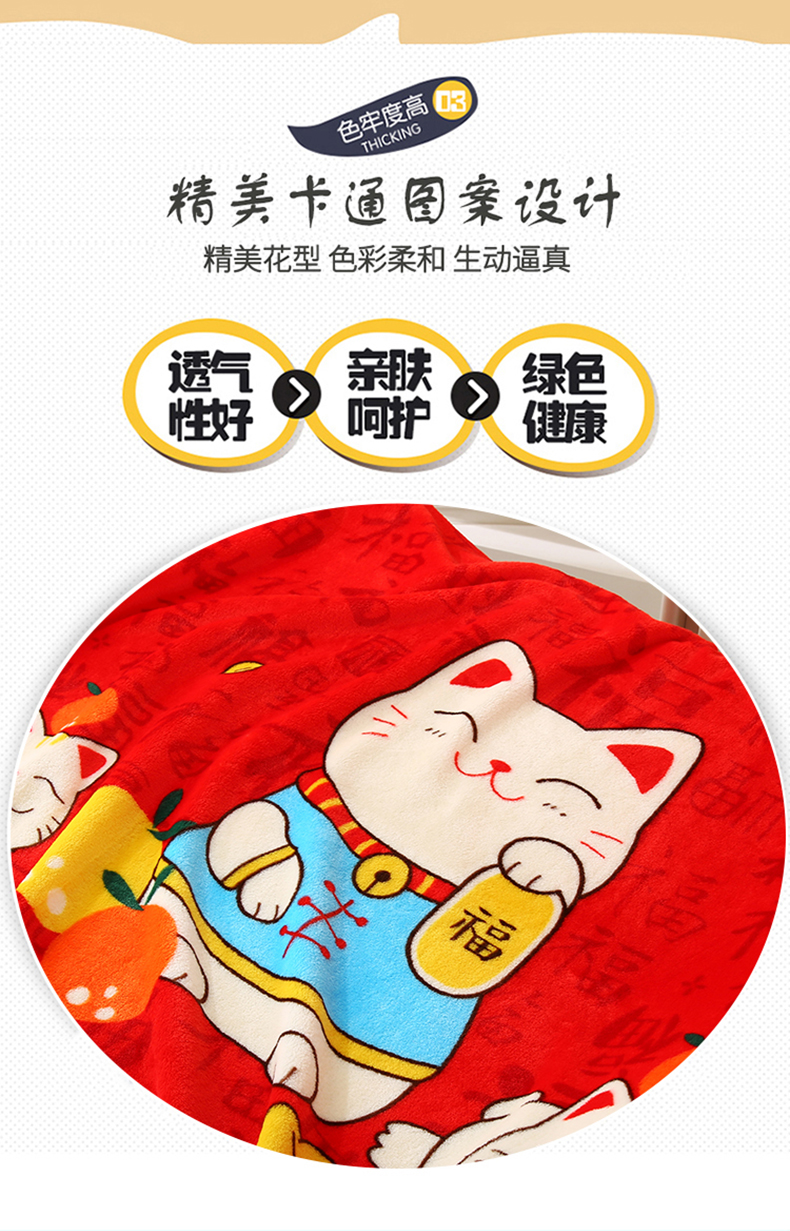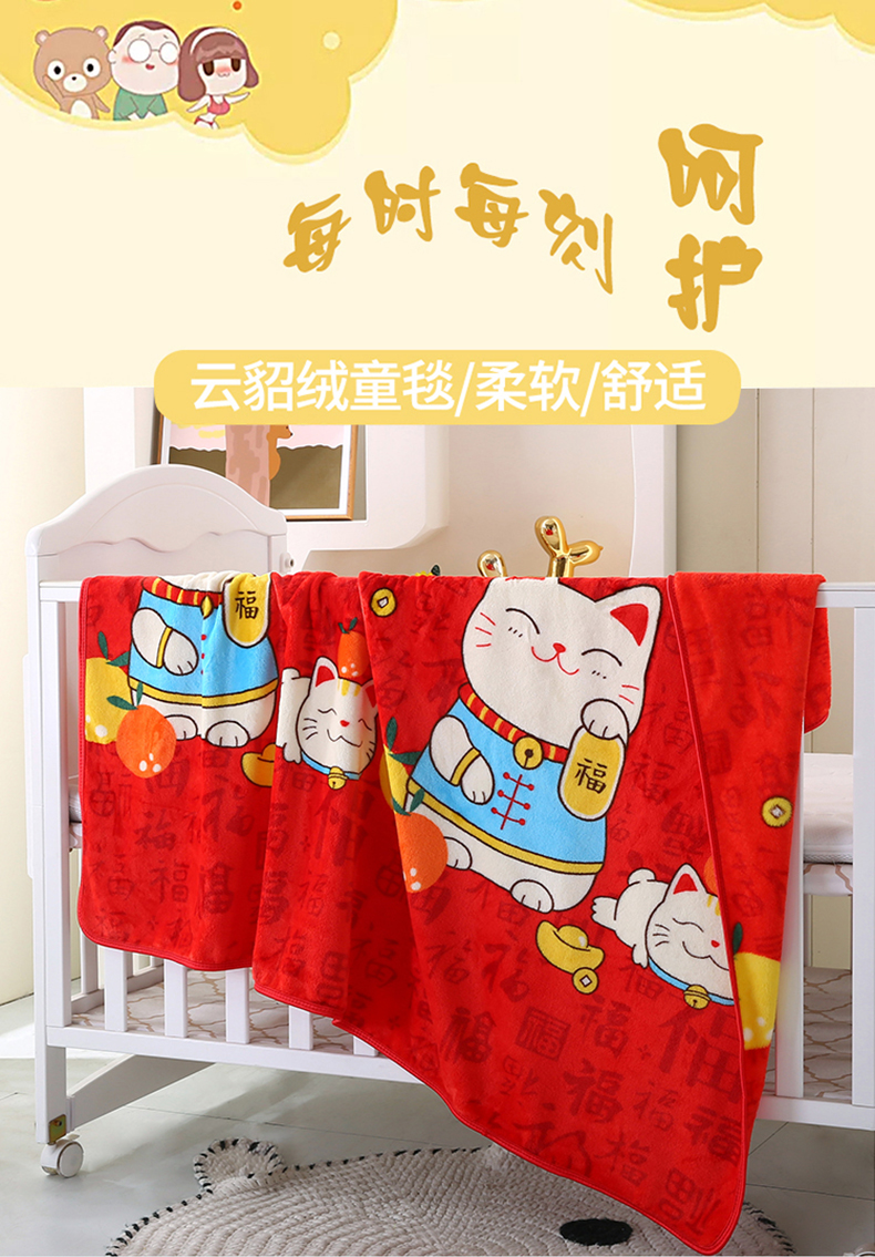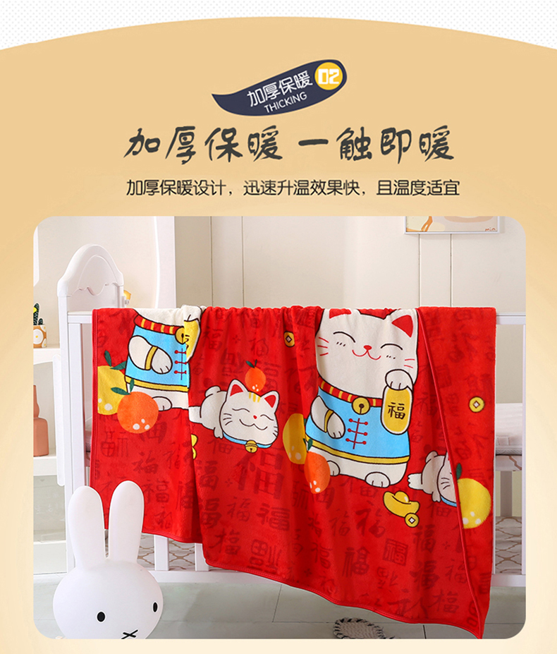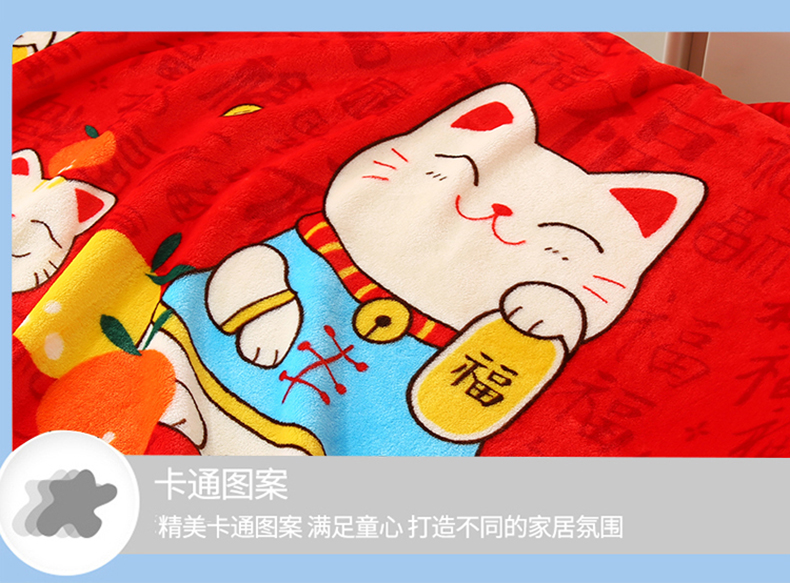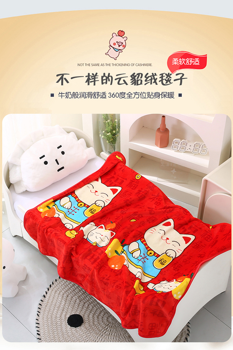 2024款300克永乐家居-加厚云貂绒毛毯双面绒午休毯牛奶绒可定制尺寸,招财猫