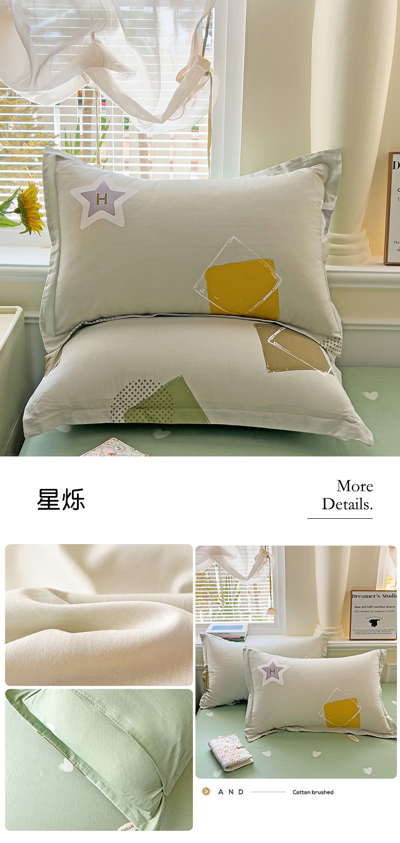 商品名称:依庭 2025新款全棉印花花卉款四件套单品系列-单枕套 星烁