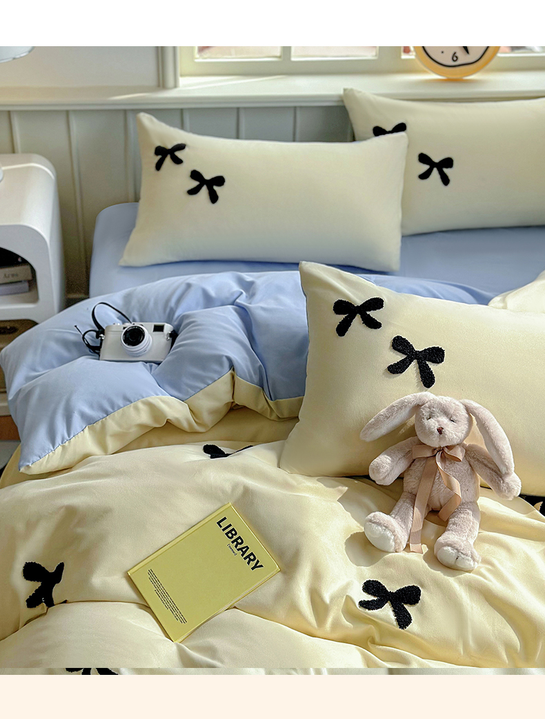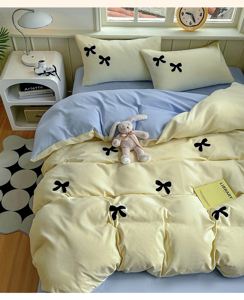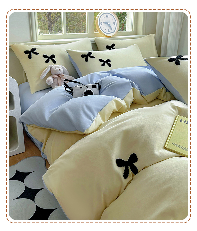 当前位置: 91家纺网 > 商品网购 > 床品套件 > 四件套 > 水洗棉四件套 > 迪拜家纺 2025新款加厚水洗棉四件套-蝴蝶结 蝴蝶结-黄+蓝