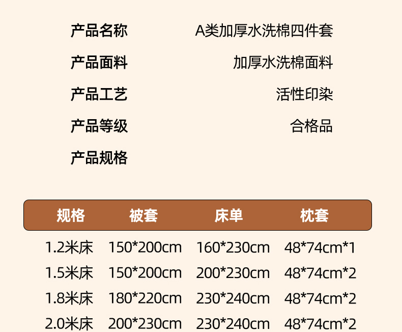 1.8m床单款四件套 (被套 180*220cm) | ¥55.00 |