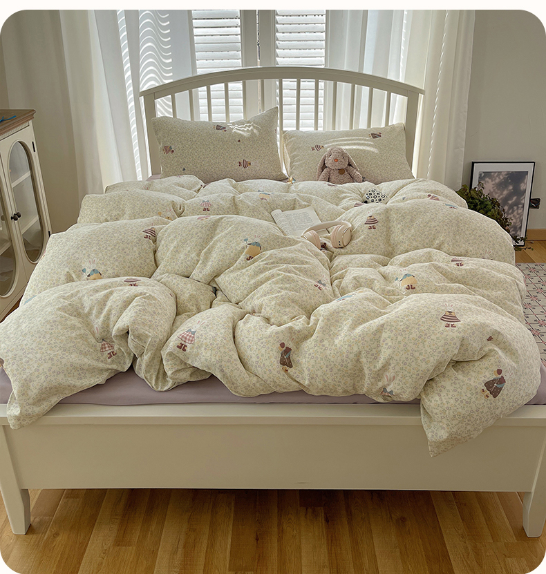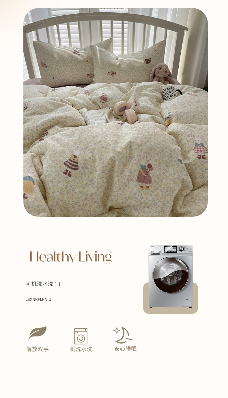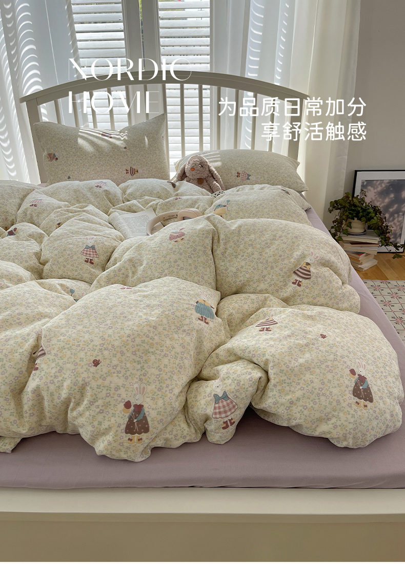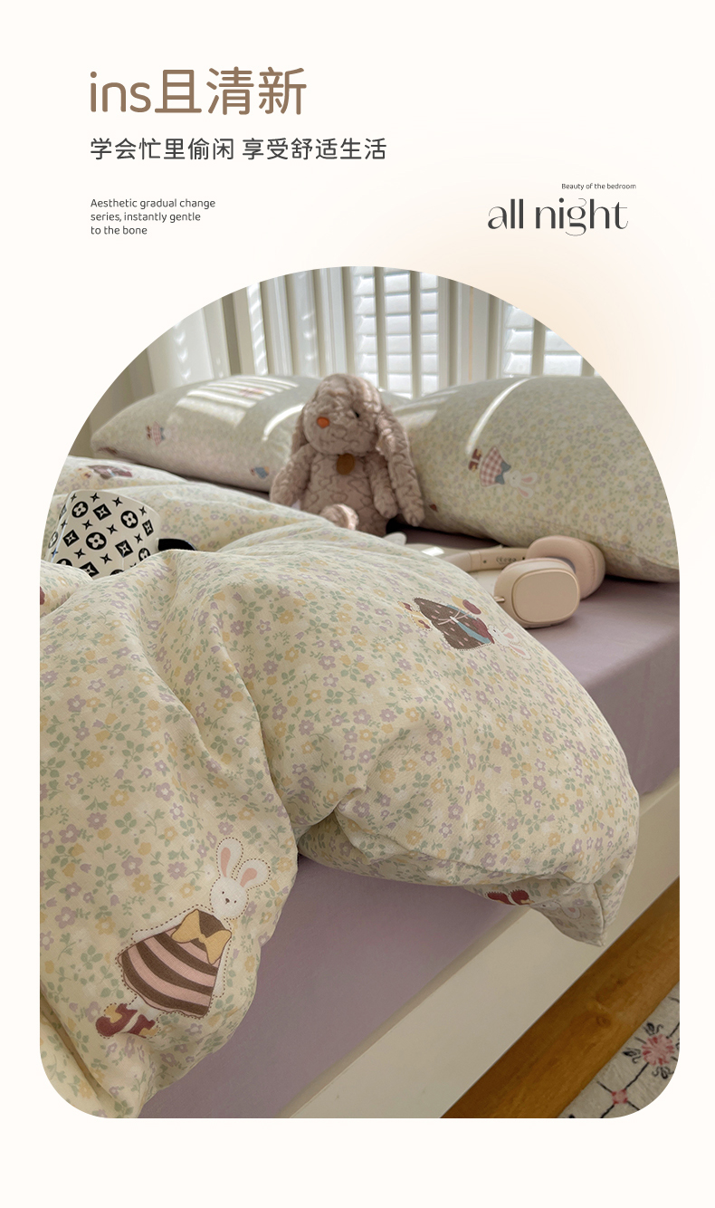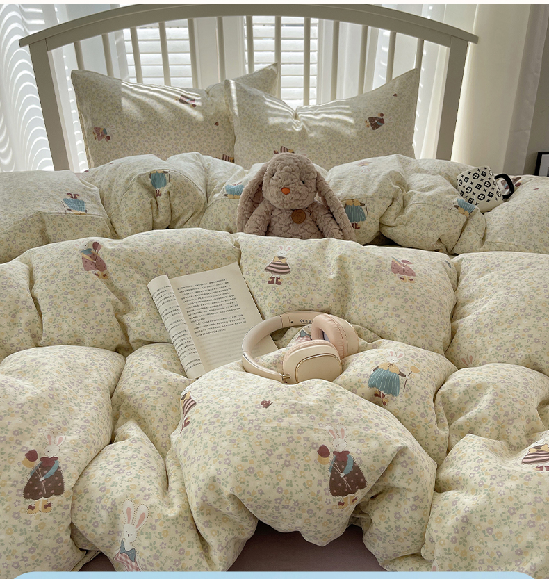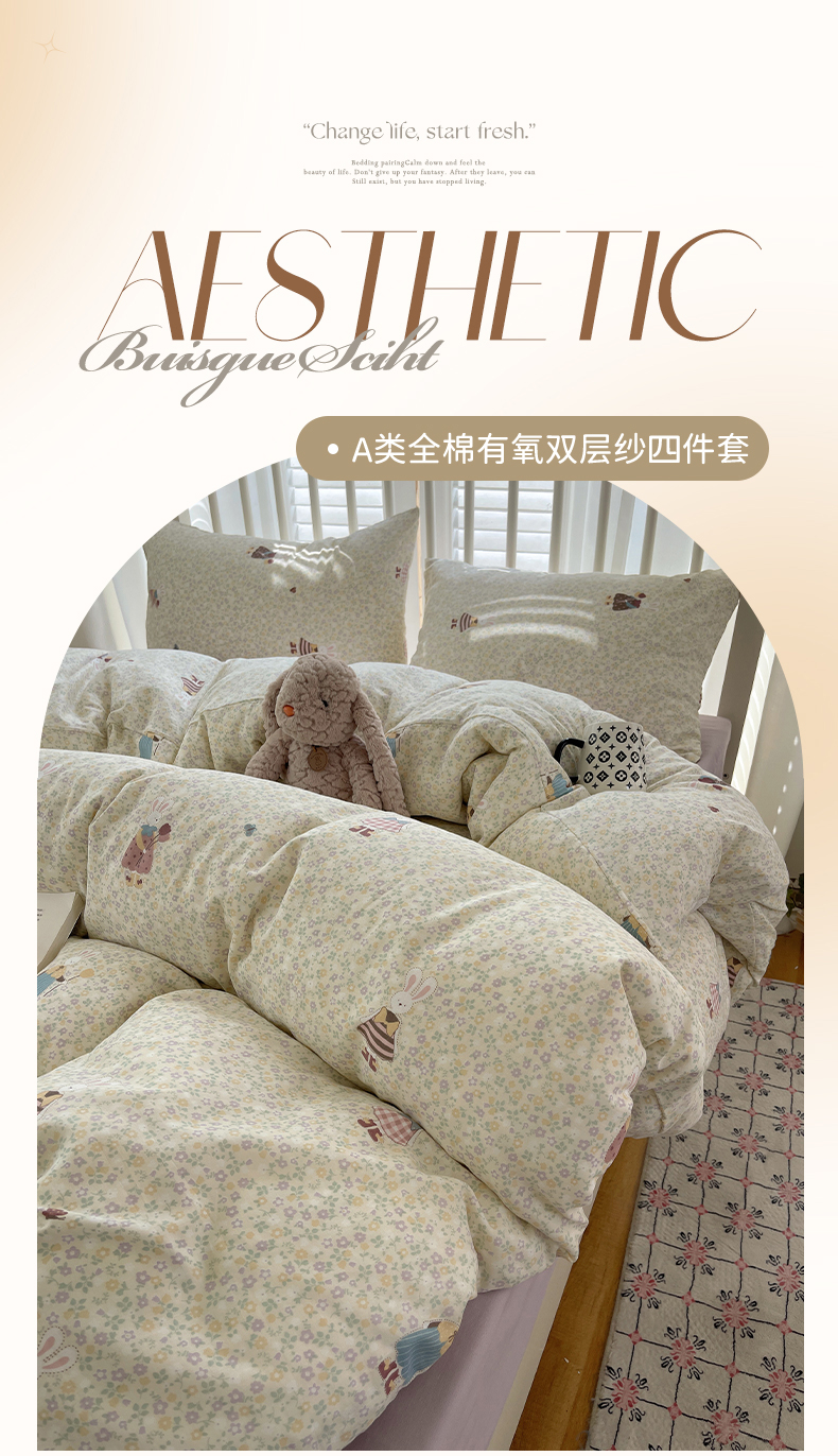 商品名称:瑞莱 2025夏季新款全棉纯棉有氧双层纱四件套 原宿小兔
