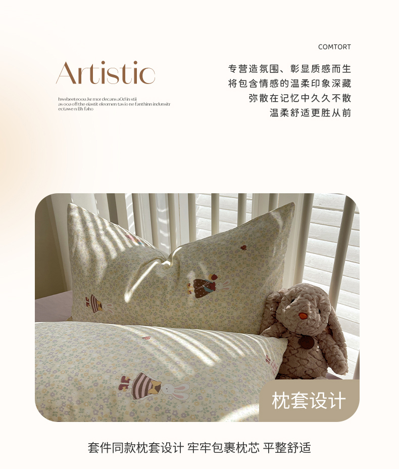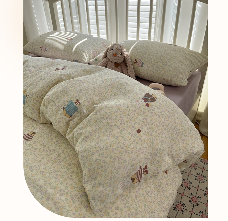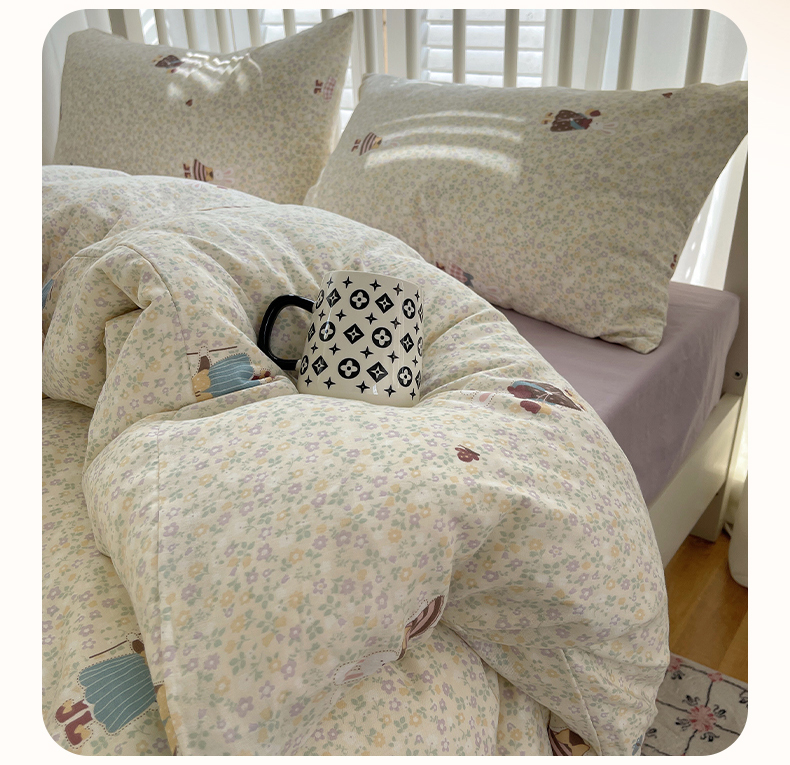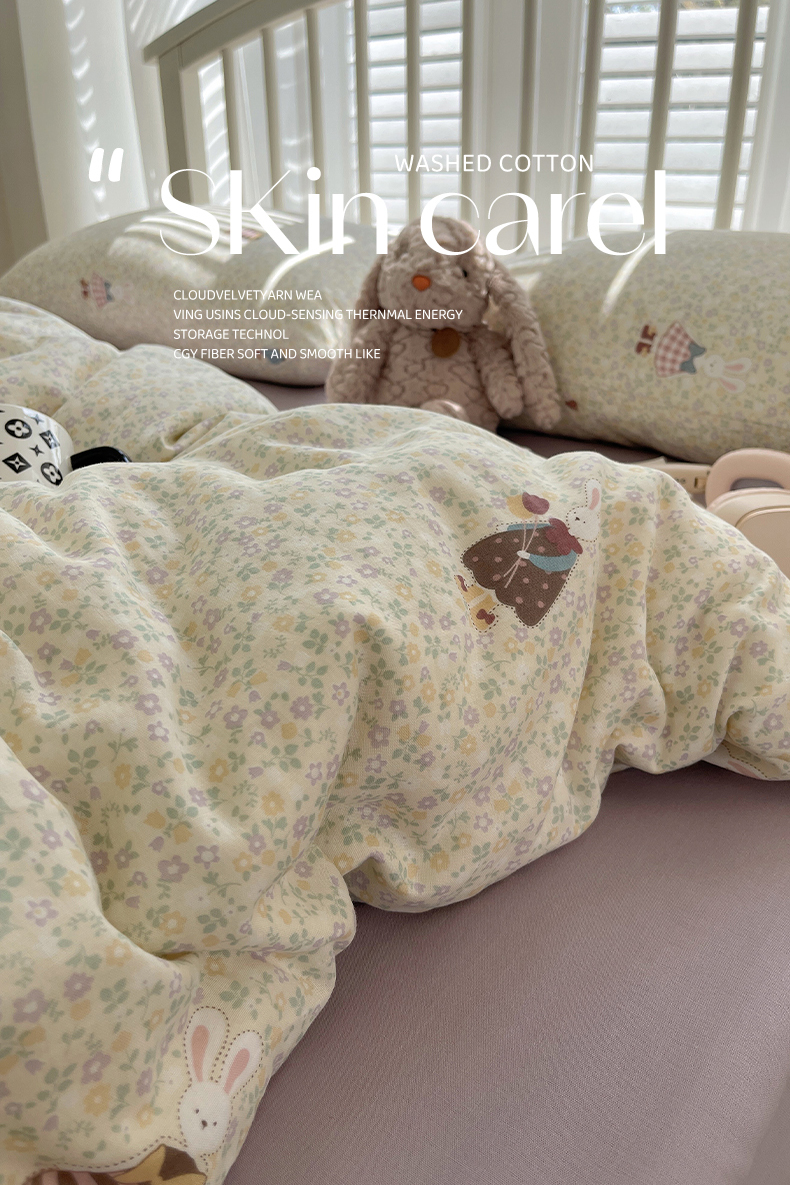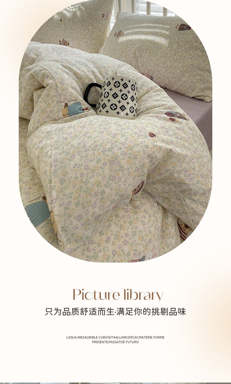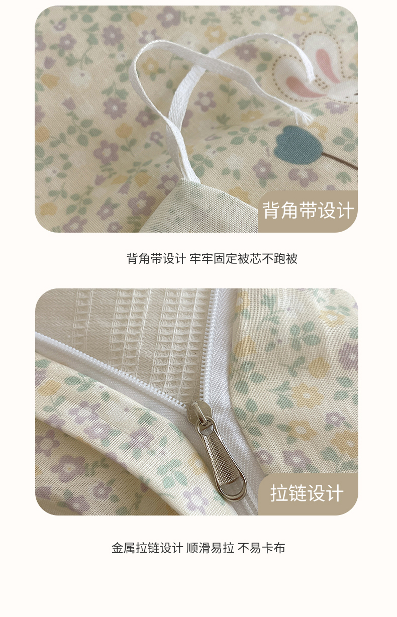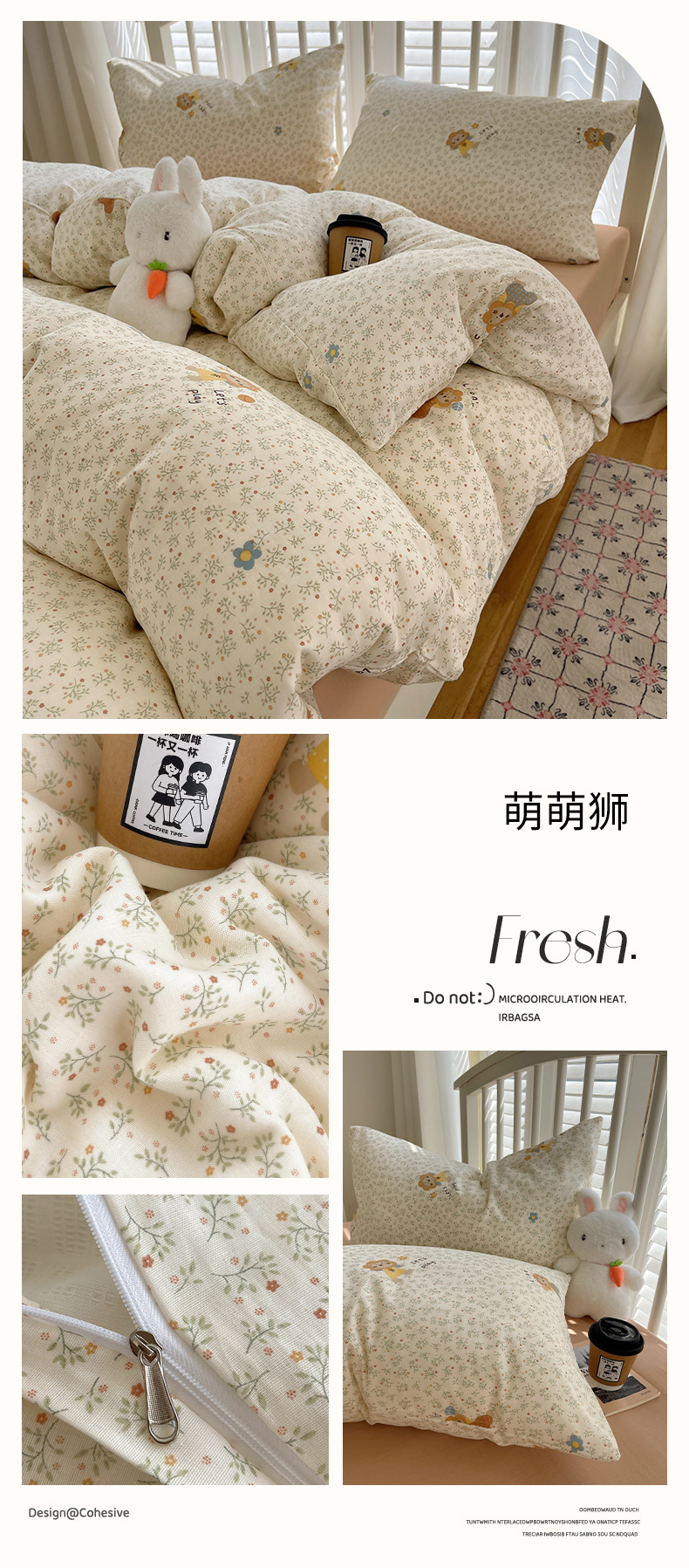 商品名称:瑞莱 2025夏季新款全棉纯棉有氧双层纱四件套 原宿小兔