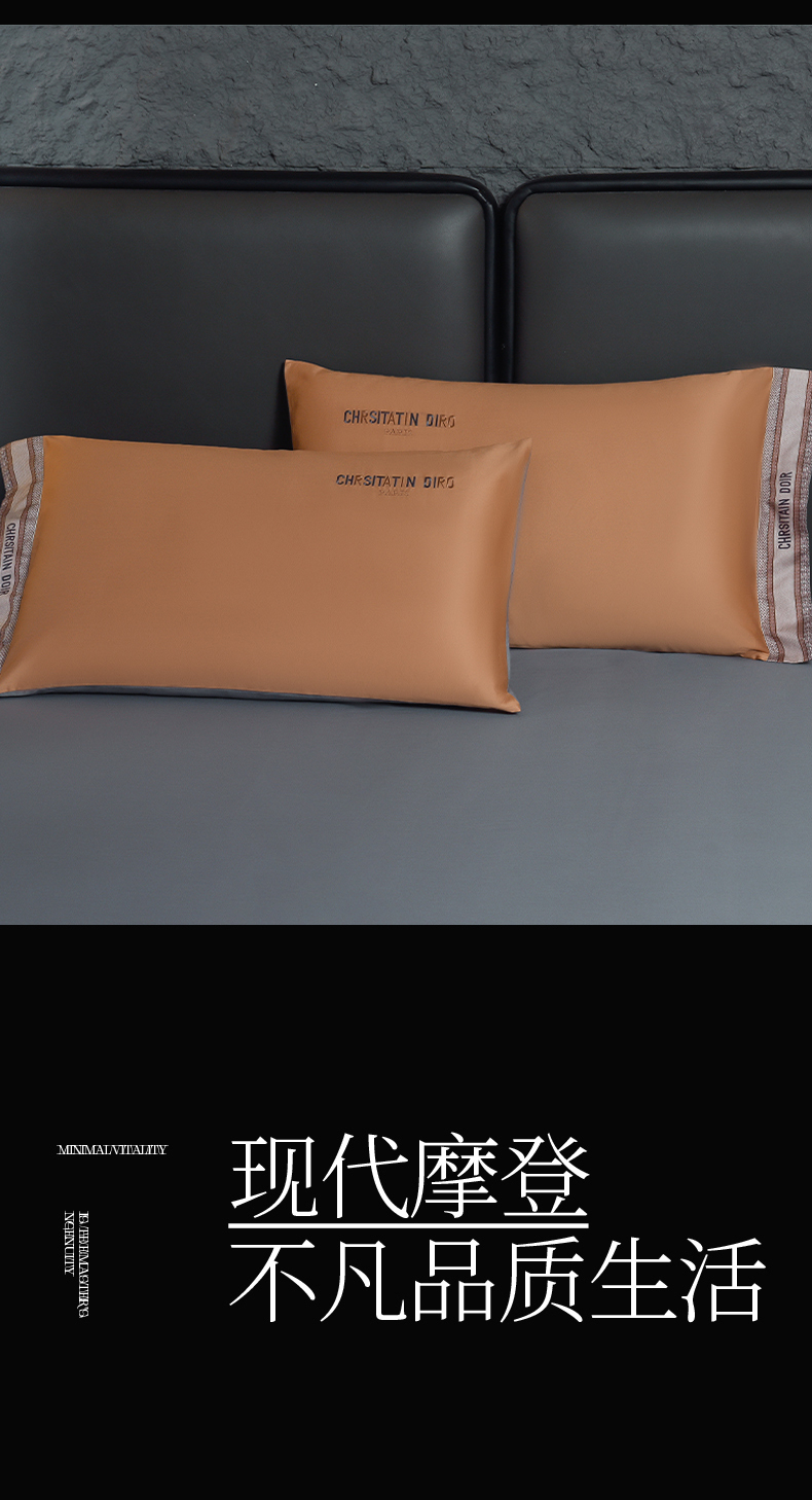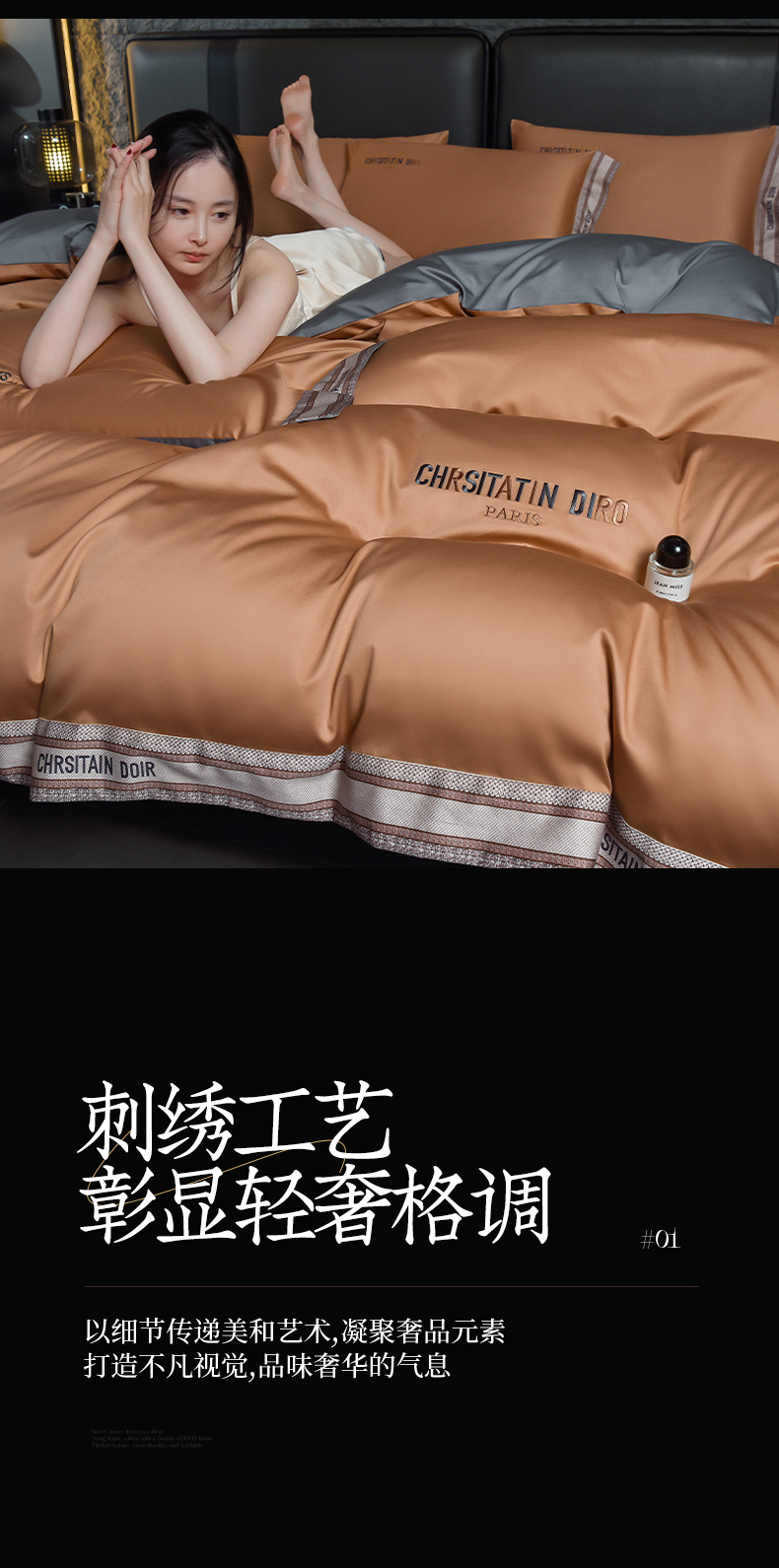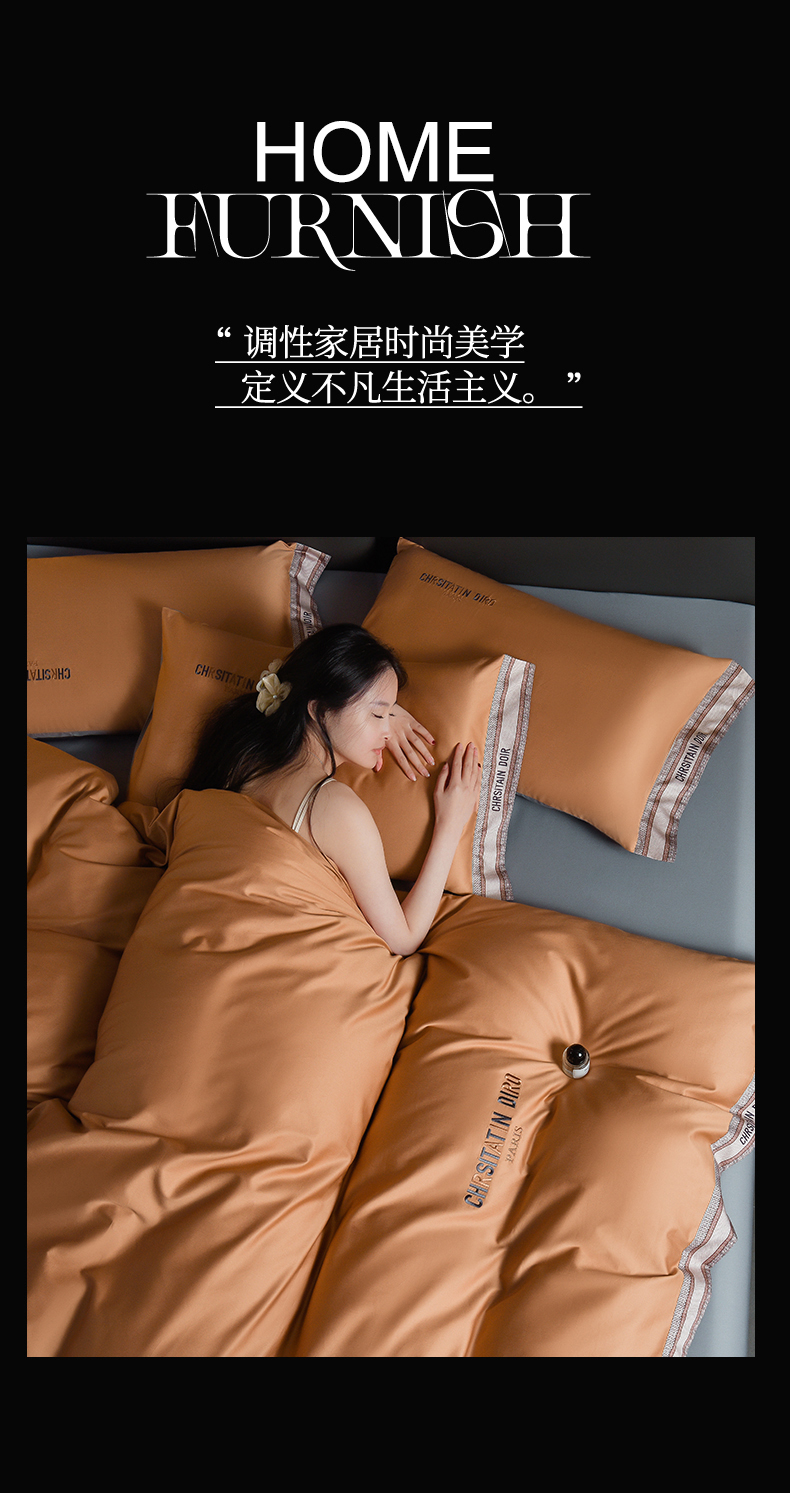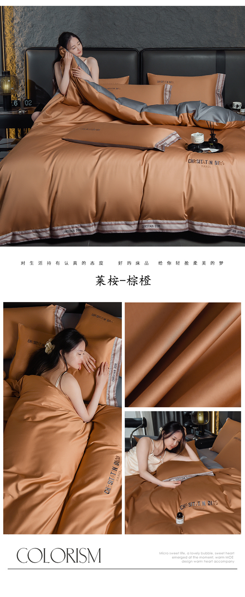 瑞驰家纺 2025新款长绒棉纯棉绣花四件套-莱桉系列 莱桉-棕橙