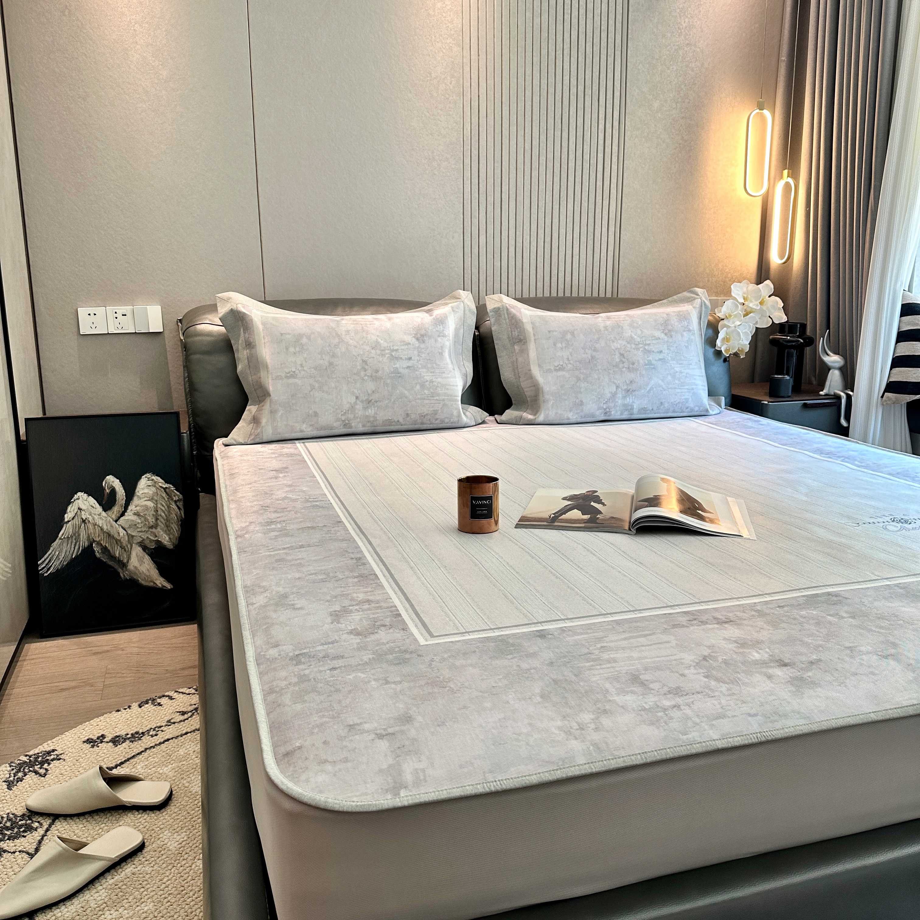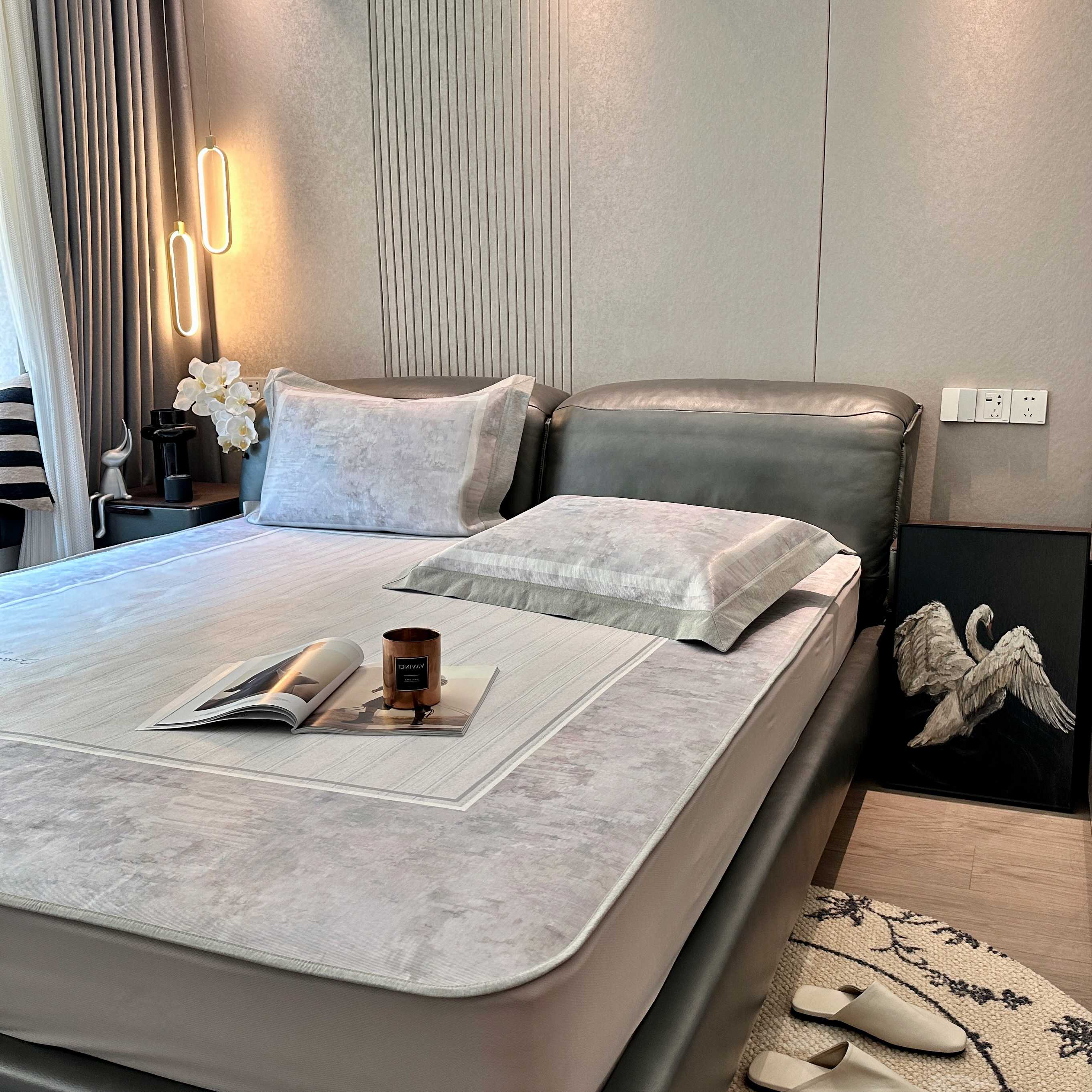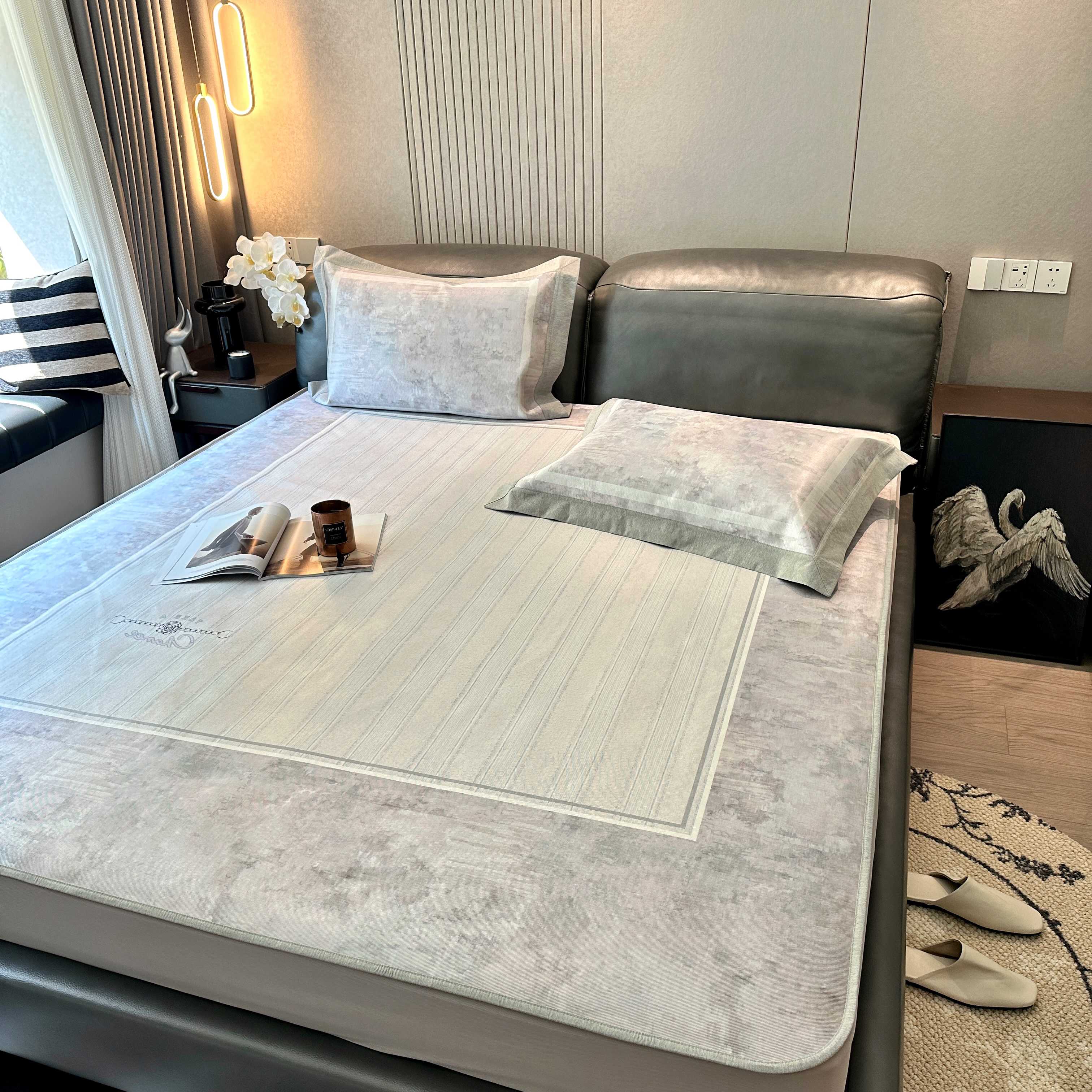 商品名称:JUICY 橘滋家纺 2025新款夏日高端轻奢数码冰丝奢简高级凉席床笠 巴黎暮色