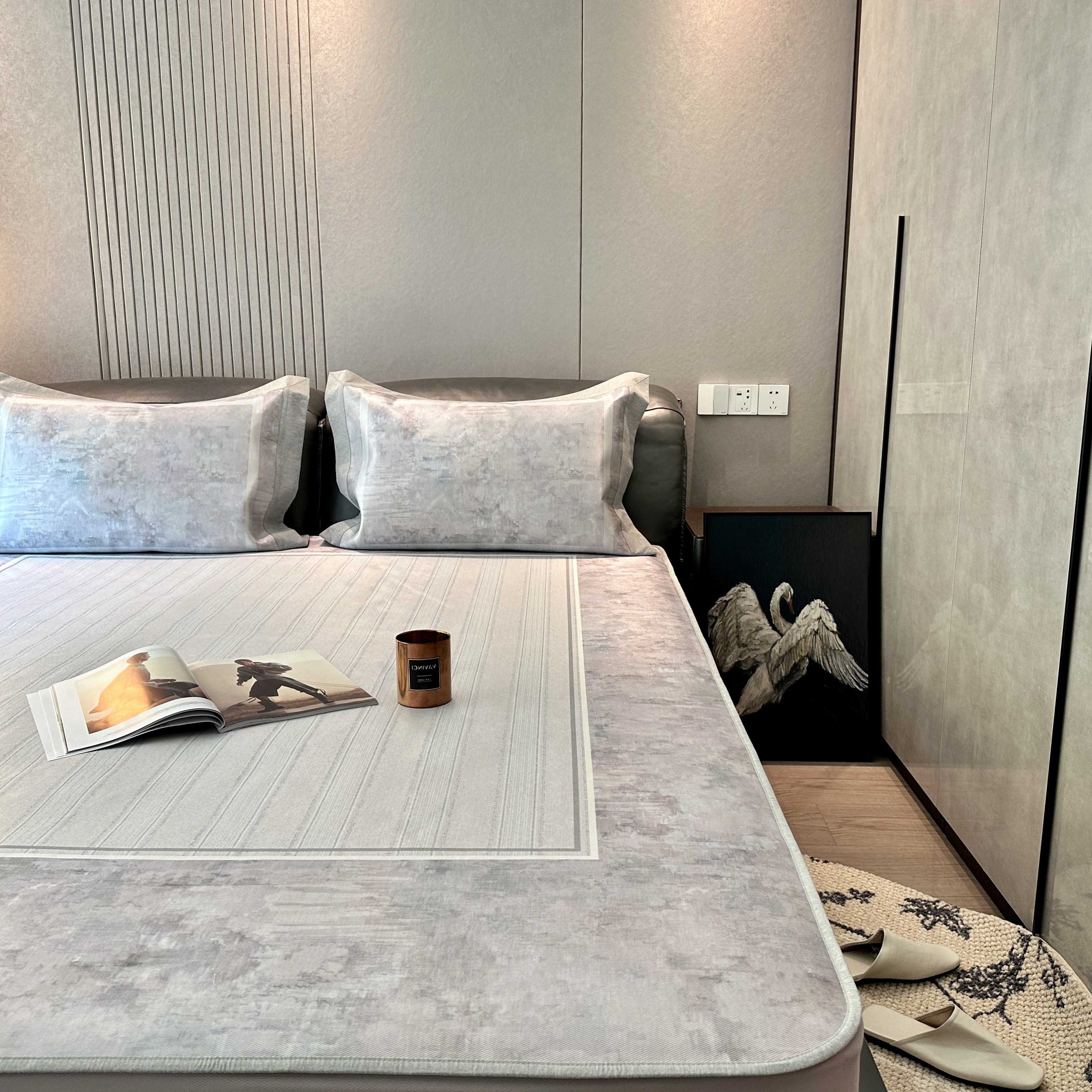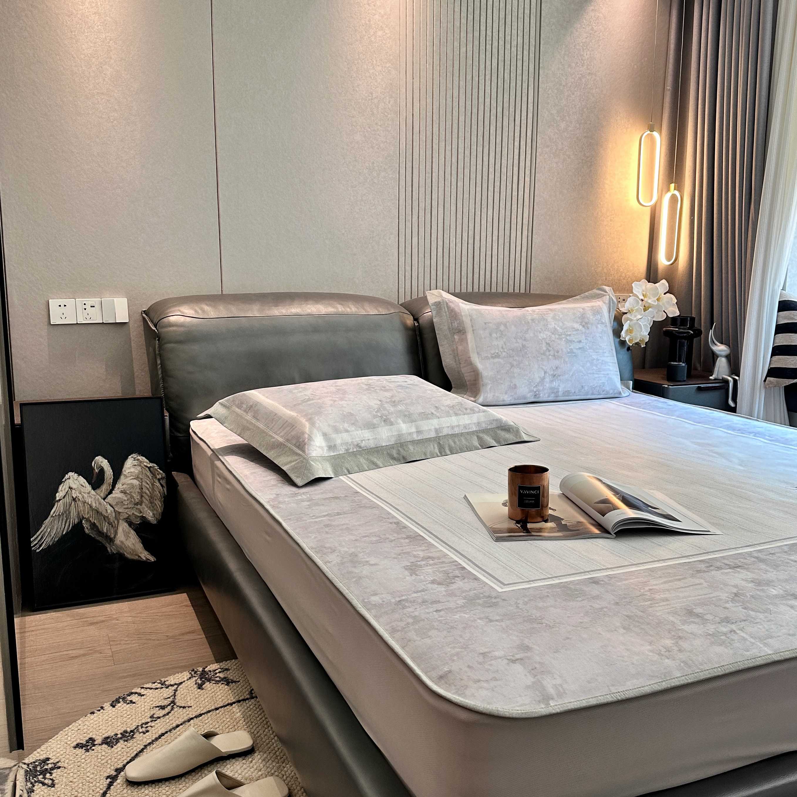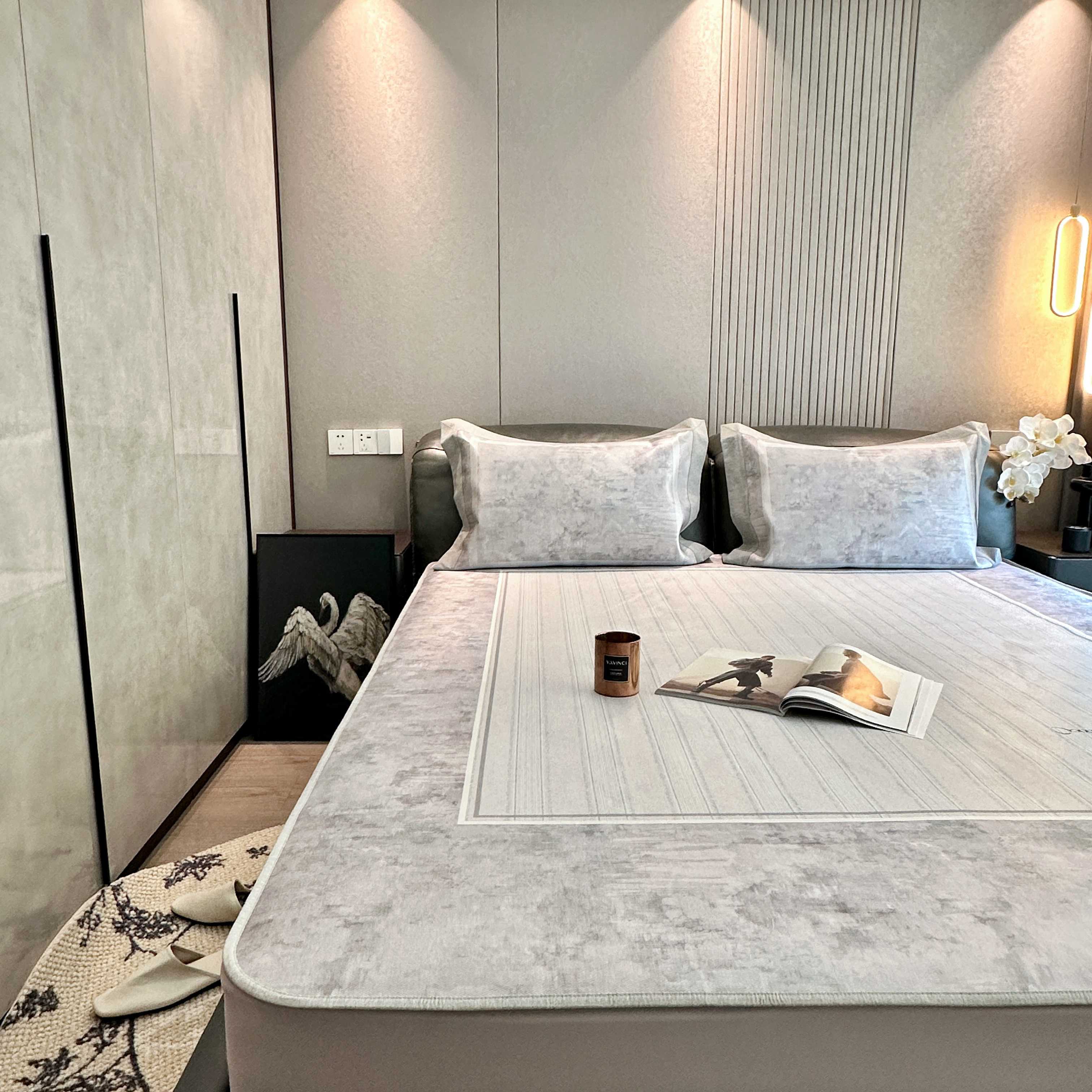 商品名称:JUICY 橘滋家纺 2025新款夏日高端轻奢数码冰丝奢简高级凉席床笠 巴黎暮色