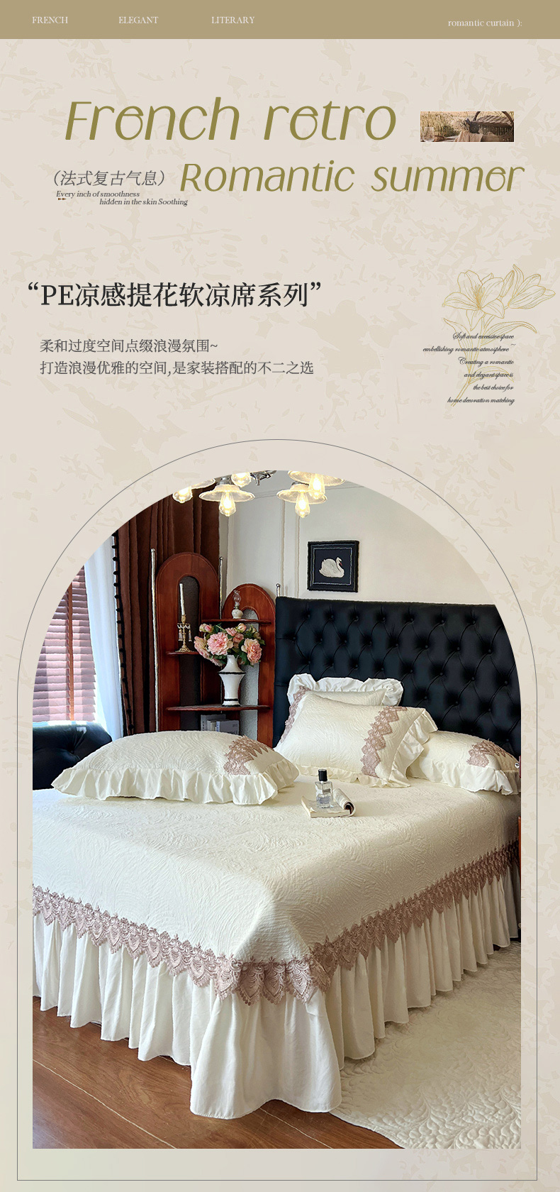 商品名称:乐朵家居 2025新款 唐顿庄园 (可配同色系空调被)PE凉席三件套(复合) 控价238 象牙白
