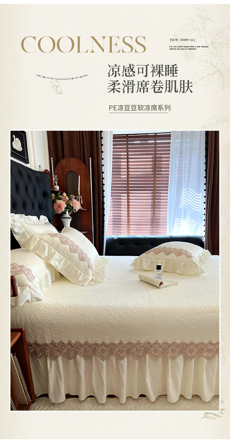 (总)乐朵家居 2025新款洛丽塔系列A类凉感席三件套,洛丽塔-豆沙,洛丽塔-蓝,洛丽塔-绿,洛丽塔-奶白,洛丽塔-玉