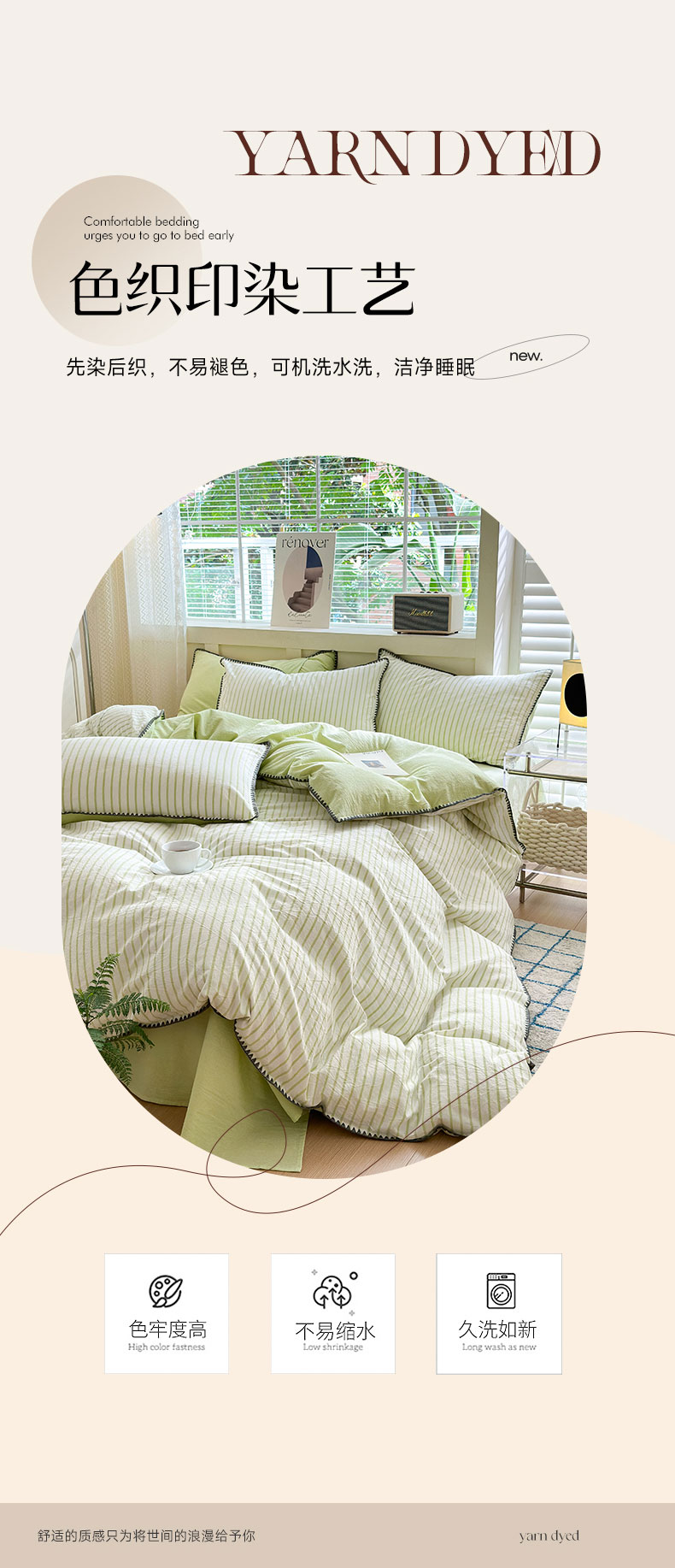 当前位置: 91家纺网 > 商品网购 > 床品套件 > 四件套 > 全棉普通四件套 > 晚依家纺 2025新款A类全棉色织水洗棉被套单件格子条纹四件套学生宿舍被罩三件套定制定做 诺言-绿